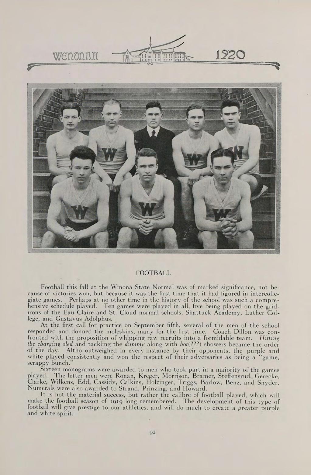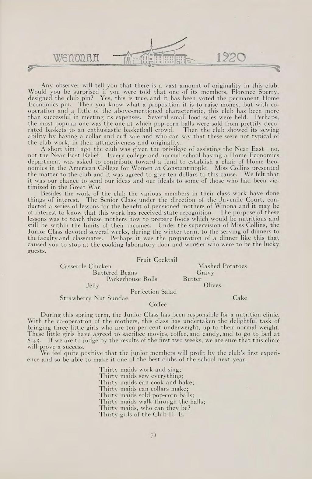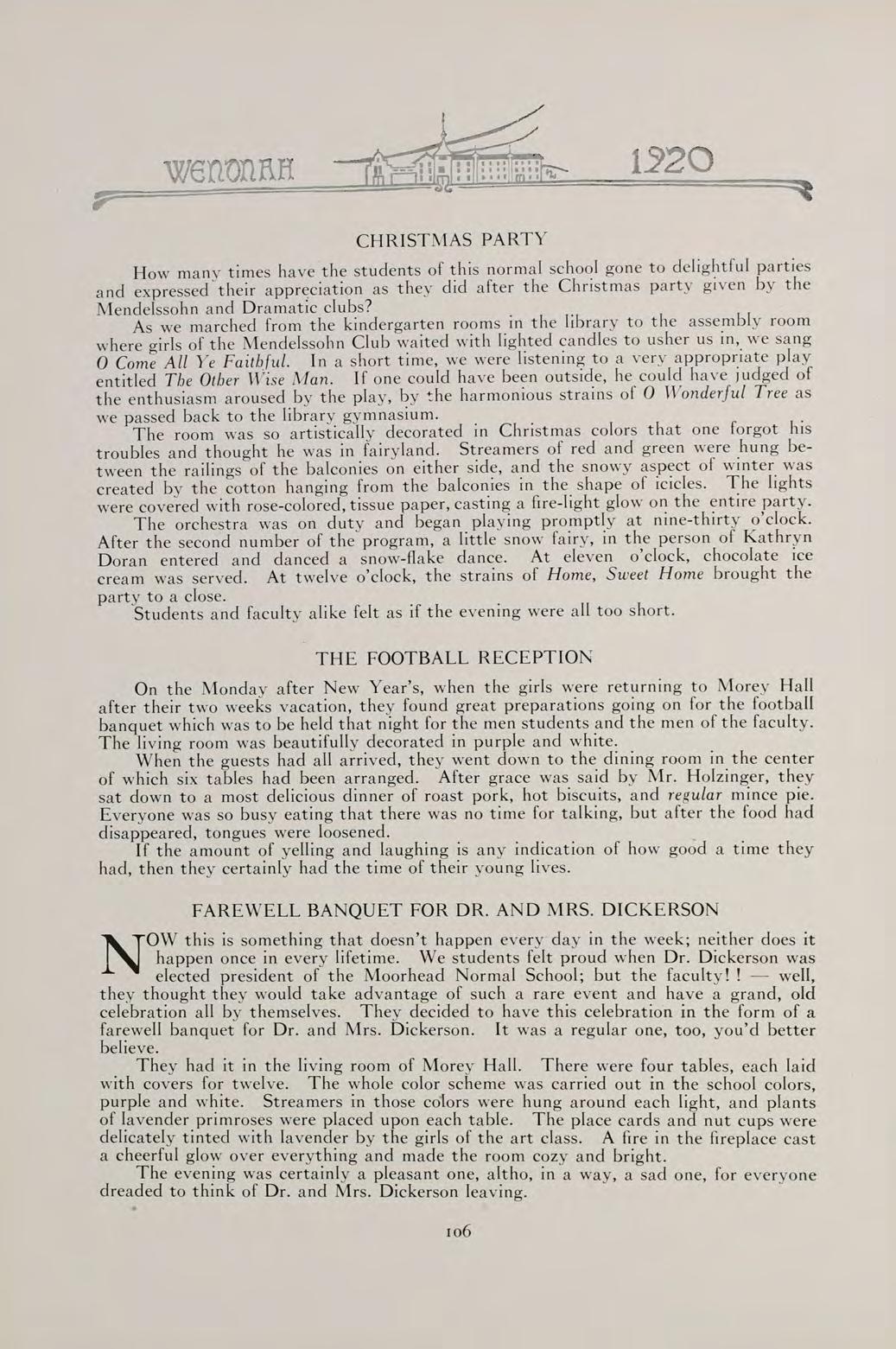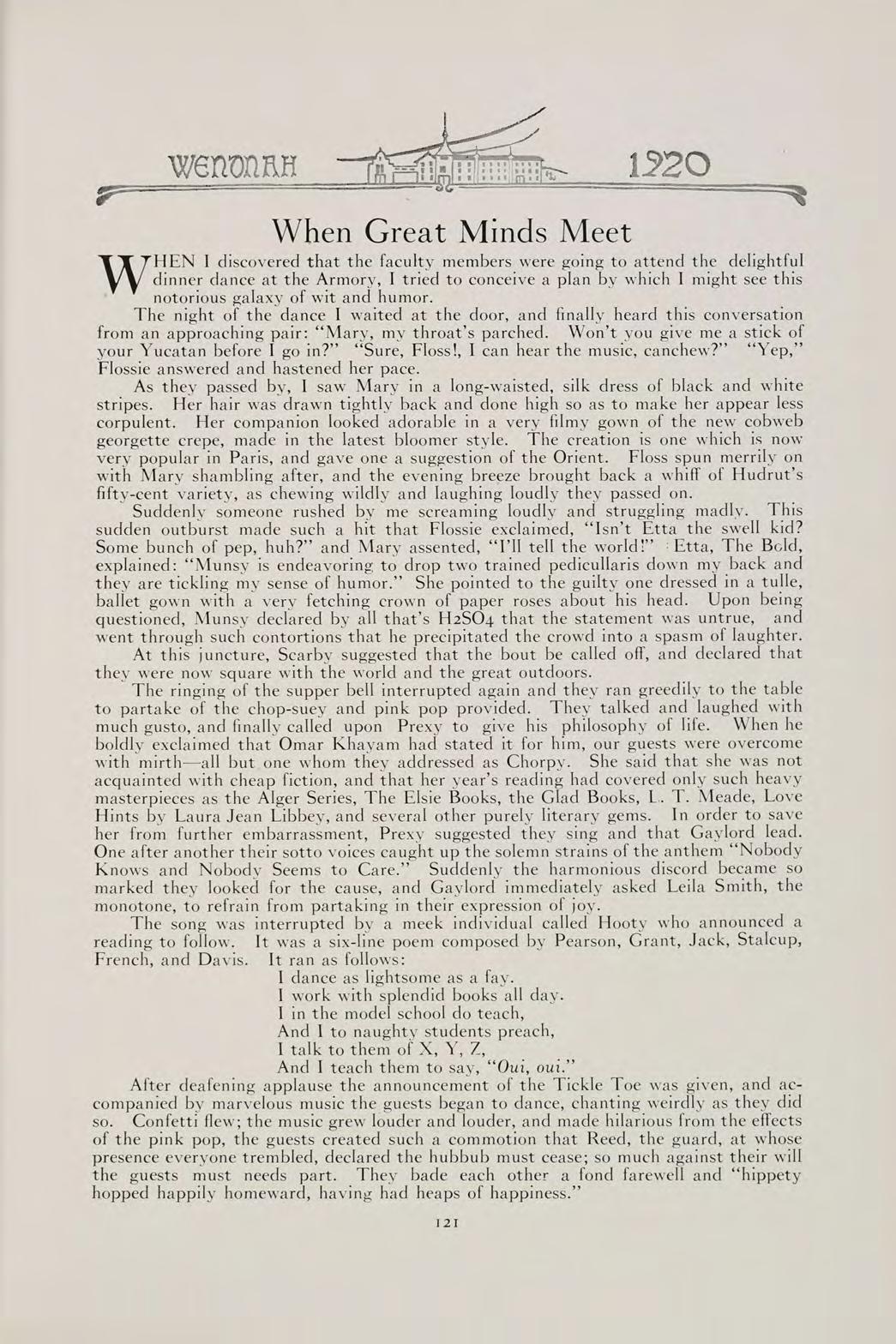 S The words of this old saying sum up the contents of our book. They can best present to you the Wenonah of 1920.