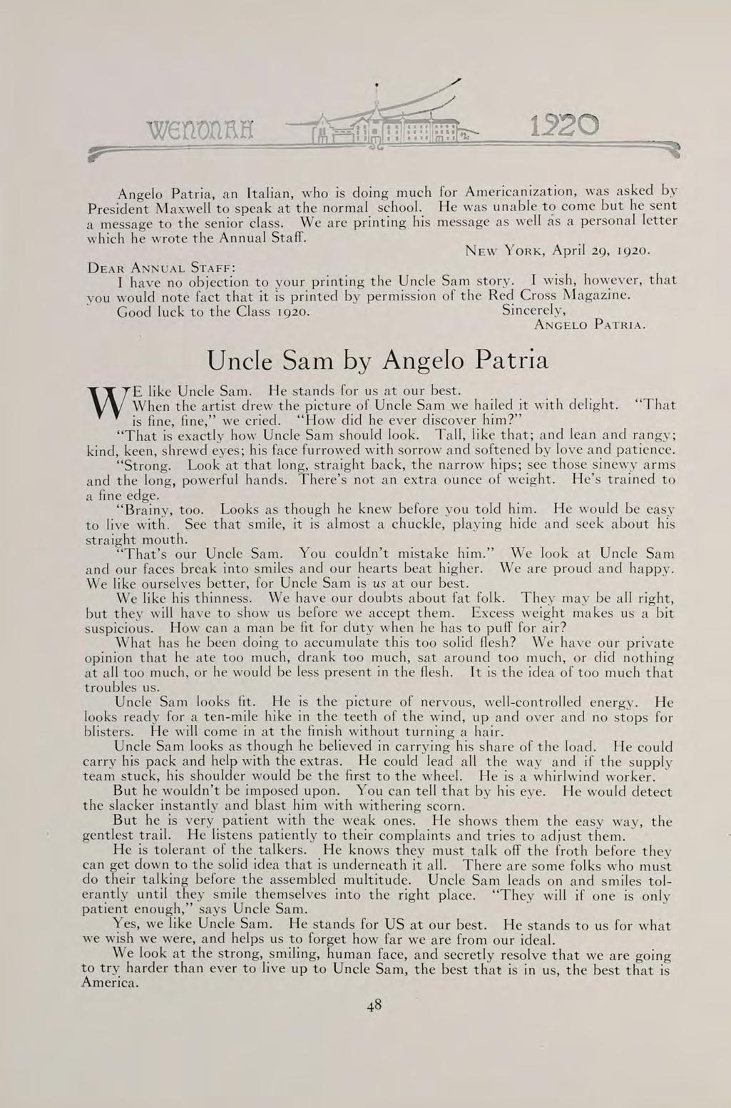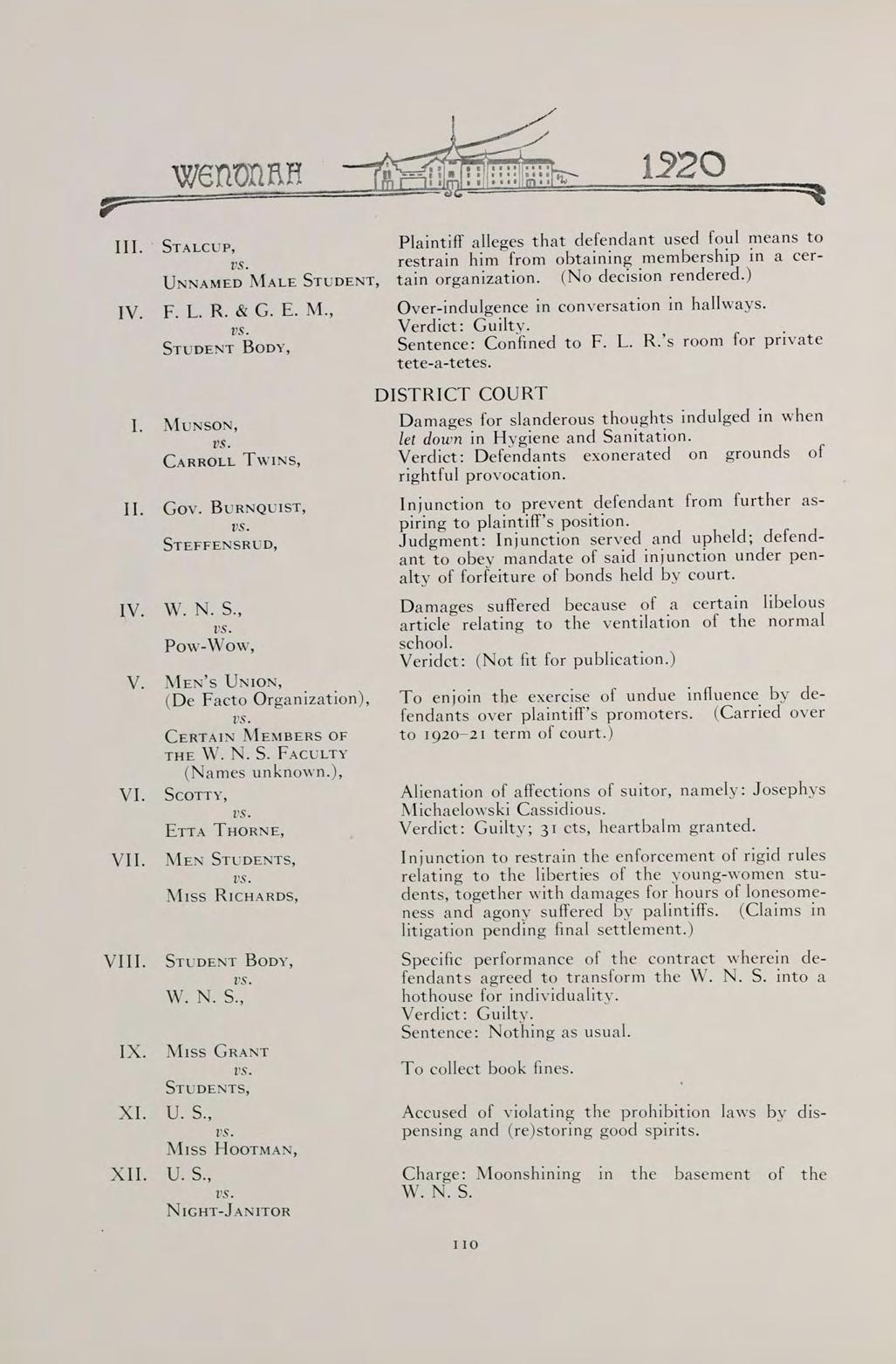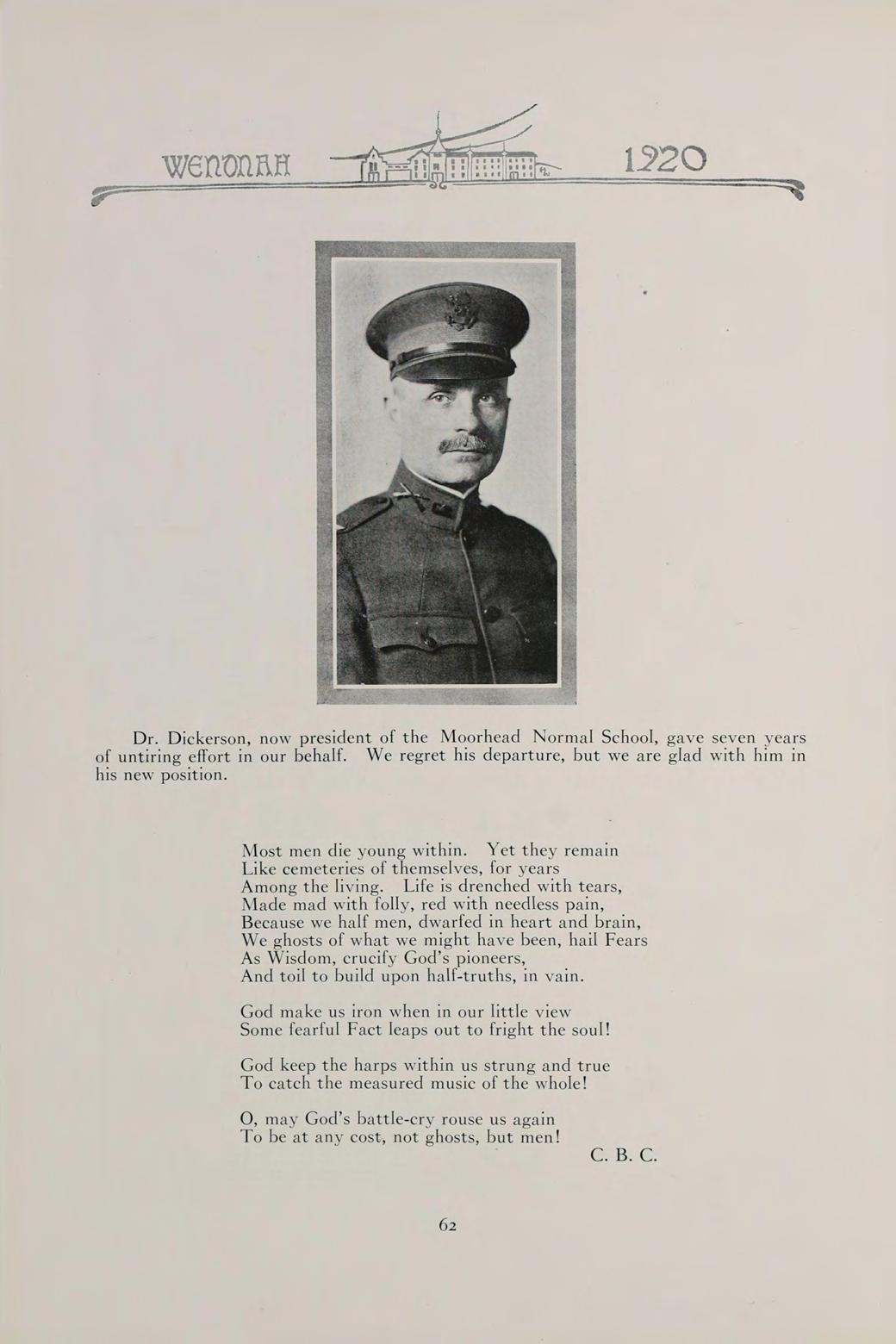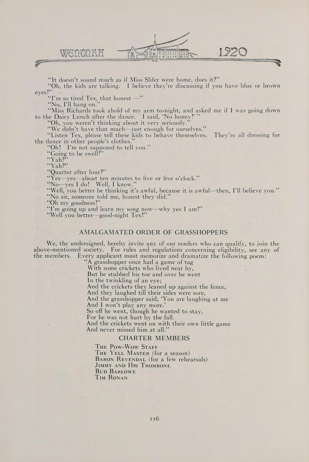 S The words of this old saying sum up the contents of our book. They can best present to you the Wenonah of 1920.