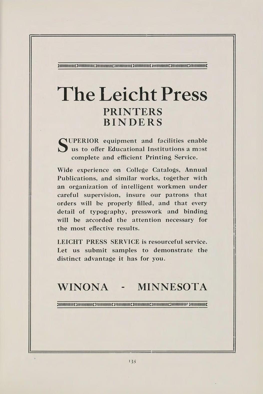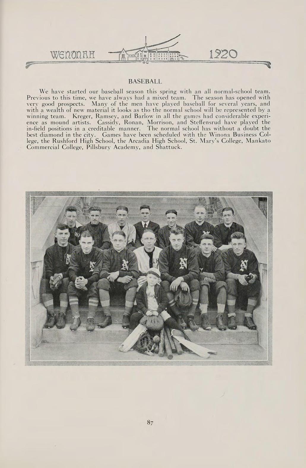 We review in our own minds our thoughts, our aspirations, and our deeds upon entering the Winona State Normal School. Unconsciously our present vision of life comes to mind and for the firsttime we feel that what has at times seemed a grind was merely making it possible for us to create our individual powers.