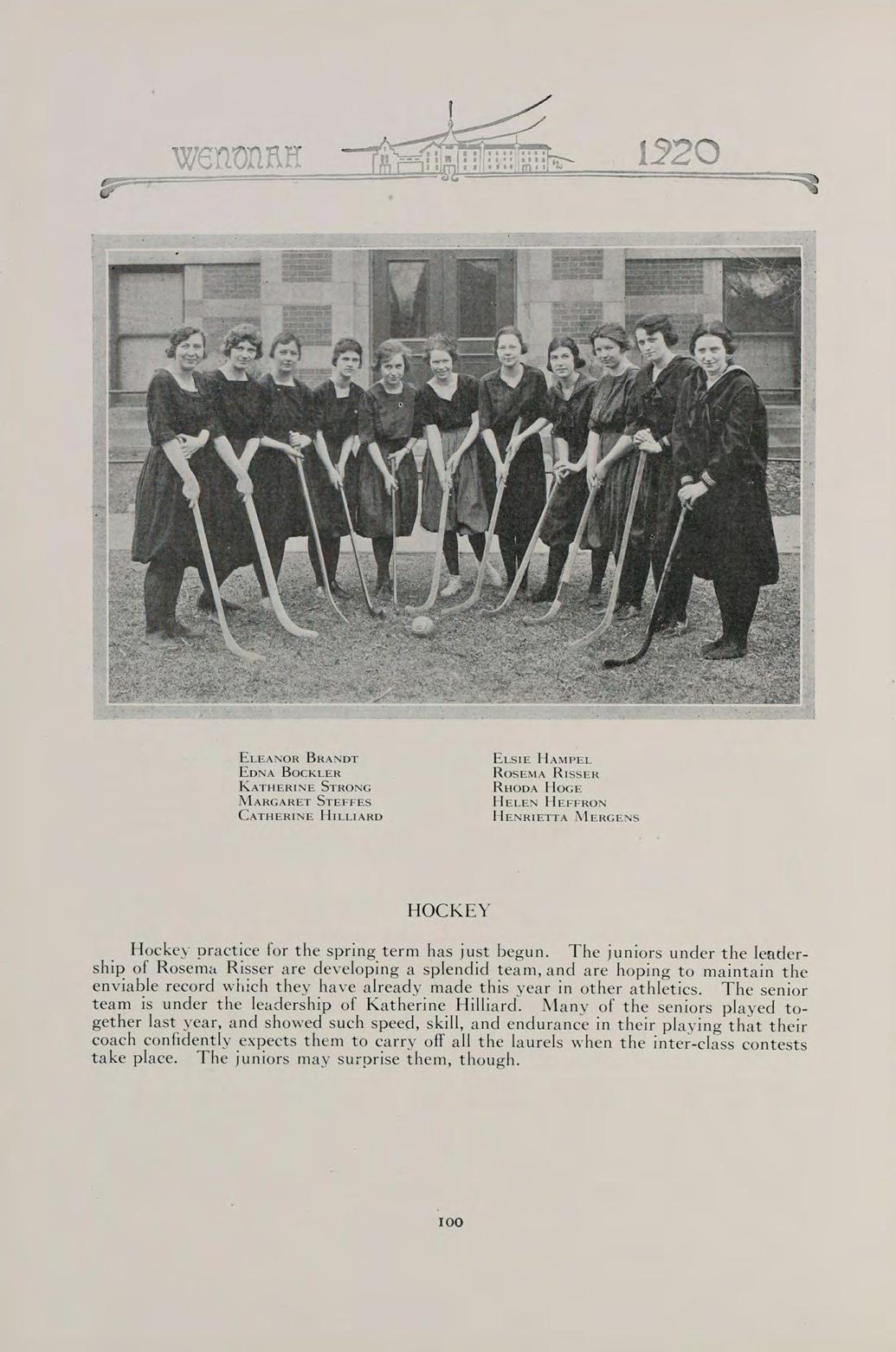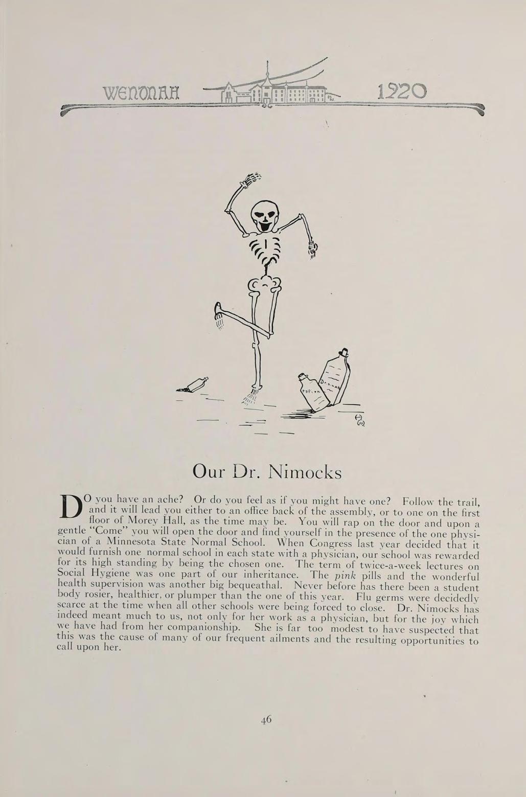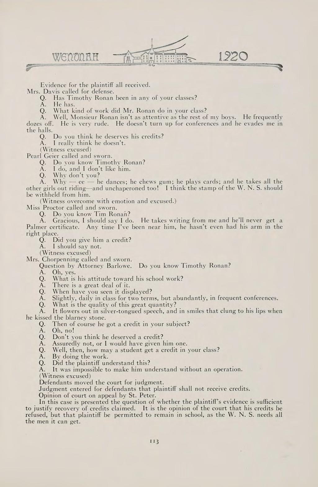 WHOSE NEVER-FAILING INTEREST AND EVER-READY HELP HAS SERVED AS AN INSPIRATION TO OUR CLASS, AND WHOSE DRAMATIC WORK HAS HELPED TO MAKE OUR TWO YEARS TOGETHER DELIGHTFUL, WE DEDICATE THE WENONAH OF 1920