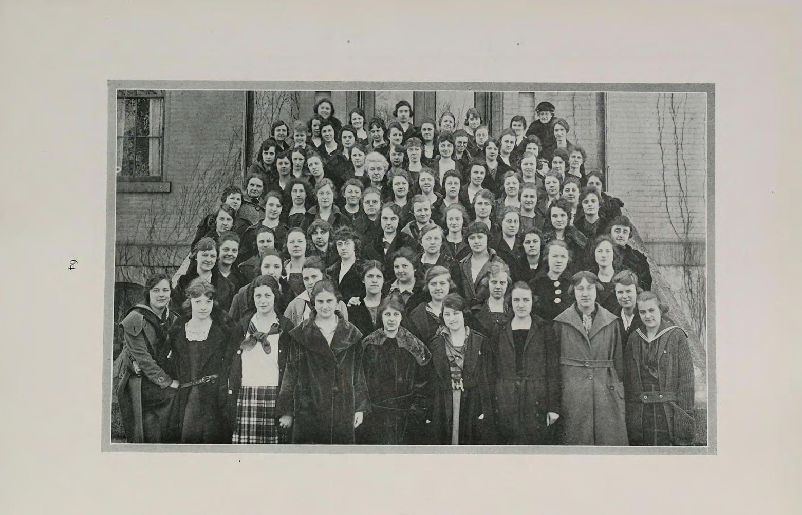 We have had the tools placed in our hands. What are these tools? Are they text books and well outlined note books? Oh, no! We have a chest of human tools given us through the standards and high ideals of our Alma Mater,—and above all we have our friendships with the members of the faculty and our fellow-students. We have for two years been in the midst of those who were continually calling forth the best in us and giving the best of themselves. Does it now seem possible that we can ever be content to live only unto ourselves wherever our life’s work may call us? It seems not, for with the guidance of our Alma Mater we have not only broadened our lives but deepened them to include charity for all.