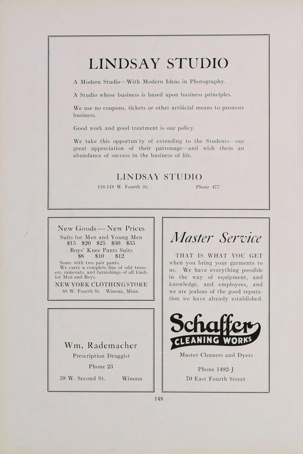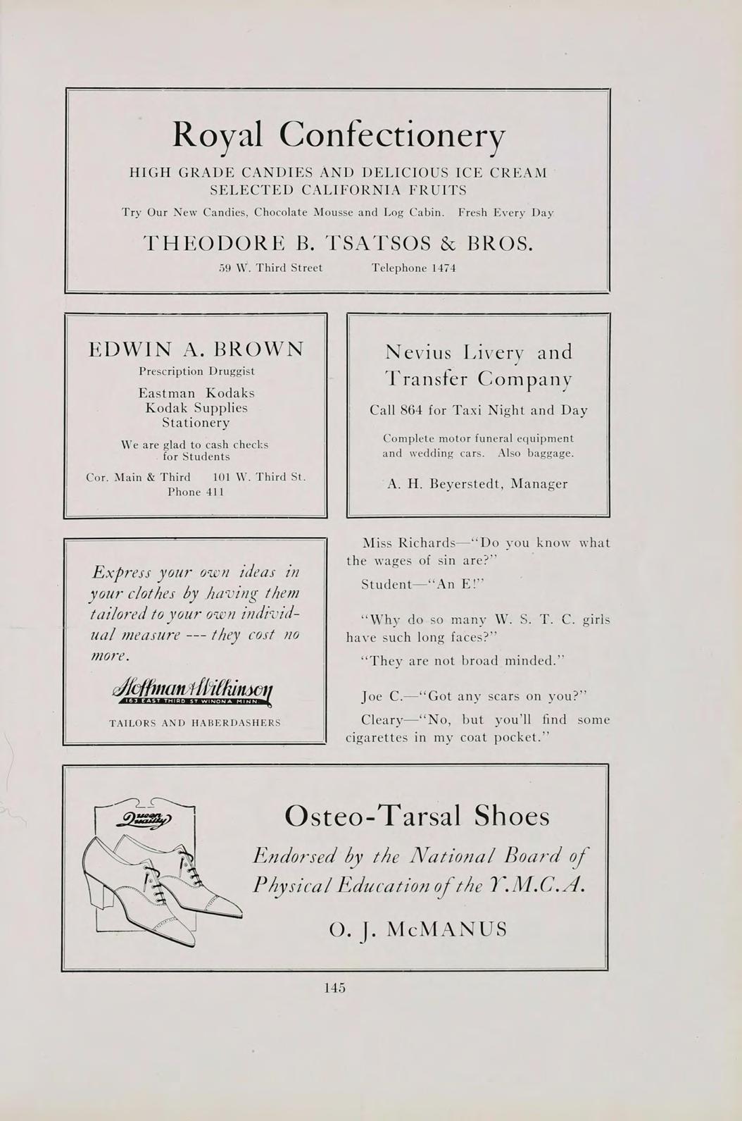 by Appointment Only Phone 1283 Phones, Office 1642, Res. 1637 Office Hours, 9 to 12, 1 :30 to 5 o’clock Phone 1669-L Mrs. V. H. Shelton Dr. Charles A. Lester Hairdressing, Manicuring Facials, Treatment of the Feet Winona, Minn. Turkish Baths 63 West Second St. Winona, Minn. 216 Center St. Eye, Ear, Nose and Throat