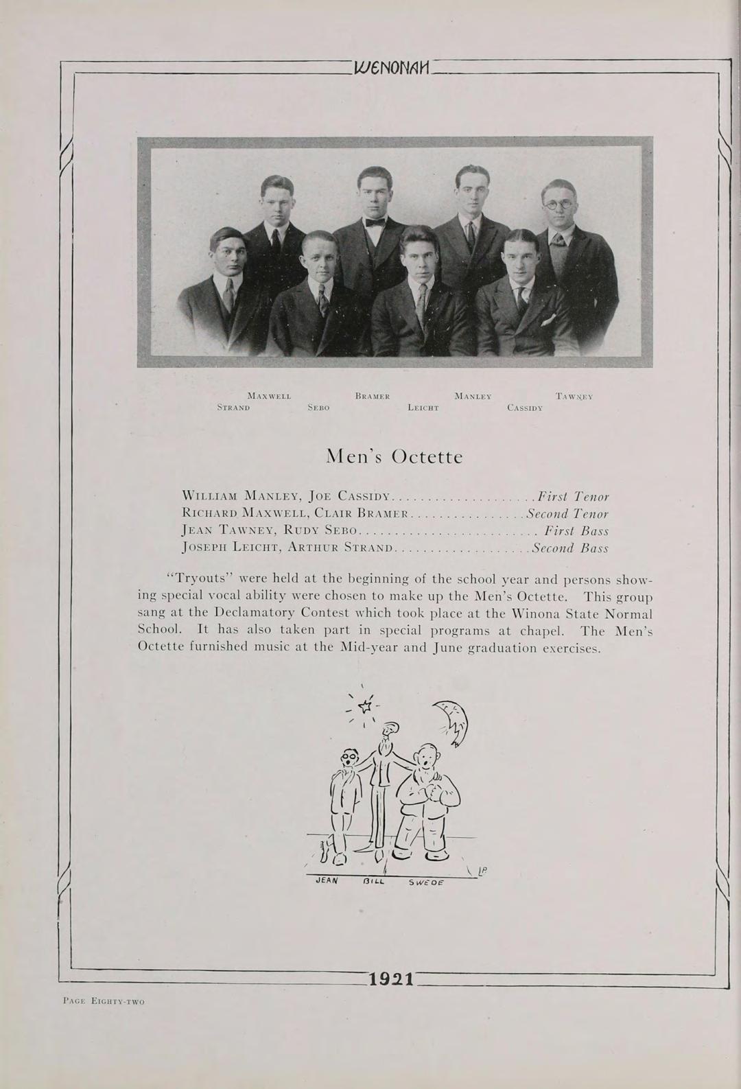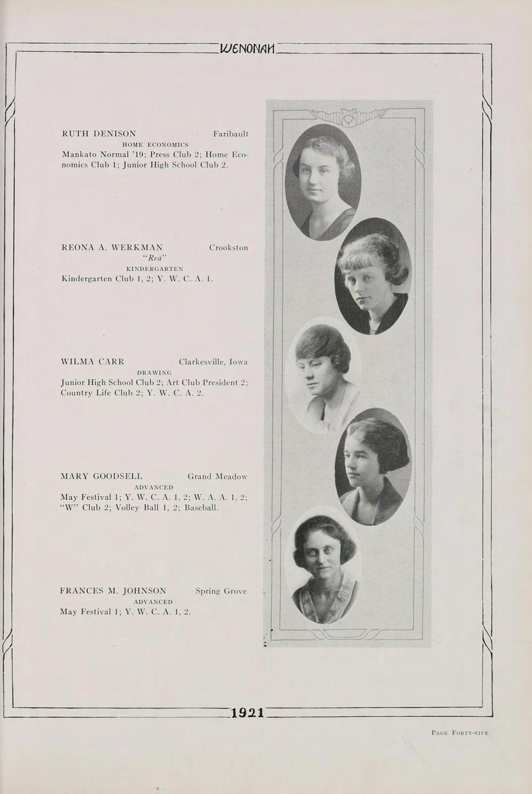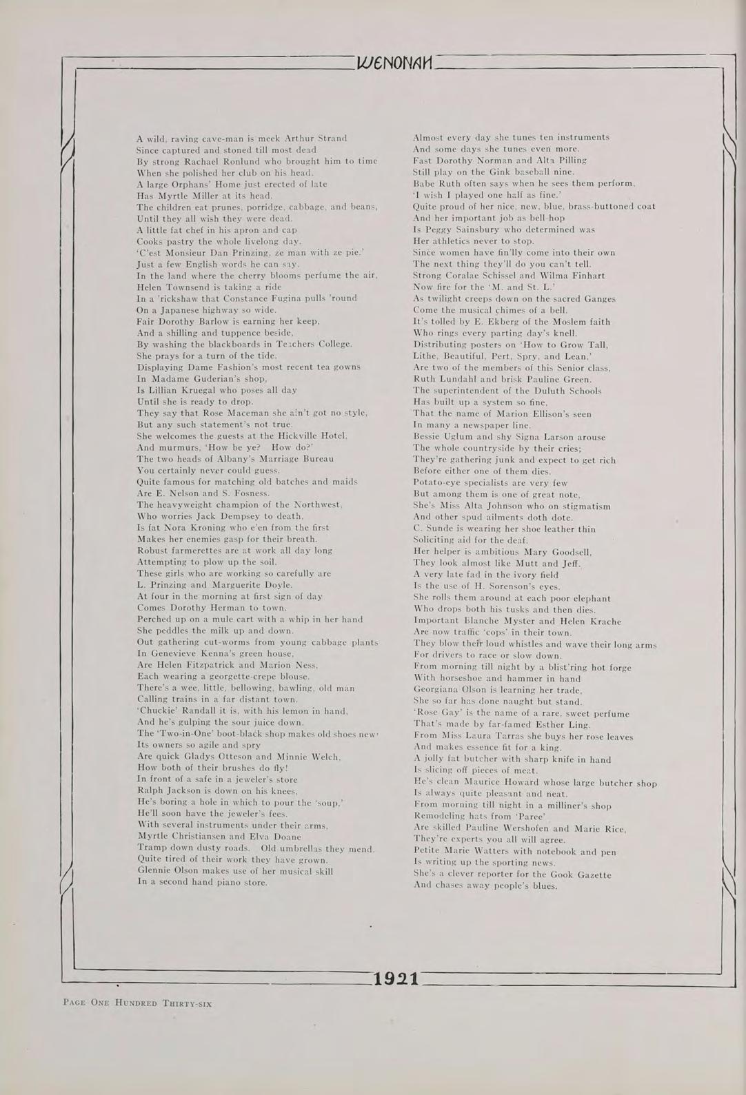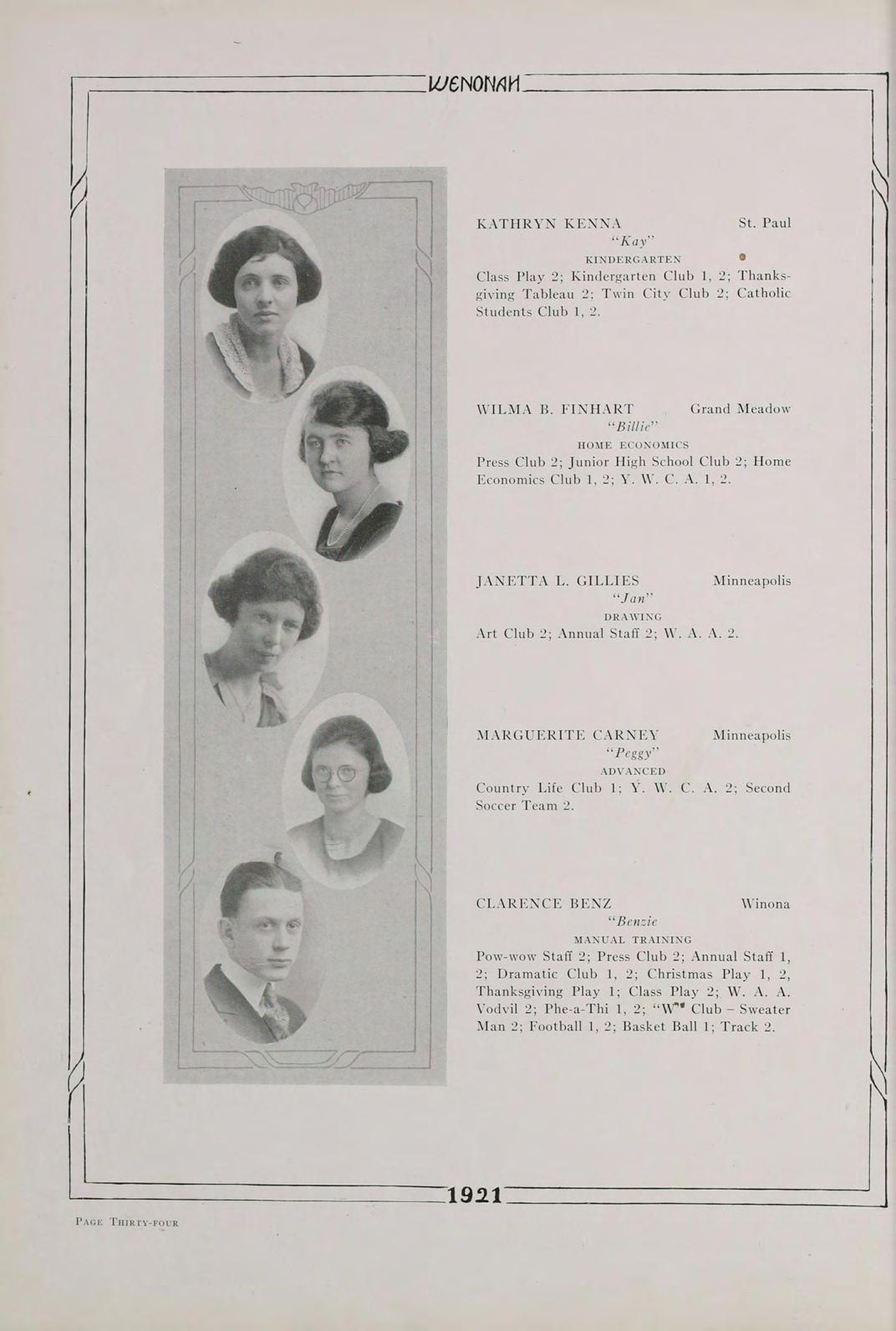 Surely, then, it is not futile to say that our class, the first class to be graduated since the institution has been rechristened Winona State Teachers College, the class of 1921, is going to do its share in the fostering of education. Above all, let us remember always, that America’s safety positively depends, in the last analysis, upon the education of its common people.