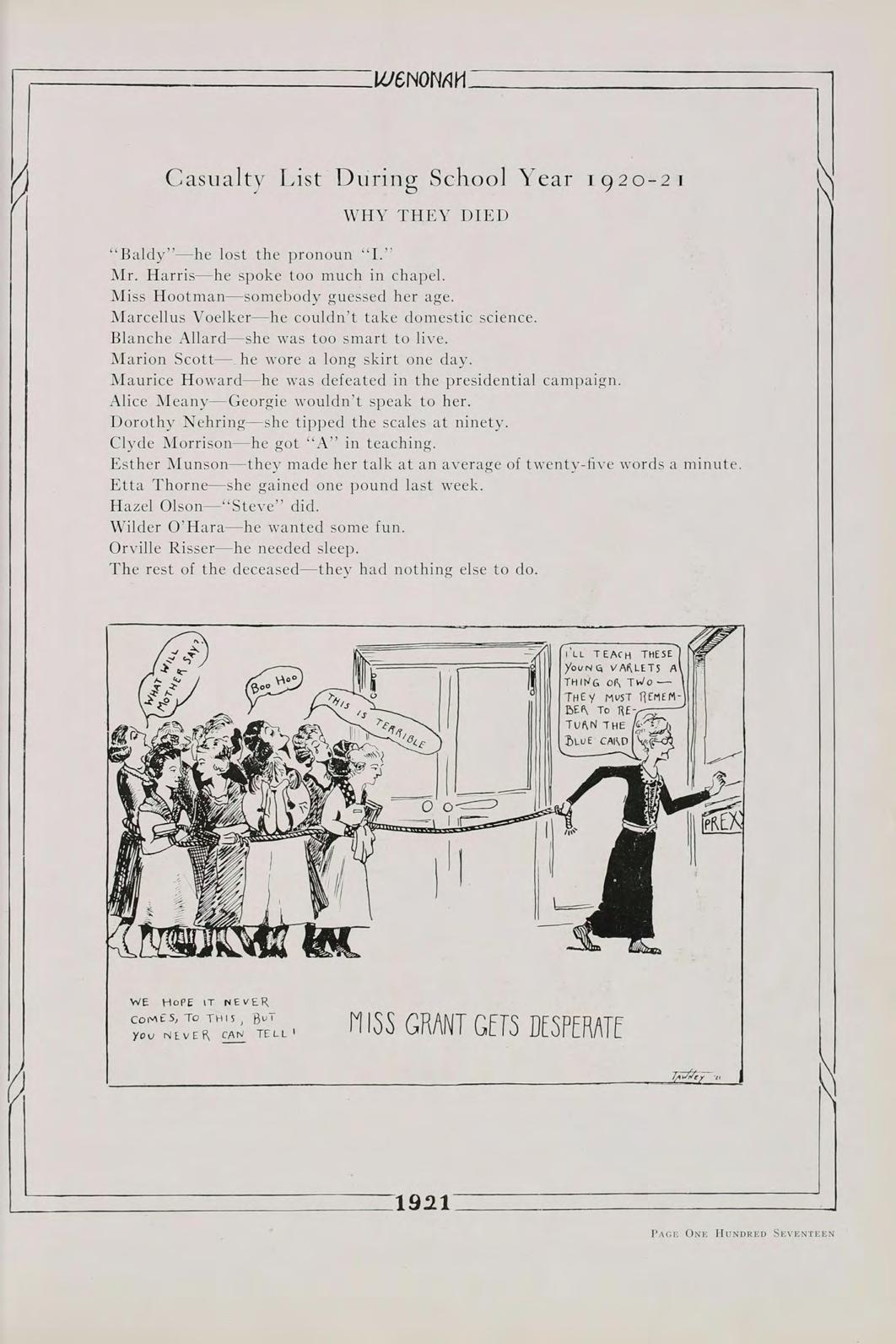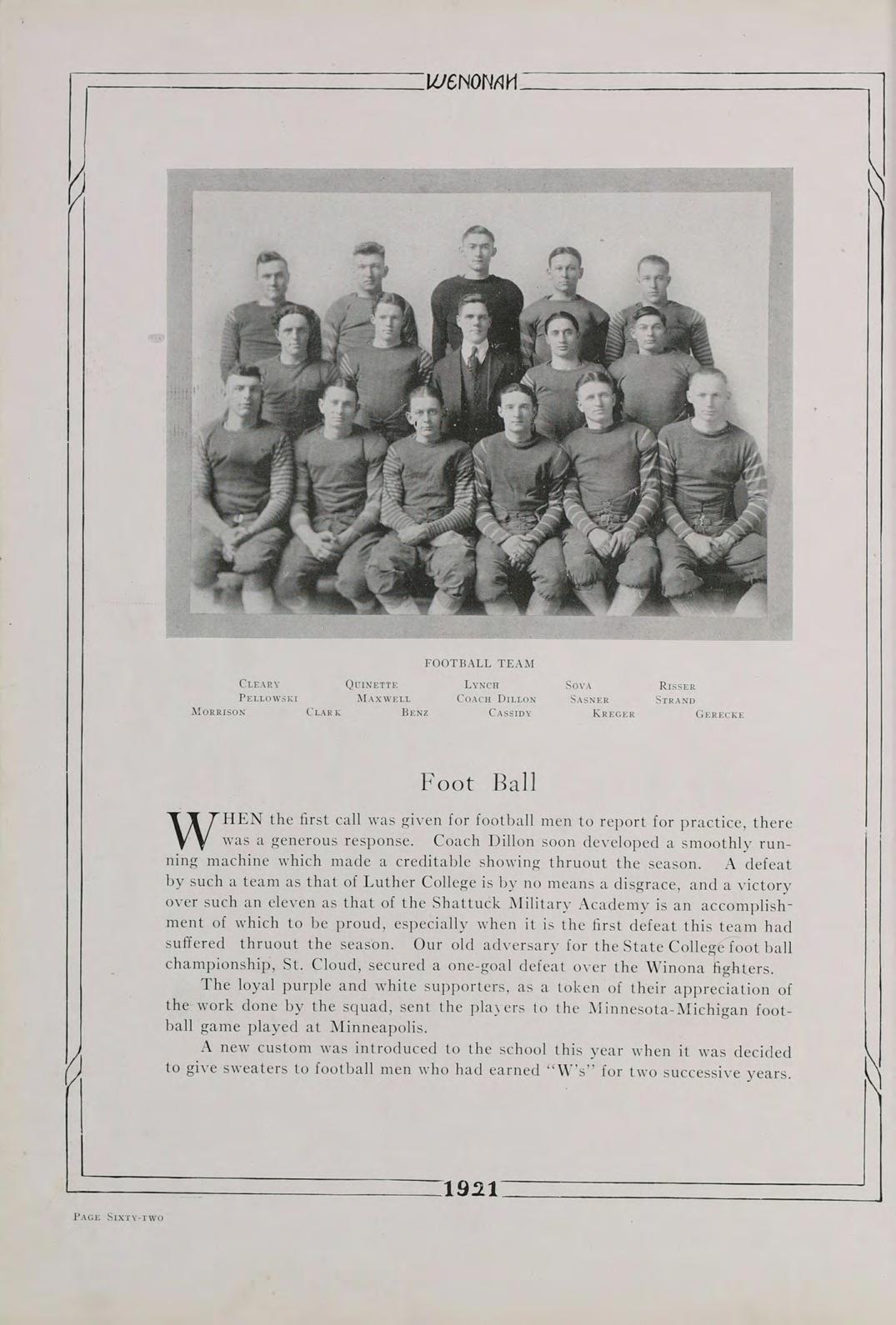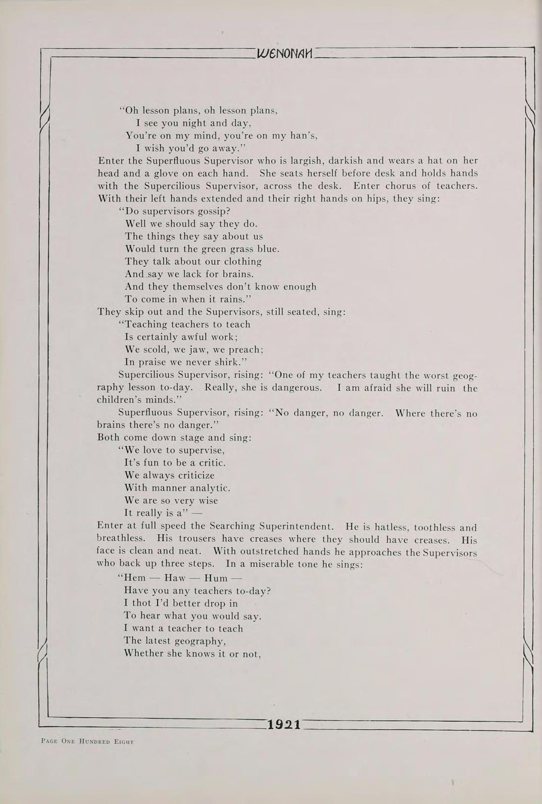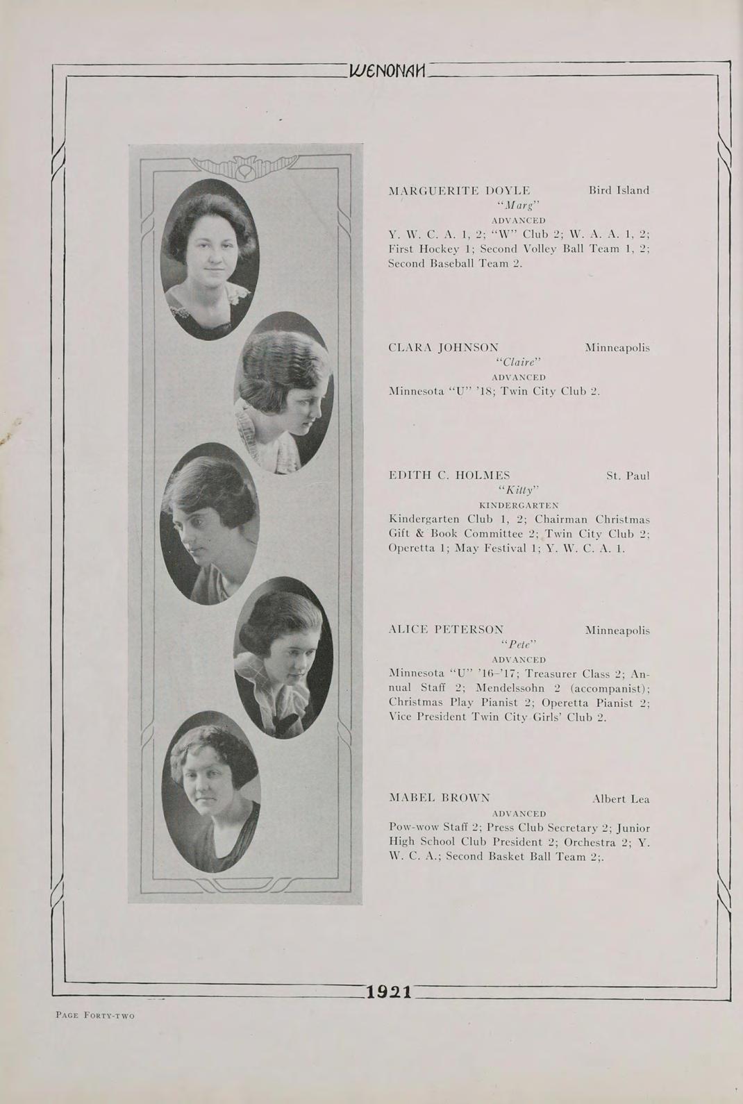 Surely, then, it is not futile to say that our class, the first class to be graduated since the institution has been rechristened Winona State Teachers College, the class of 1921, is going to do its share in the fostering of education. Above all, let us remember always, that America’s safety positively depends, in the last analysis, upon the education of its common people.