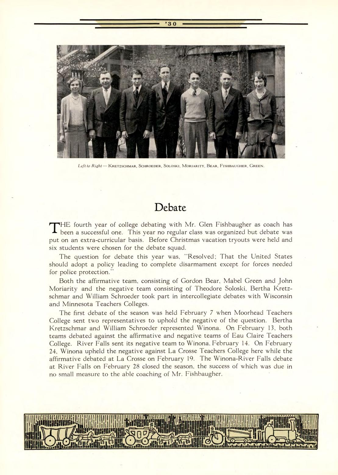 This year is being commemorated by the Winona State Teachers College as its seventieth year of service. Since the school opened its doors in September of 1860 as the first normal school west of the Mississippi and the fourteenth in the United States, great changes have taken place. If we compare the early school with the present institution, we find that perhaps the only thing that remains the same is the spirit and the purpose which is never changing that of preparing teachers for the public schools.