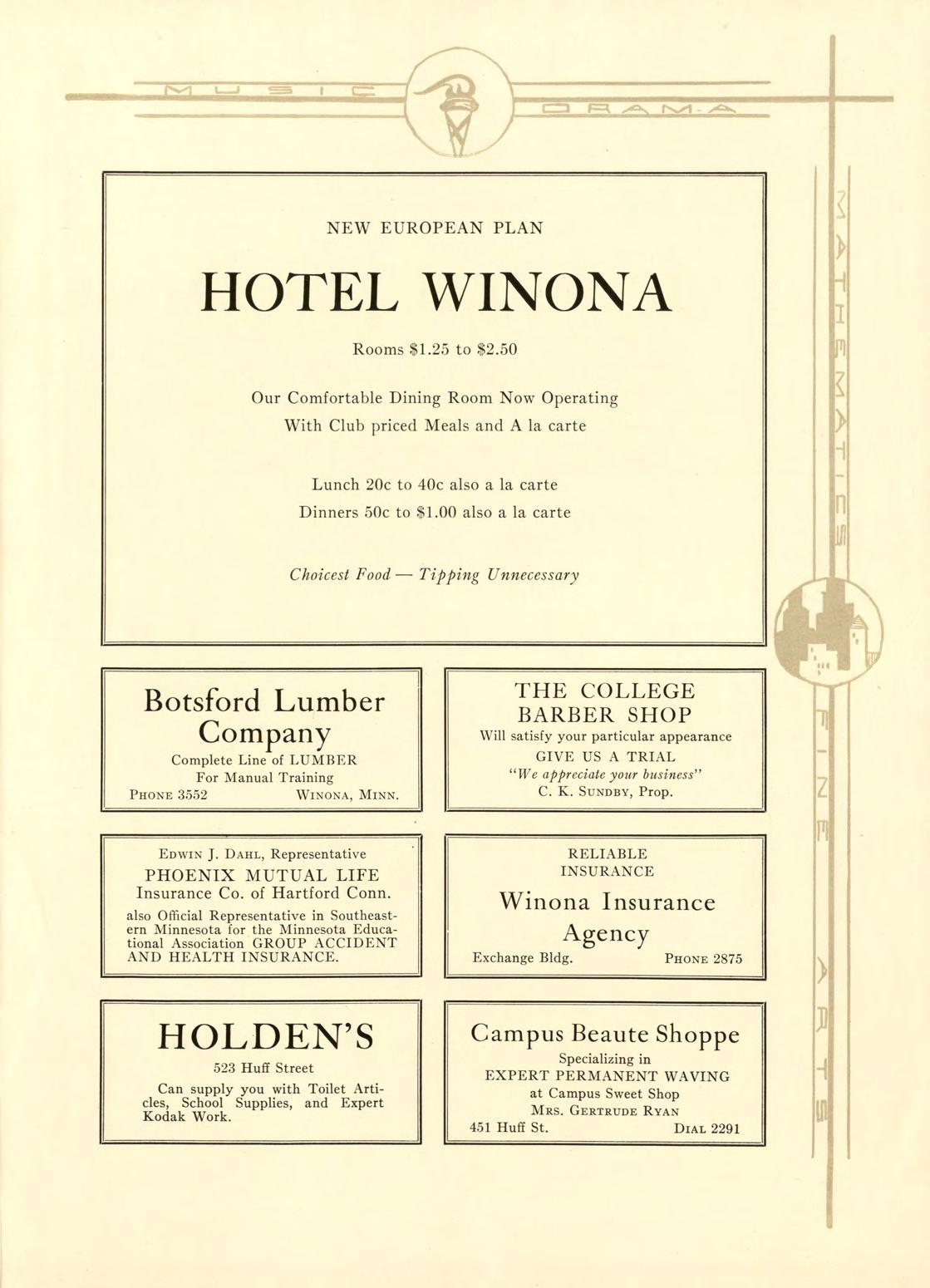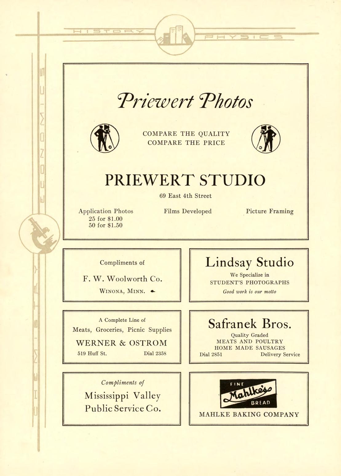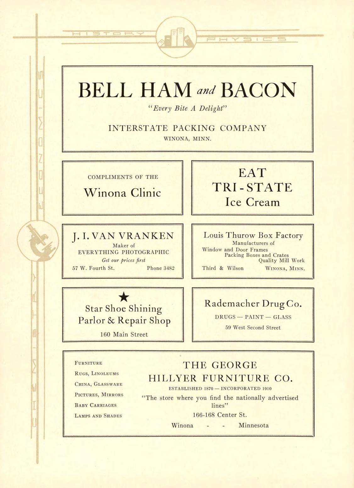 following firms have contributed to the financial suecess of this issue of the Wenonah. We appreciate your patronage.