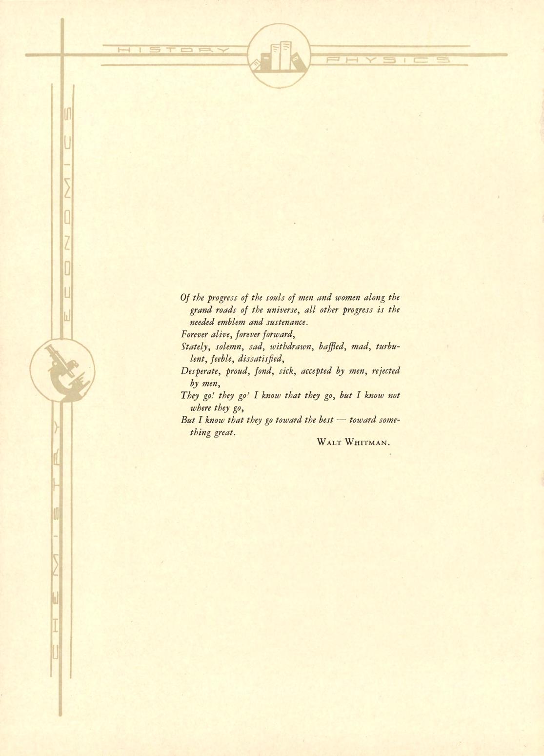 A CêRTAIN MAN LOOKÍD U PON HIS WORLD-. AND SAID UNTO NIMSQj:: OURTATICRS NAVC L-CfT TOUS A UiRITACCOrwORK WCLLDONE.TUIS W-C SHALL P1L£SERV£,ANDT0 ITWt SHALL ADD INTUCCOOD YEARS OfM RJTURE.WCARE ILLSPIRED TO FIND TUt BETTER AND THE NOBLER. WITH DILIGENCE LET US OBSERVE ANDANALYZE ANDCOMPARC. MOREOCR.LET US GUIDE OUR SONS AND DAUGHTERS INTO THE THRILLING ADVENTURE OF ATTEMPTING TO IMPROVE UPON ALLTHAT WE SHALL TRANSMIT TO THEM EVEN AS WE HAVE TRIEP TO ADAPT OUR INHERITANCE TO A WOLRD WHCH OUR EATMERS KNEW NOT. UET THERE BE PROGRESS.