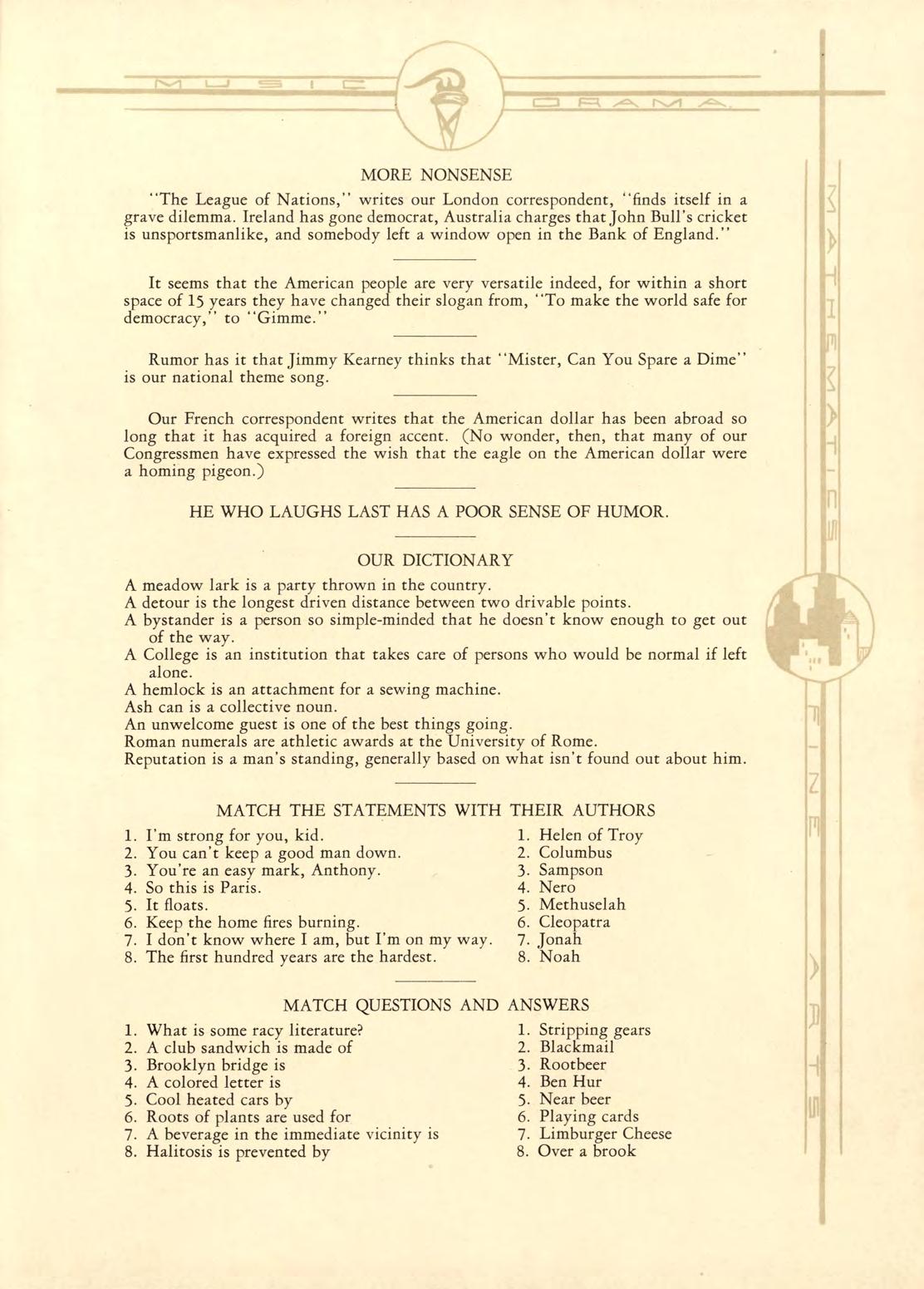 “The League of Nations,” writes our London correspondent, “finds itself in a grave dilemma. Ireland has gone democrat, Australia charges that John Bull’s cricket is unsportsmanlike, and somebody left a window open in theBank of England.”