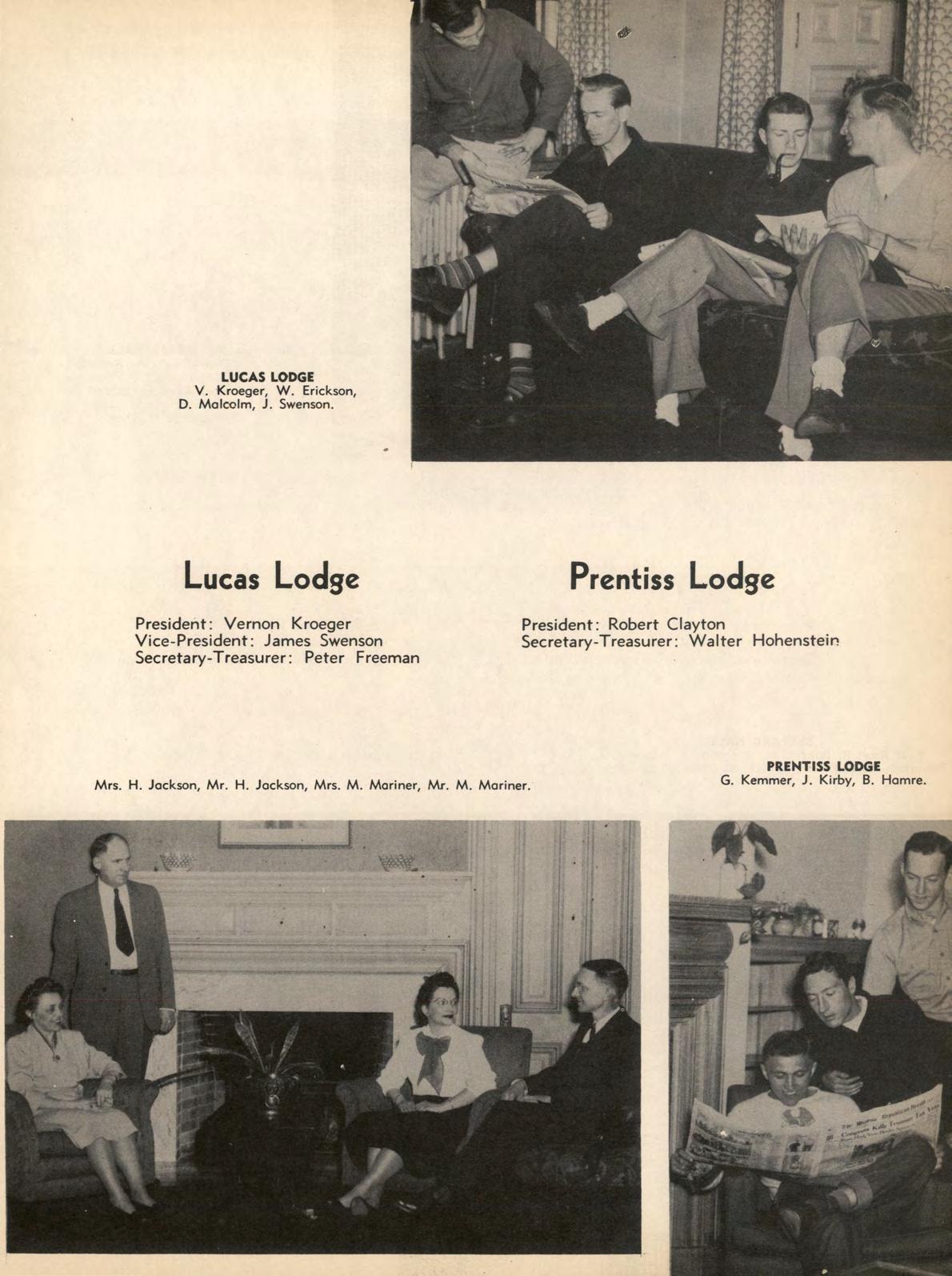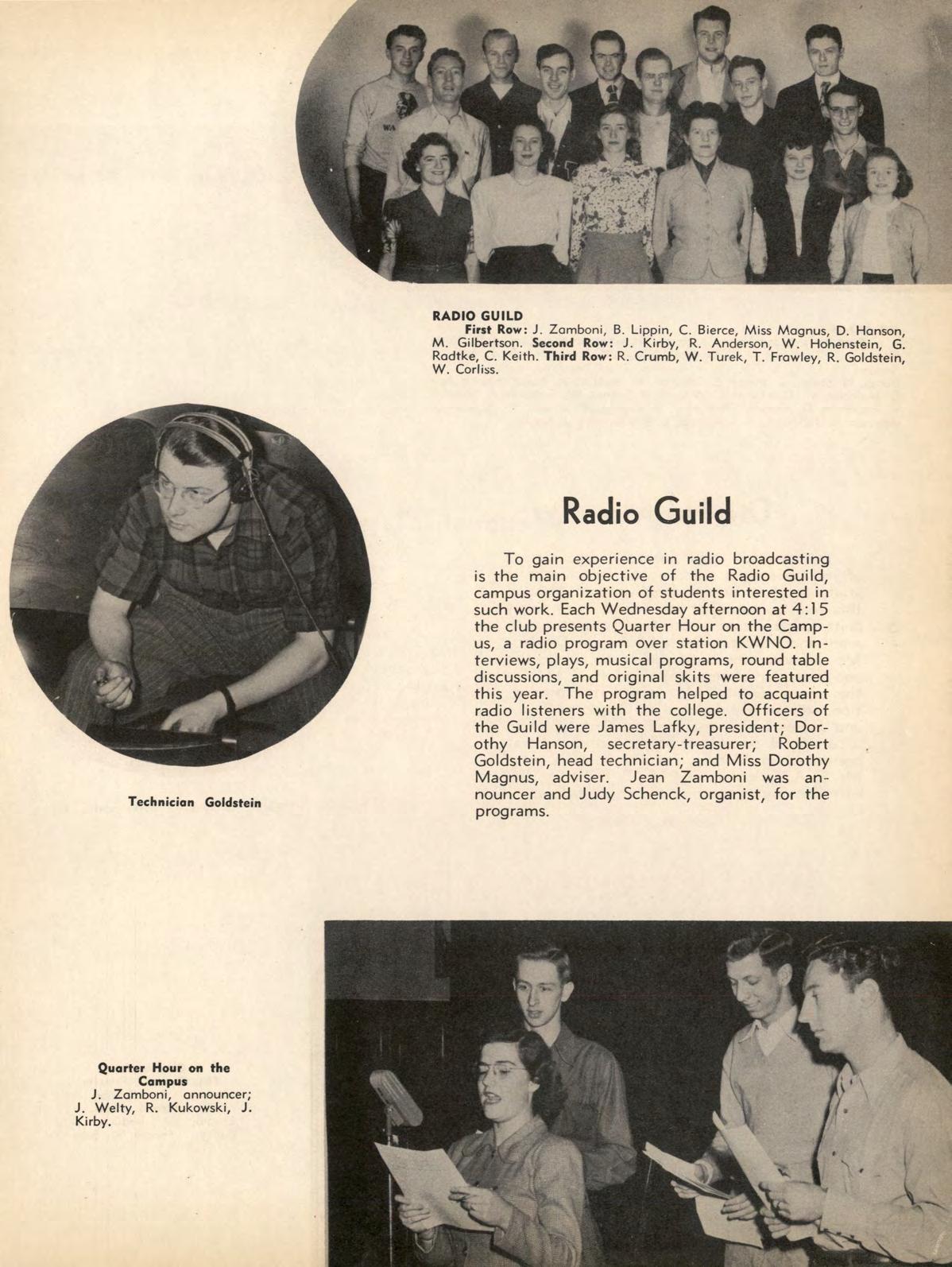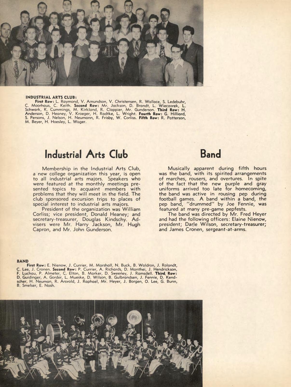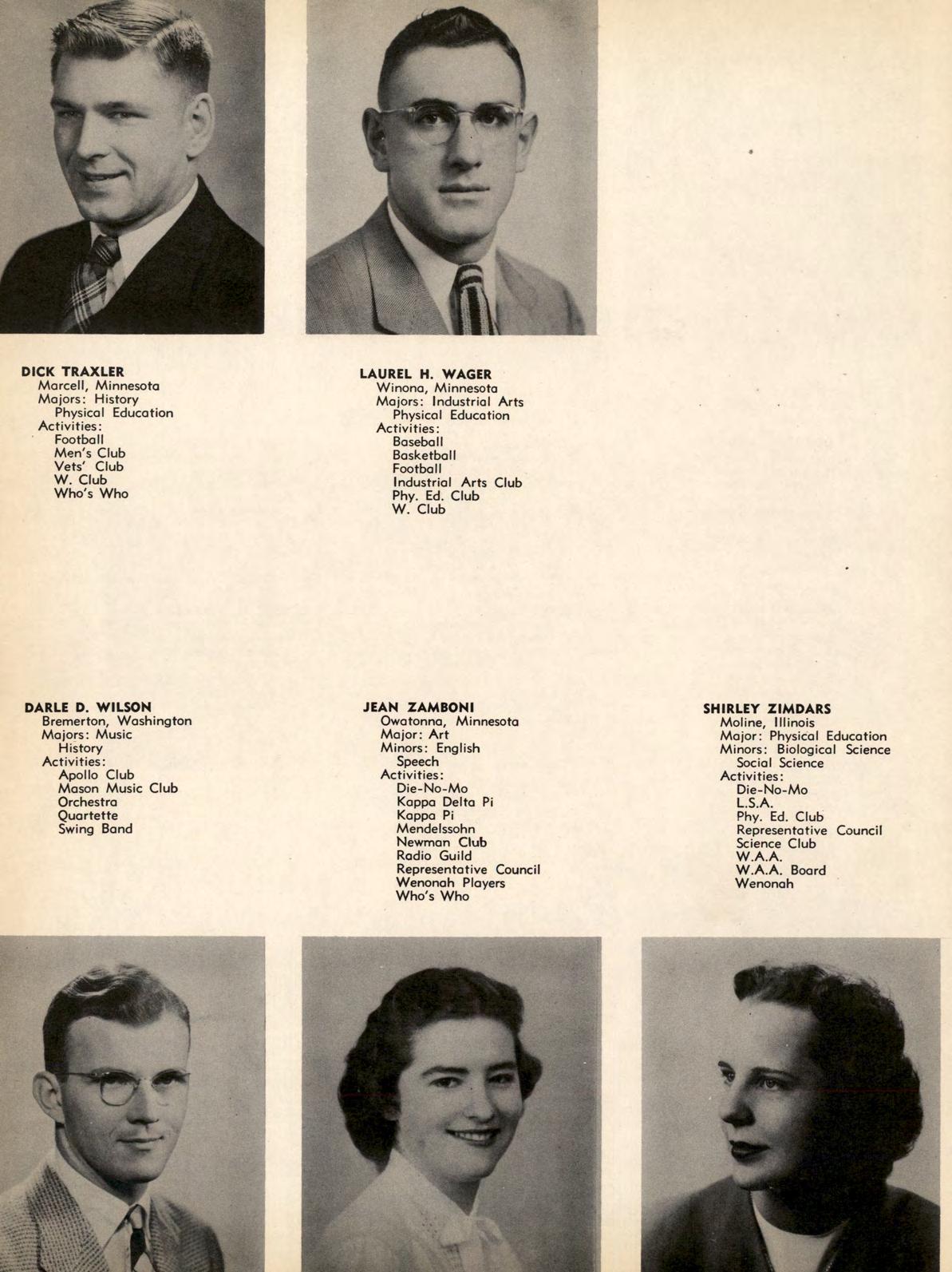 The "W" emblems worn by members of this organization signify that the wearers have participated in a major sport and have adhered to the requirements of good sportsmanship. The intramural board, which governs all intramural sports and arranges schedules in various sports for non-varsity squads, is sponsored by the "W" Club. Officers this year were Dic.k Traxler, president; Robert Anderson, vice president; Wilbur Winblad, secretary-treasurer; and Herbert Borger, historian. Dr. G. E. Galligan was club adviser.