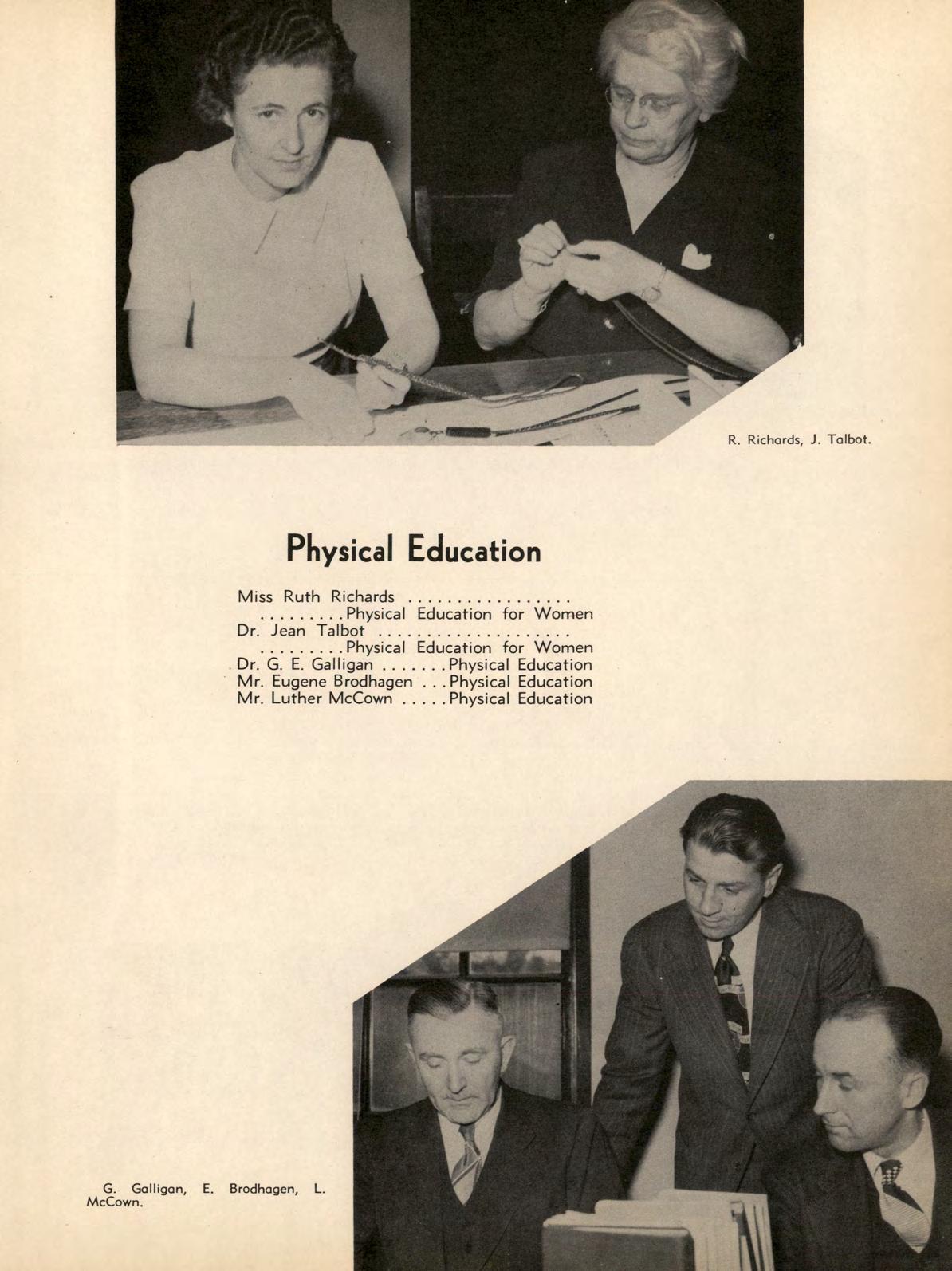 As a member ofthe Administrative Council, Dr. Galligan has evidenced his administrative ability. As Director of Health and Physical Education, he has done much to advance intercollegiate and intra-mural athletics, not only in the game, but also in its spirit. Through his work on the Personnel Committee and on the Public Relations Committee, he has fostered good teacher-student-public relationships.