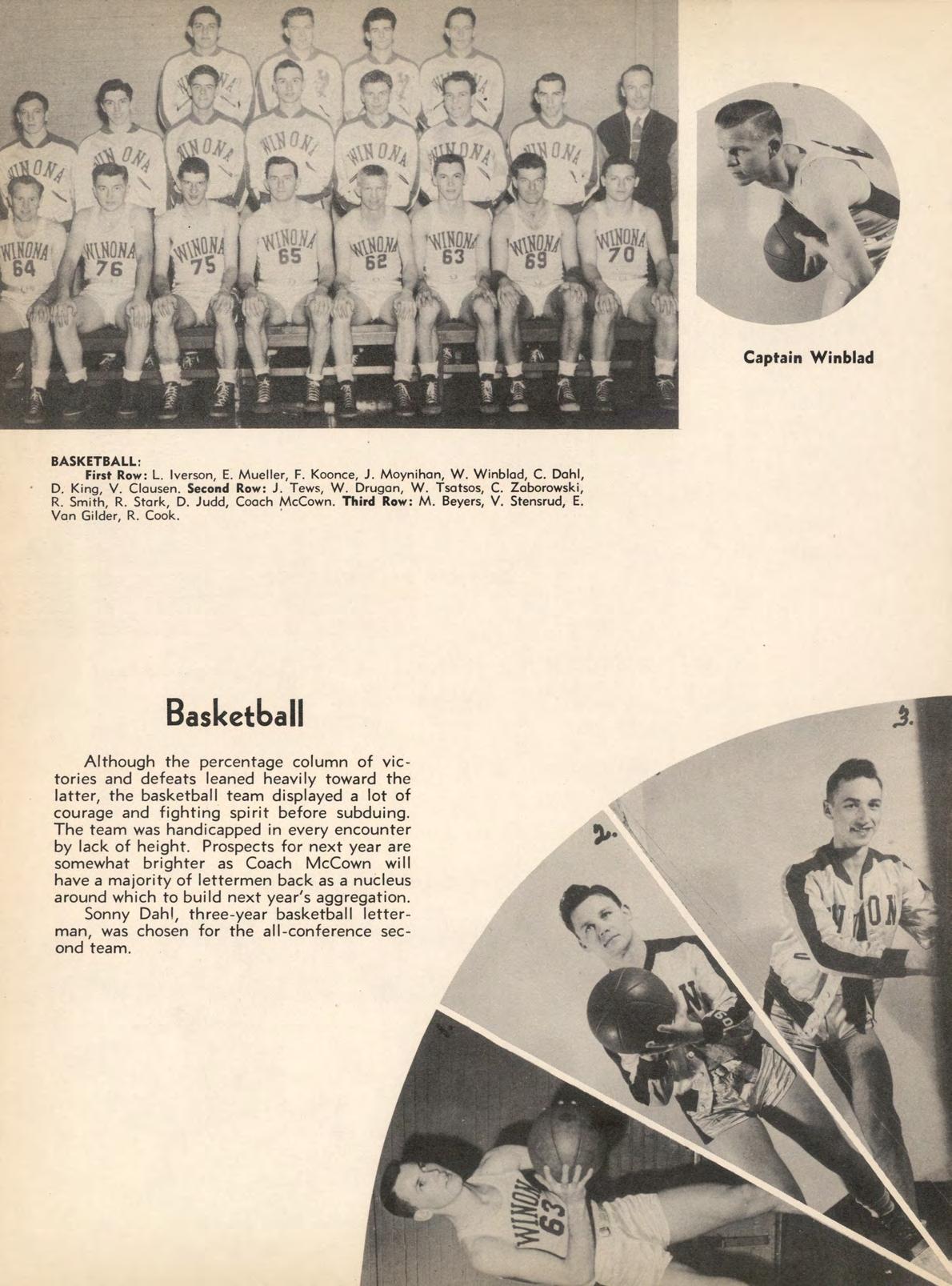 Sonny Dahl, three-year basketball letterman, was chosen for the all-conference second team.