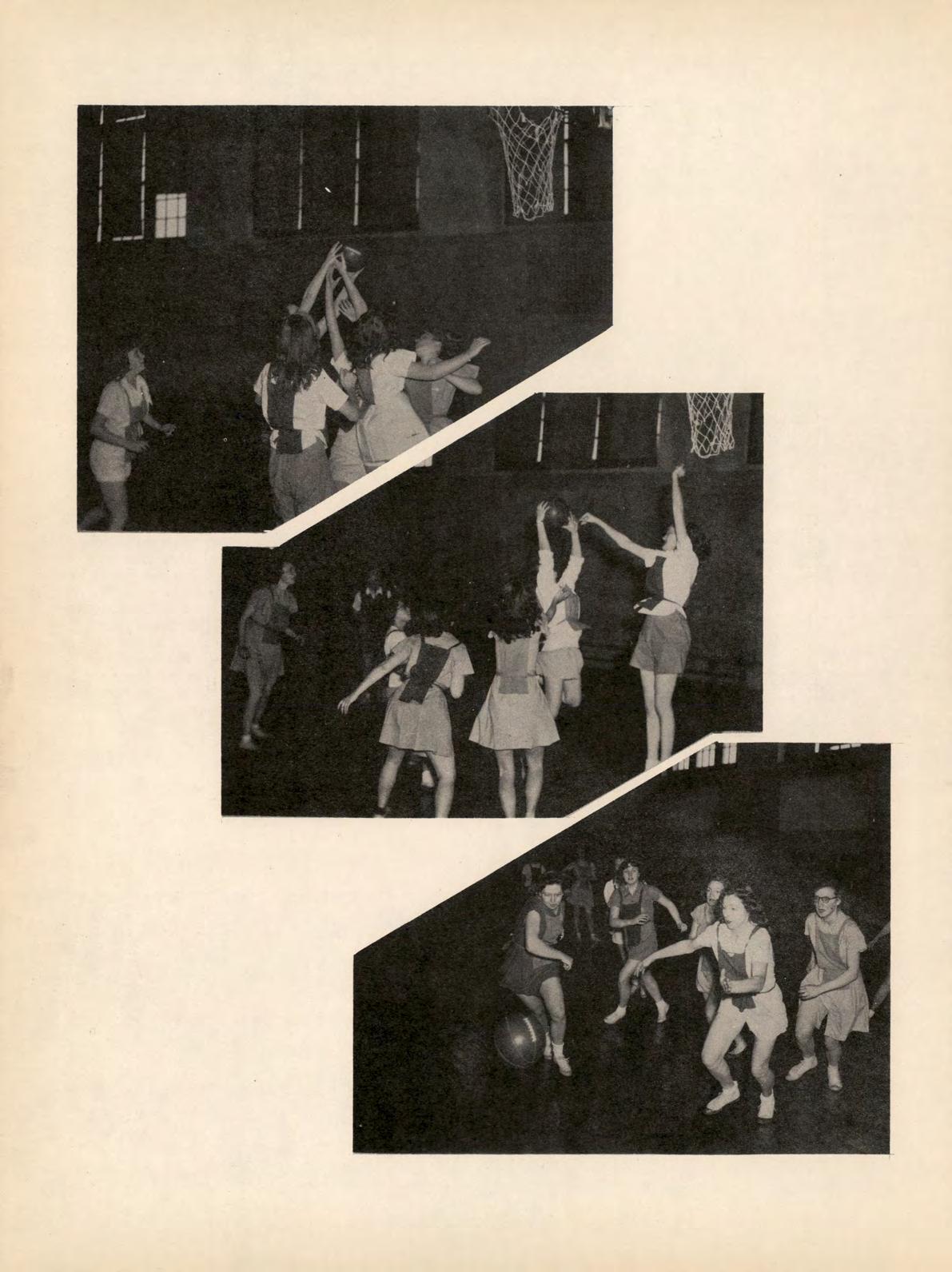 Although the percentage column of vietories and defeats leaned heavily toward the latter, the basketball team displayed a lot of courage and fighting spirit before subduing. The team was handicapped in every encounter by lack of height. Prospects for next year are somewhat brighter as Coach McCown will have a majority of lettermen back as a nucleus around which to build next year's aggregation.