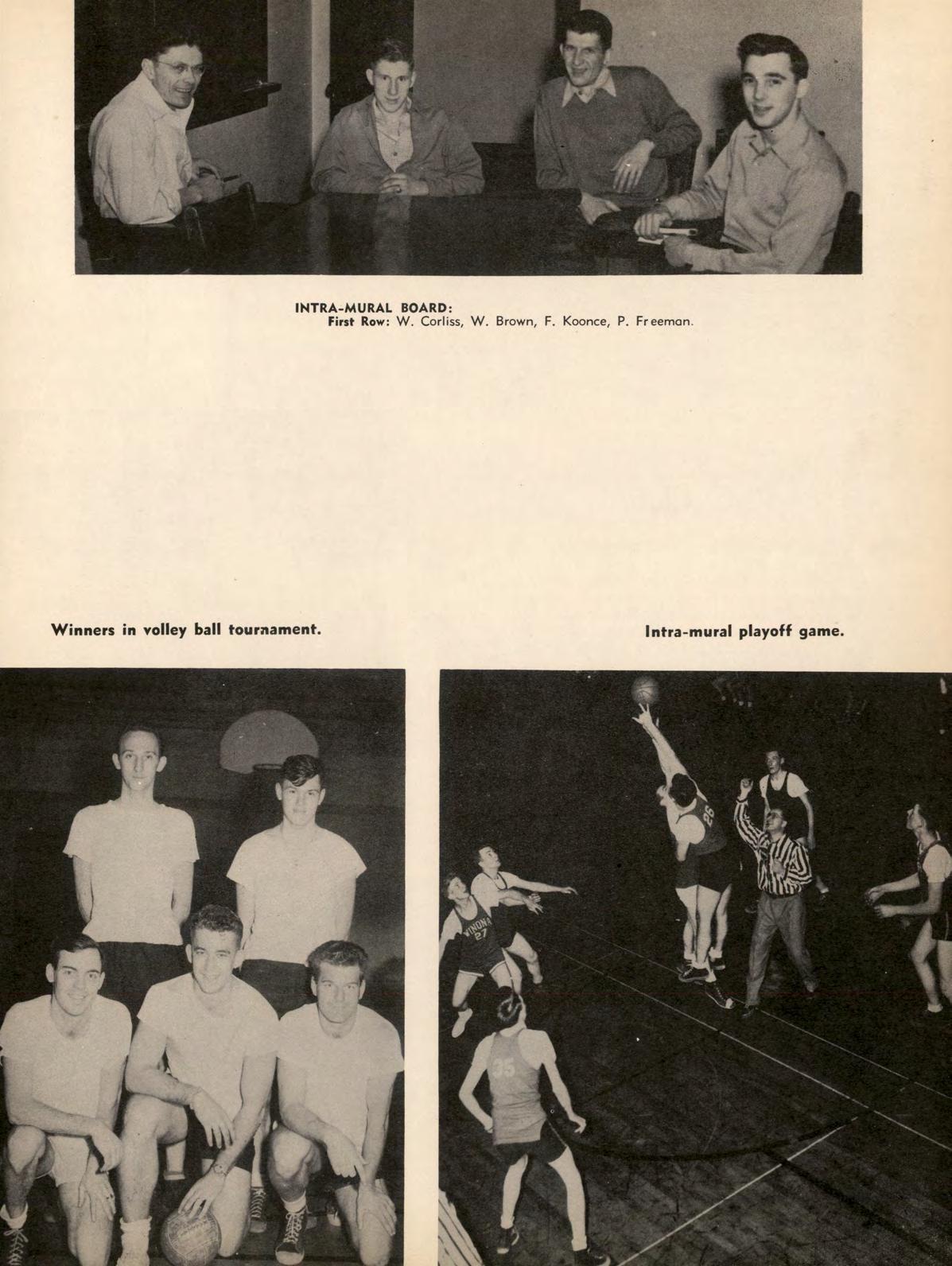 INTRA-MURAL BOARD: First Row: W. Corliss, W. Brown, F. Koonce, P. Freemon.