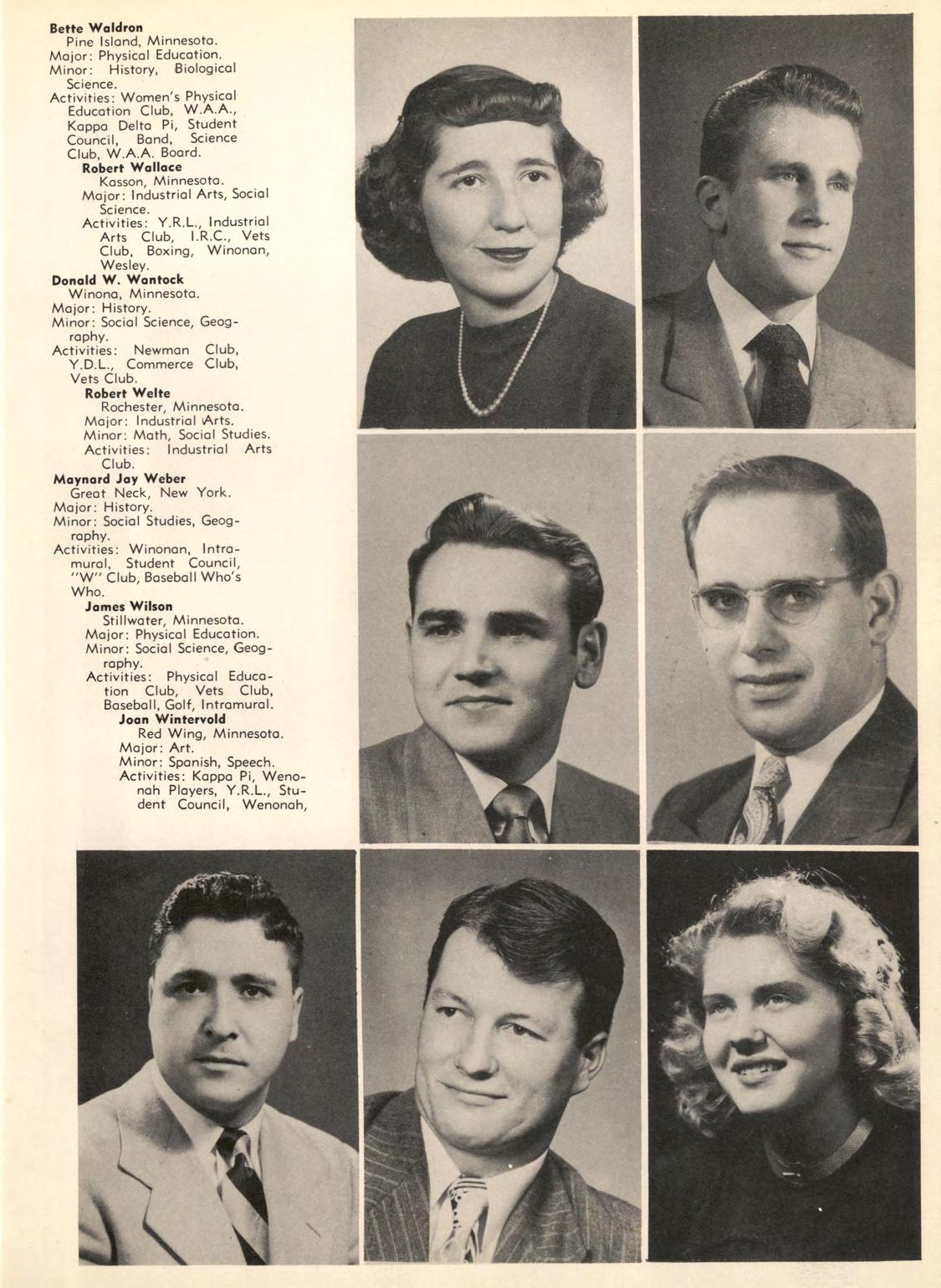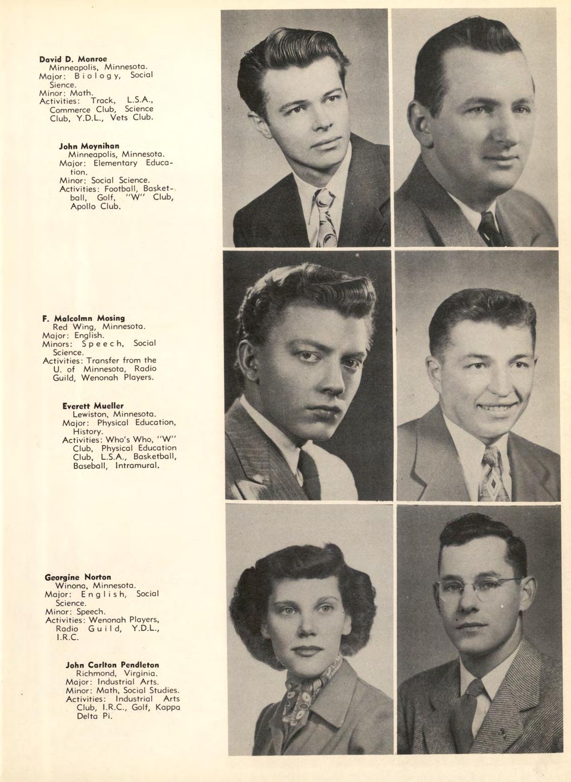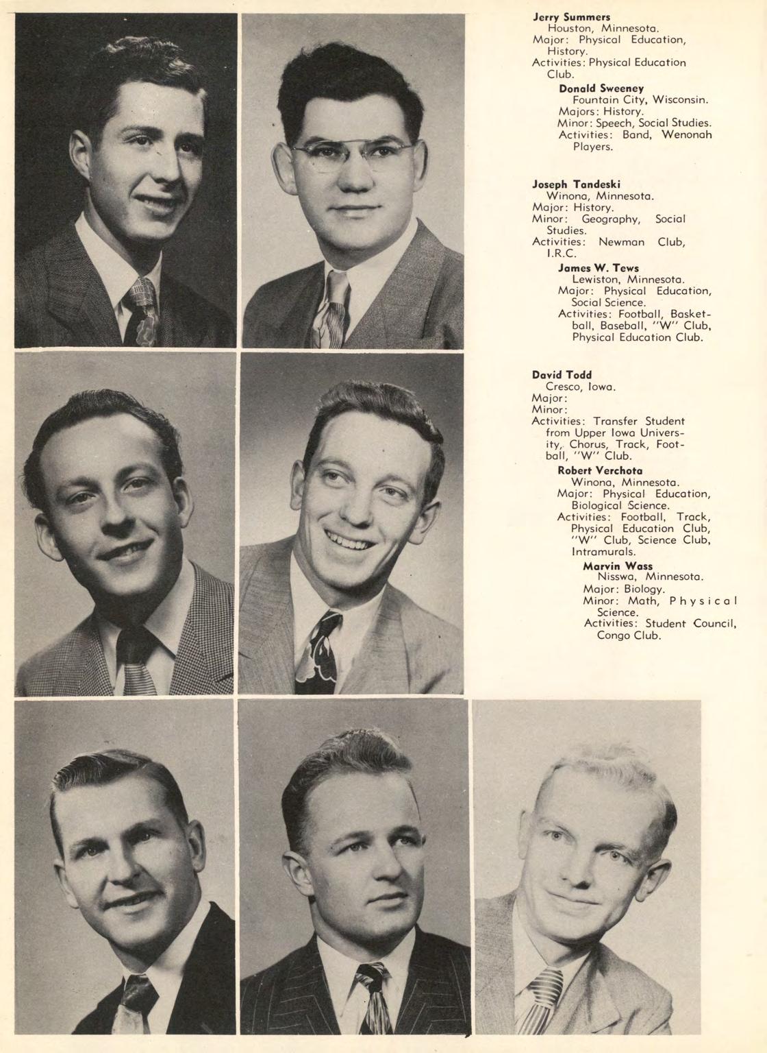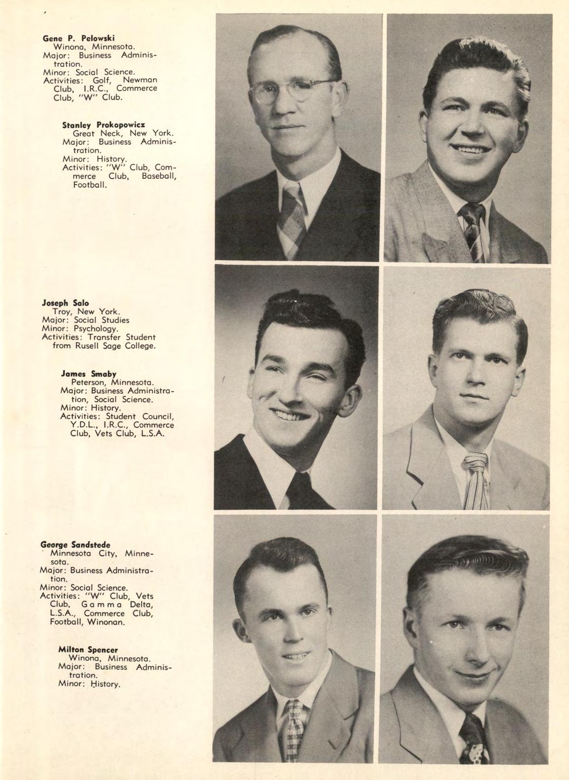 Activities; "W" Club, Vets Club, Gamma Delta, L.S.A., Commerce Club, Football, Winonan.