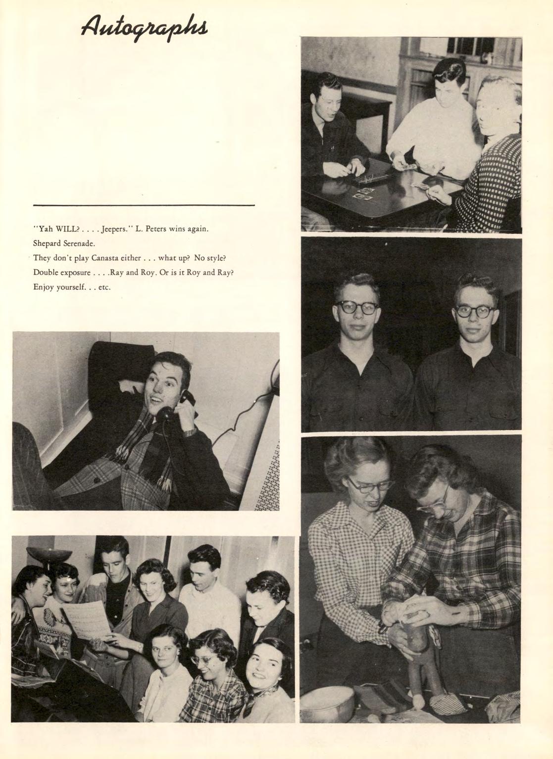 Those “low-down” blues. J. Fennie sings his old favorite “Shanty Town”. E. Barrows provides humor and skill. Birds-eye view.The god Apollo would be proud of his T.C. namesake, the Apollo Club Composed of some twenty male voices the choral group meets twice weekly for rehearsals with the director. Miss Bard accompanist, Sylvia Canning ; Tryouts select the voices which blend the best into the group the club works as one informal, music-centered unit come Bach or Waring laryngitis or spring fever. Jim Melde was president of the club this year, receiving valuable assistance from vicepresident George Truwe and secretary-treasurer, Ray Colwell.