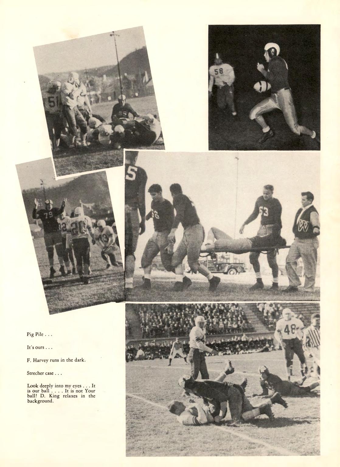 After an opening 6-0 victory over St. Mary’s Redmen, the Warriors were “warriors” in name only as they failed to win a remaining game. They managed to stage a mild upset by tying the Moorhead team 20-20. But aside from these two games, things were pretty blue for the rest of the season. One bright spot in the football picture is the fact that only six lettermen graduate from the squad. They are: Don Judd, Dan Besser, Pinky Bennett, Dave Todd, Daud King, and George Sanstede. Improvement is the word for the coming seasons.
