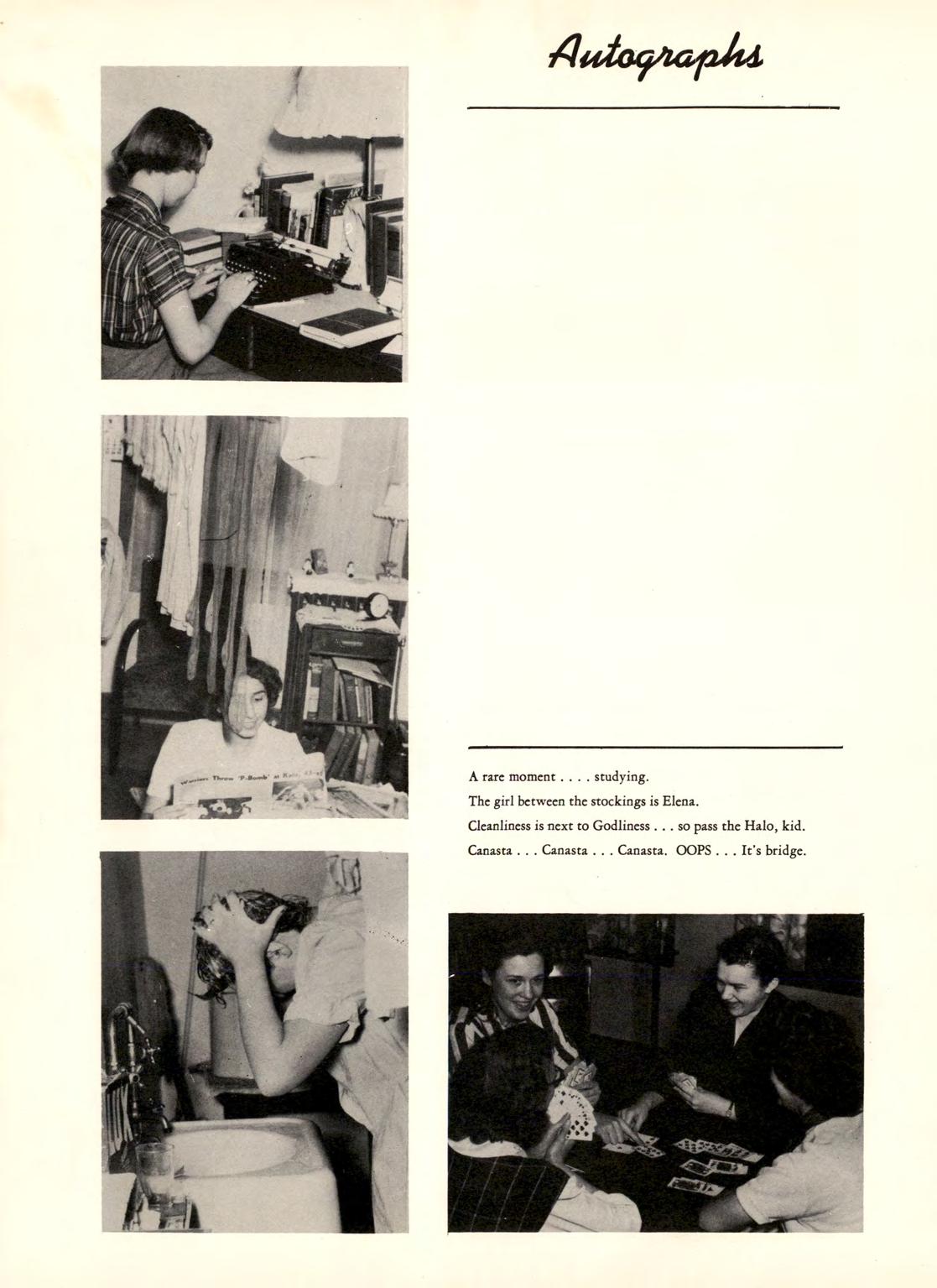 In the fall this group sponsored the customary “Big-Little Sister Campaign” where the upper class women help the frosh girls with college technicalities The more ambitious ones took part in the annual hike up Garvin Heights with food as an incentive