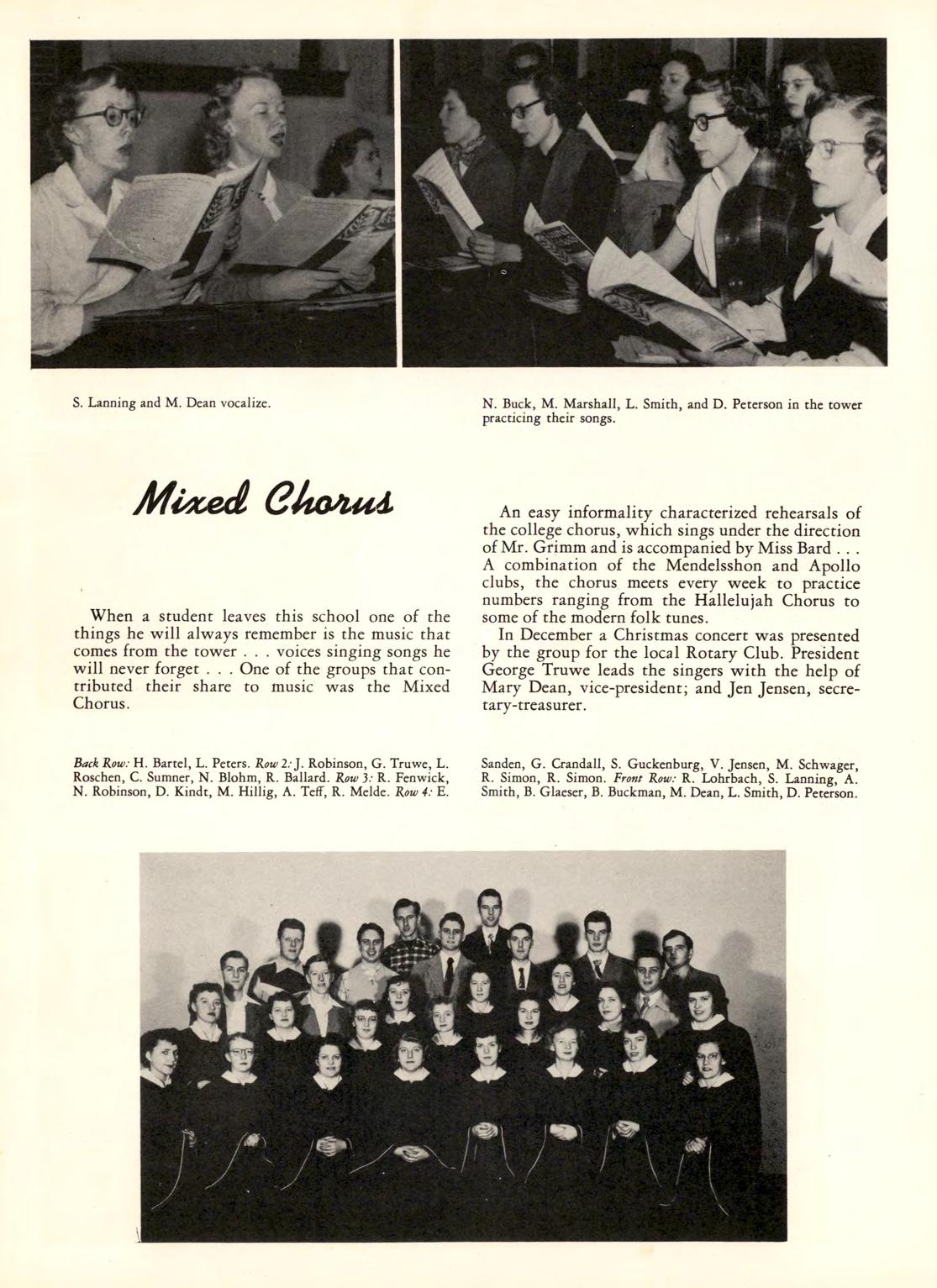 When a student leaves this school one of the things he will always remember is the music that comes from the tower voices singing songs he will never forget One of the groups that contributed their share to music was the Mixed Chorus.