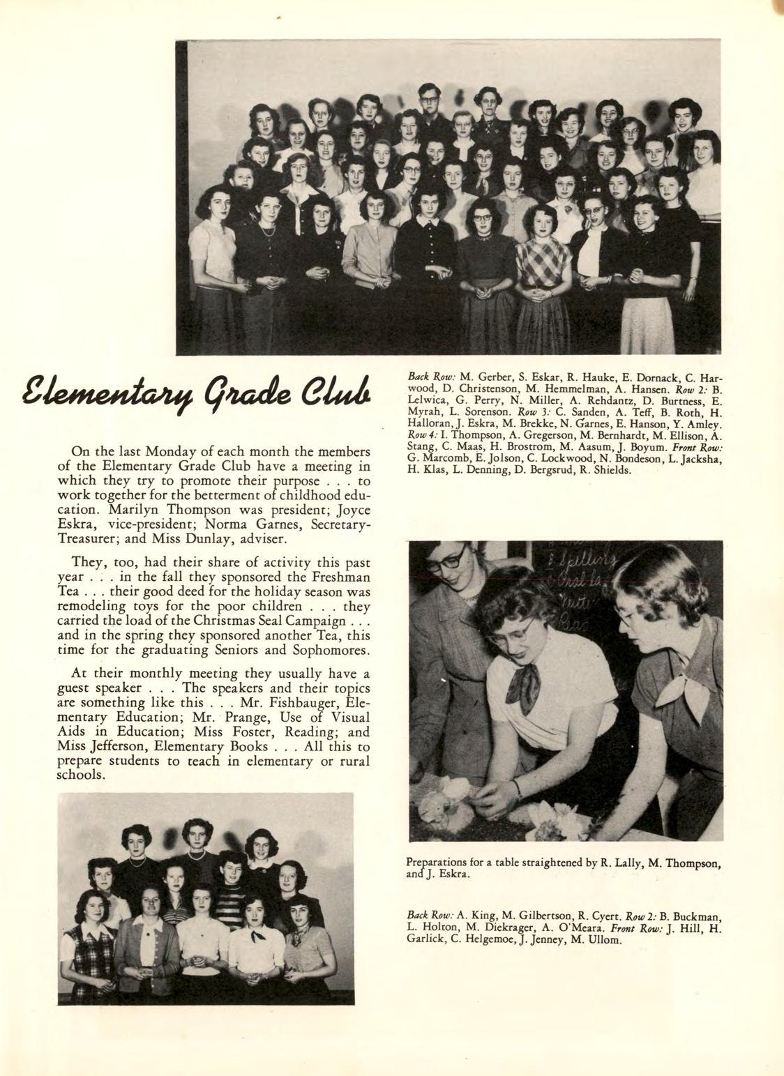 to make the golden year a memorable one. Various concerts during the year were climaxed by a big fifty-year’s concert and celebration in the spring. Elaine Sanden was president; assisted by vicepresident, Sylvia Tanning; Corresponding Secretary, Beverly Buckman; Recording Secretary, Nancy Buck; and Treasurer, Jen Jensen.