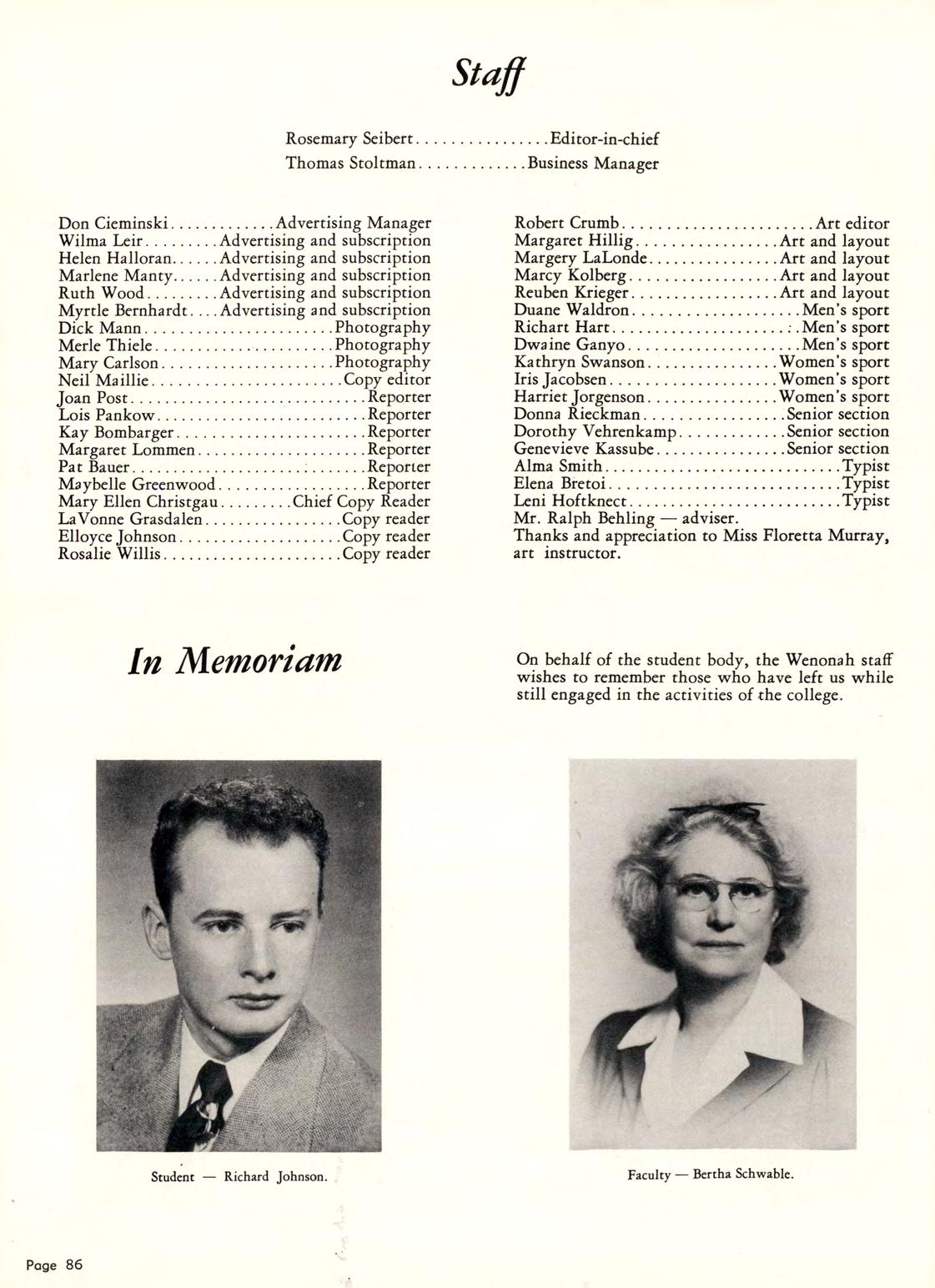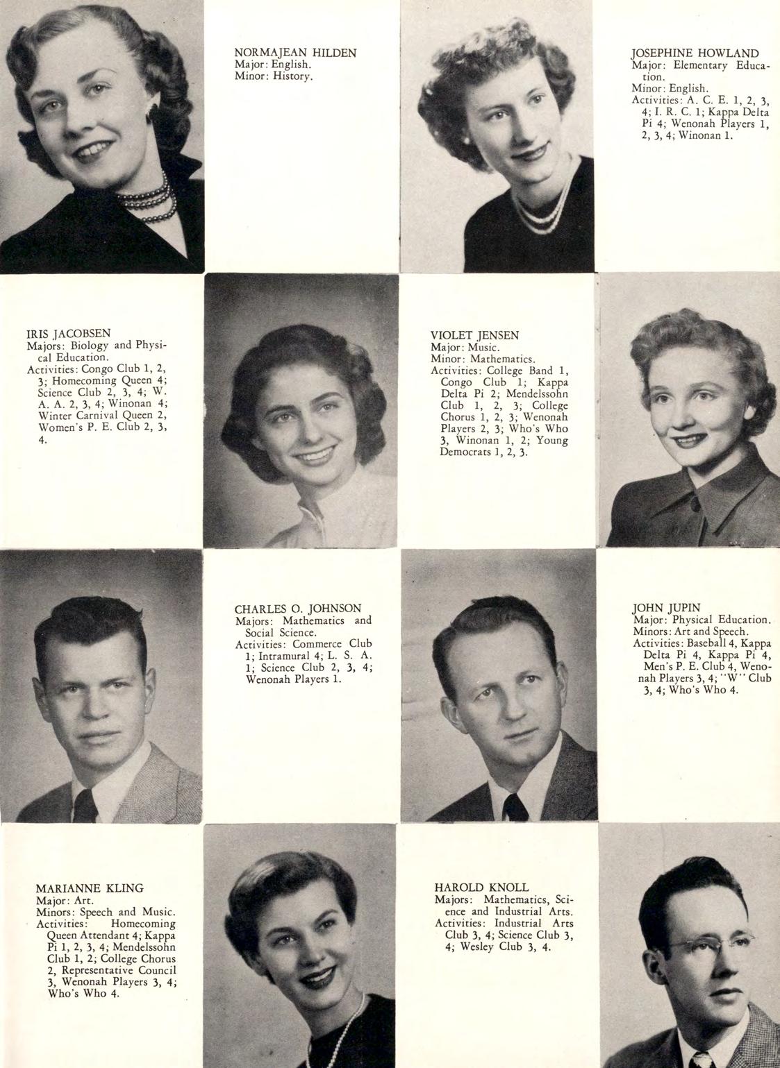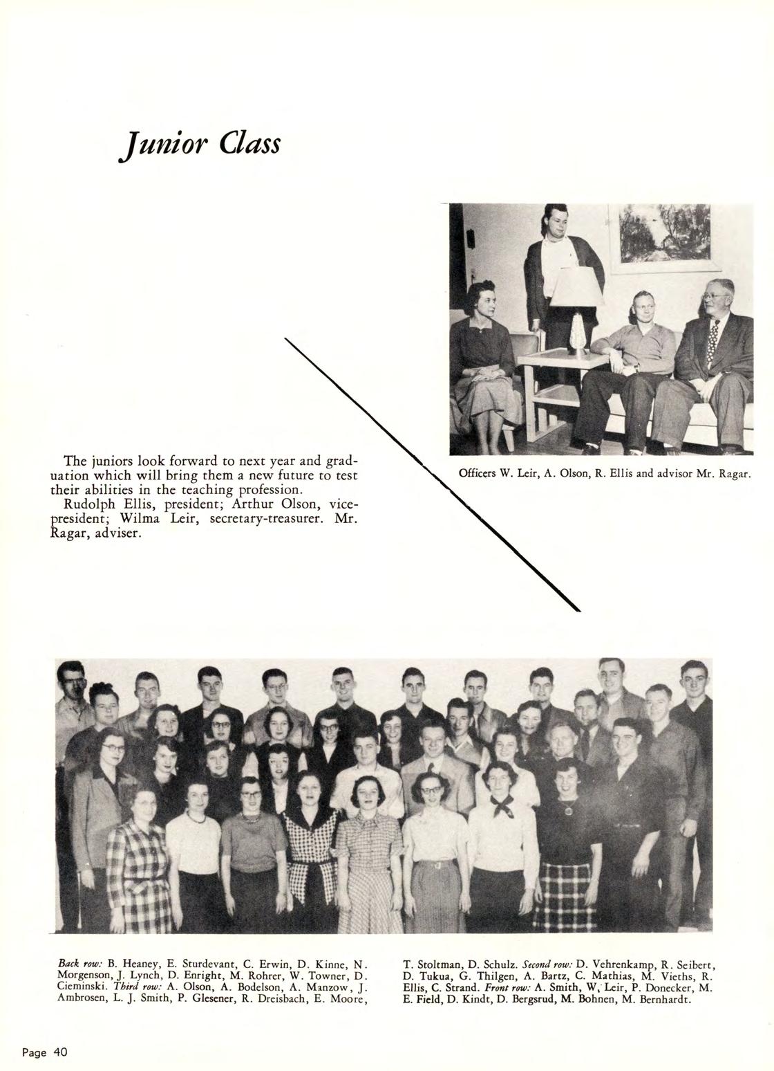 M. A., U. of M.; grad, student, U. of M., U. of Mexico City, W. S. T. C. 1932. DOROTHY MAGNUS Assoc, in Arts, W. S. T. C.; B. S., M. A., U. of M.; grad, student, U. of Iowa, Northwestern U., Columbia U., U. of M., W. S. T. C. 1943. JAMES BECKER... B. S., M. A., U. ofM., W. S. T. C. 1948.EDWARD DAVIS. ..B. A., Wabash; M. A., U. of Chicago; grad, student, U. of Chicago, U. of M., W. S. T. C. 1945. FREDERICK JEDERMAN Diploma, S. T. C., Peru, Neb.; student, U. of London; B. A., M. A., U. of Neb., W. S. T. C. 1936.