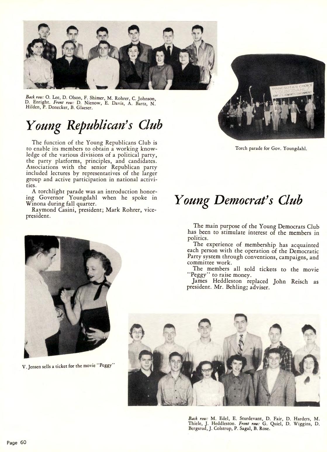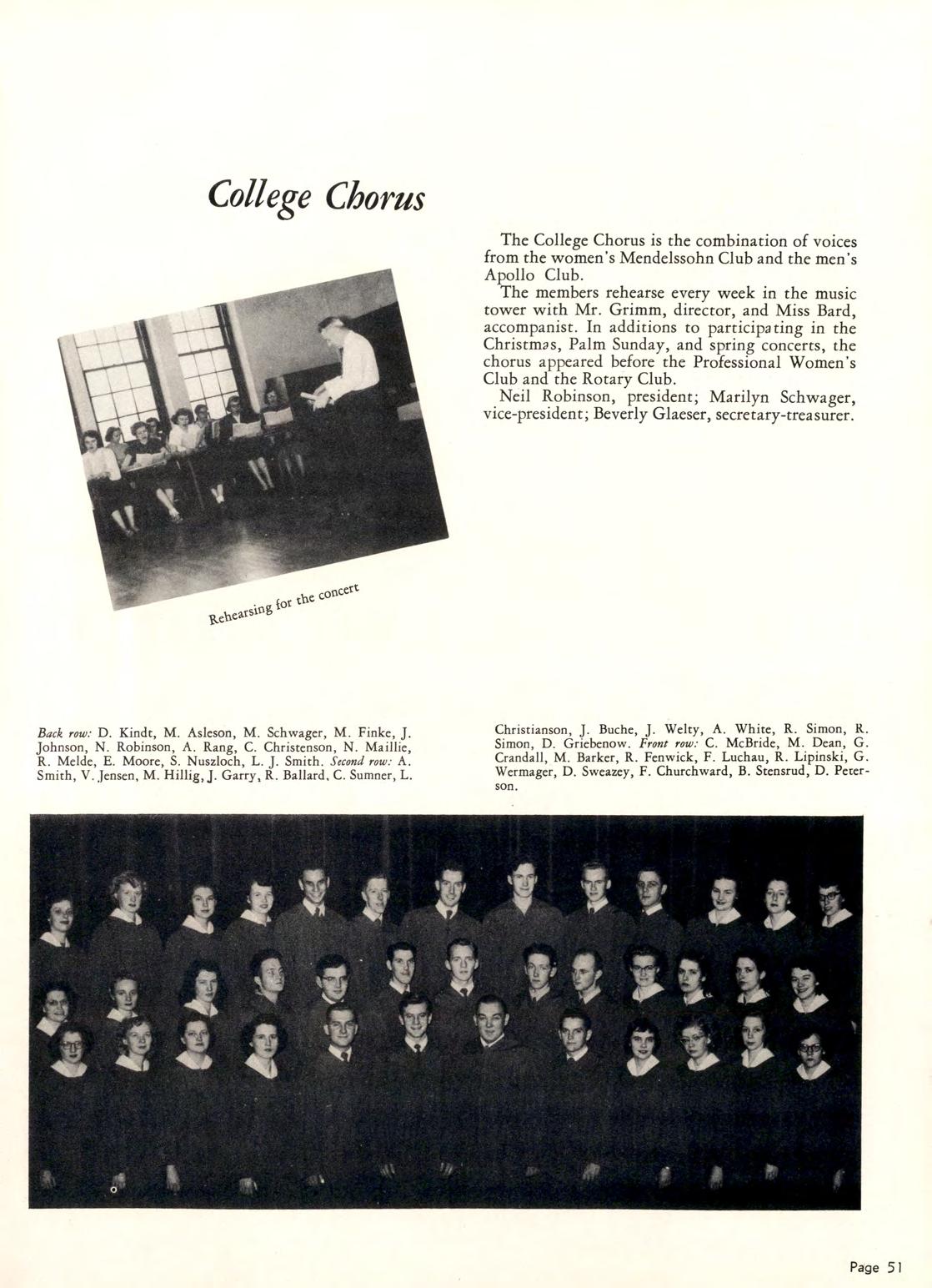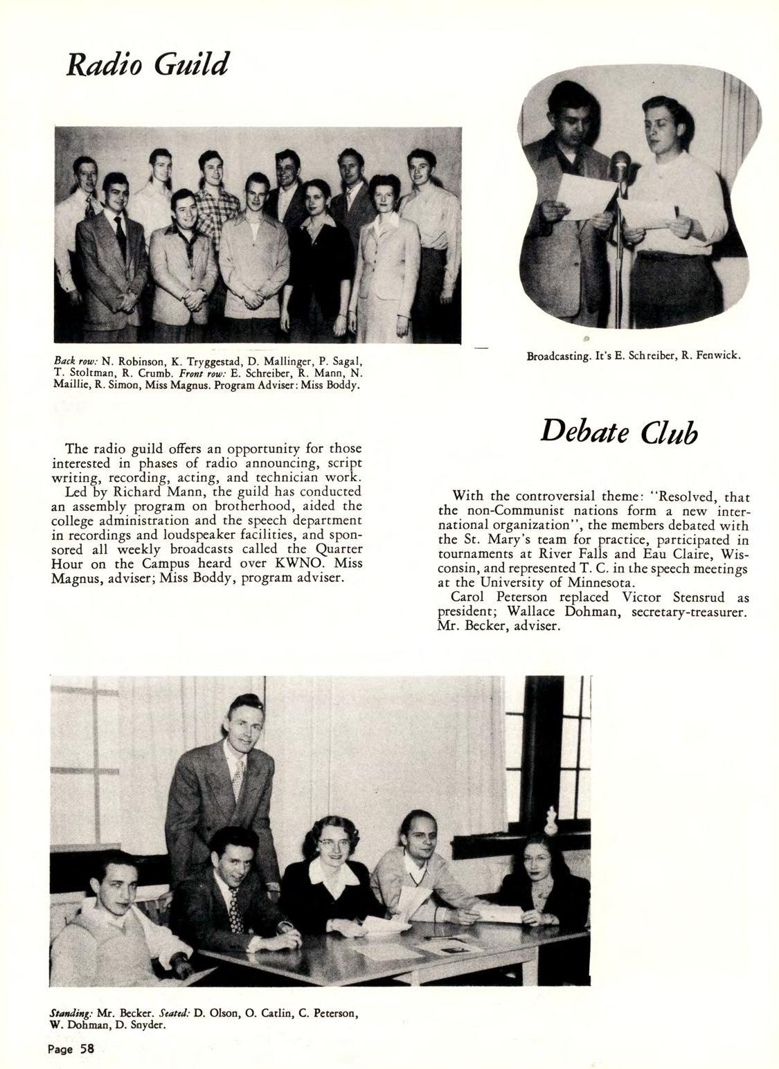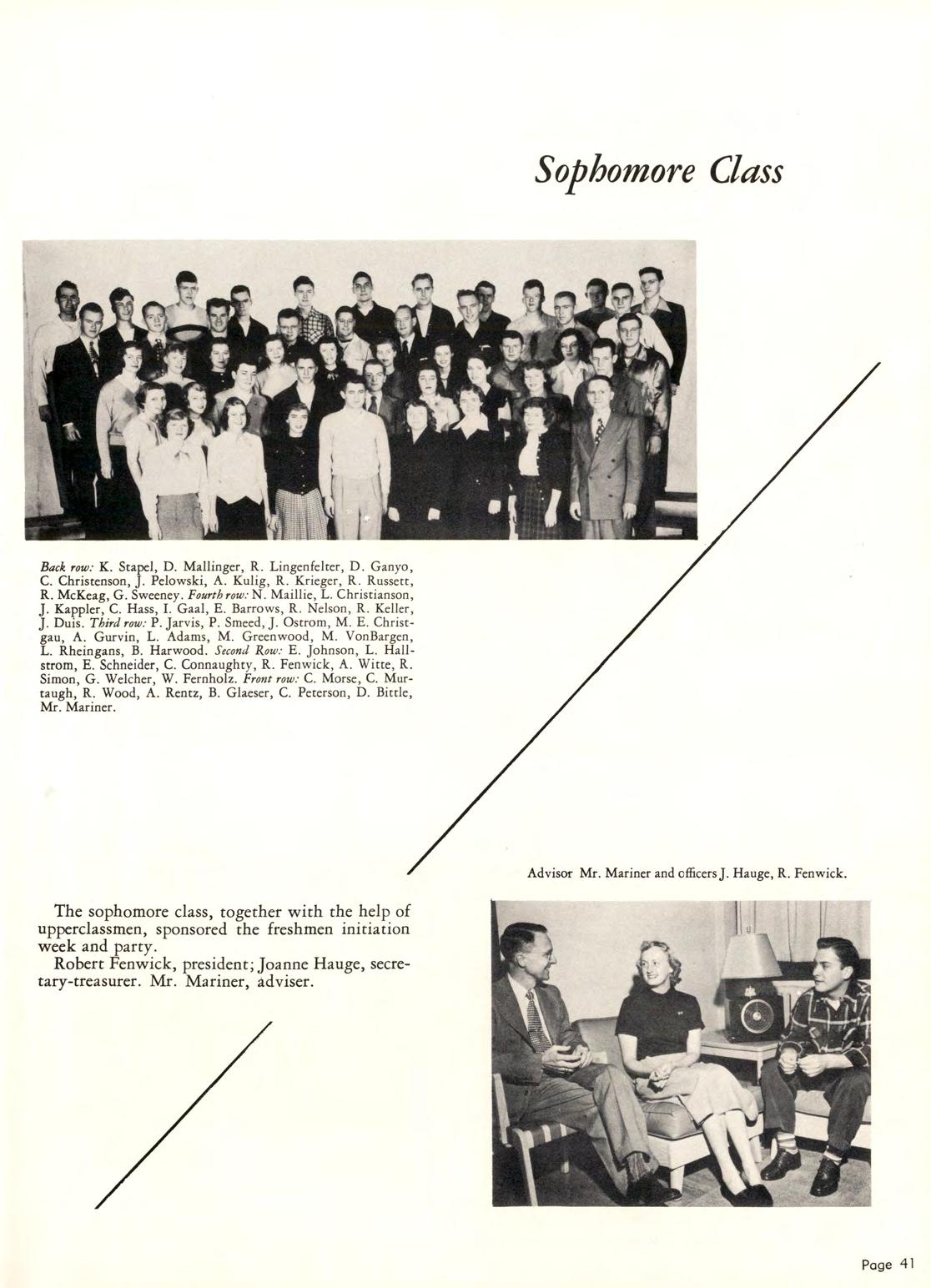M. A., U. of M.; grad, student, U. of M., U. of Mexico City, W. S. T. C. 1932. DOROTHY MAGNUS Assoc, in Arts, W. S. T. C.; B. S., M. A., U. of M.; grad, student, U. of Iowa, Northwestern U., Columbia U., U. of M., W. S. T. C. 1943. JAMES BECKER... B. S., M. A., U. ofM., W. S. T. C. 1948.EDWARD DAVIS. ..B. A., Wabash; M. A., U. of Chicago; grad, student, U. of Chicago, U. of M., W. S. T. C. 1945. FREDERICK JEDERMAN Diploma, S. T. C., Peru, Neb.; student, U. of London; B. A., M. A., U. of Neb., W. S. T. C. 1936.