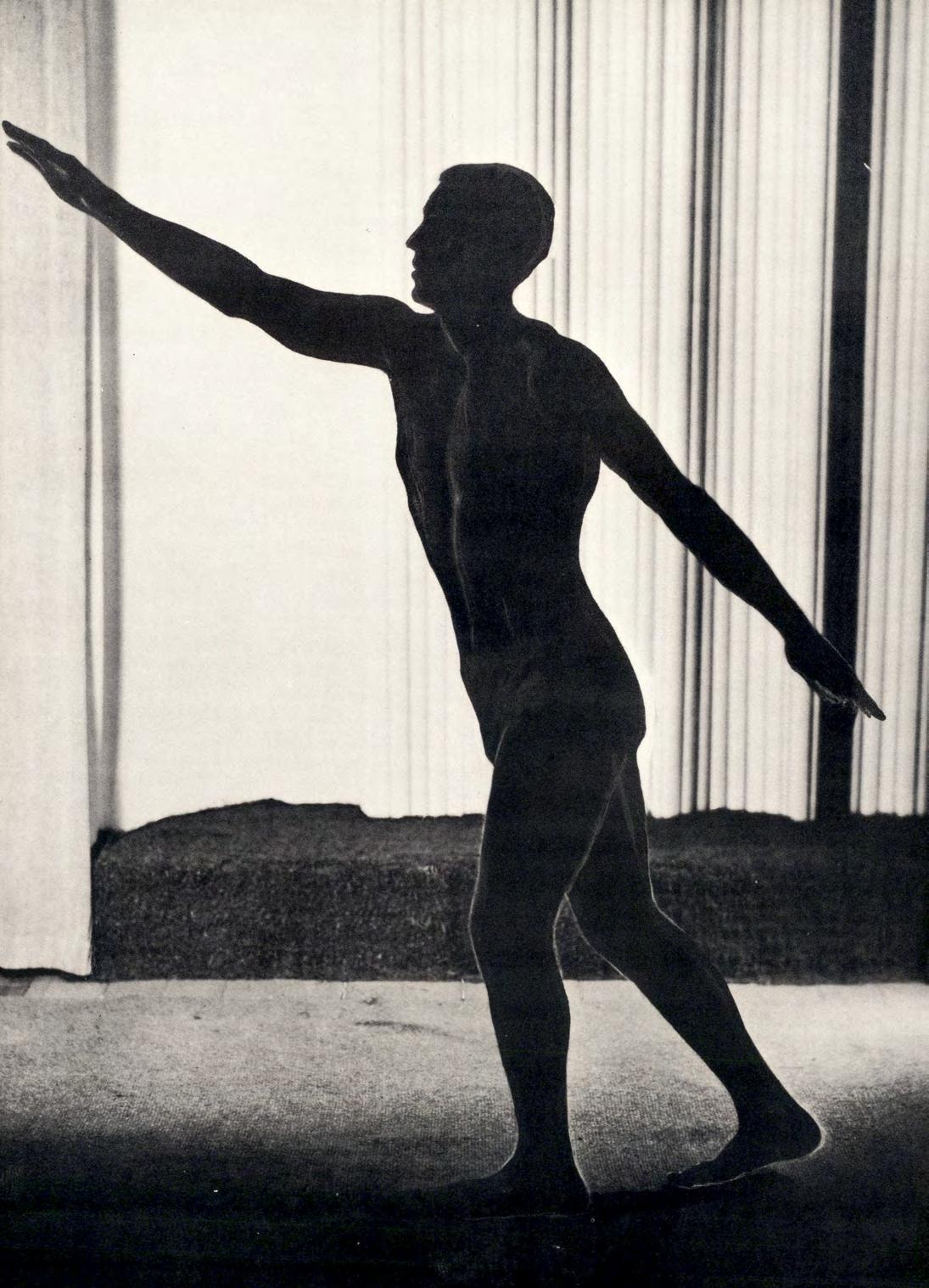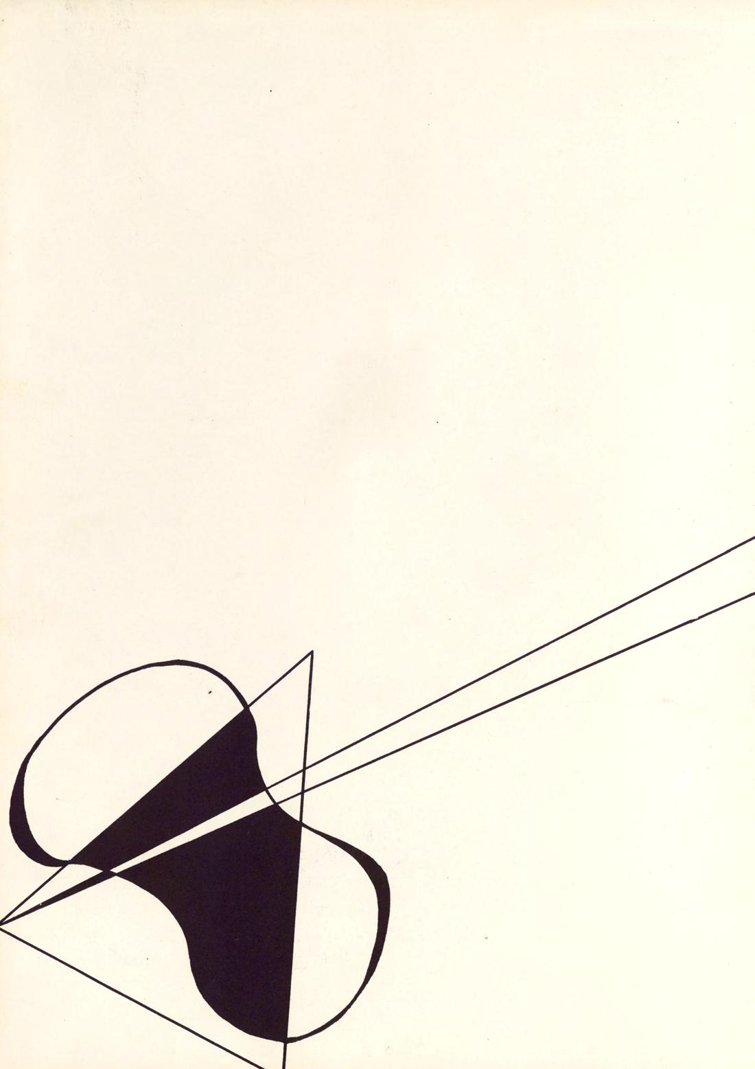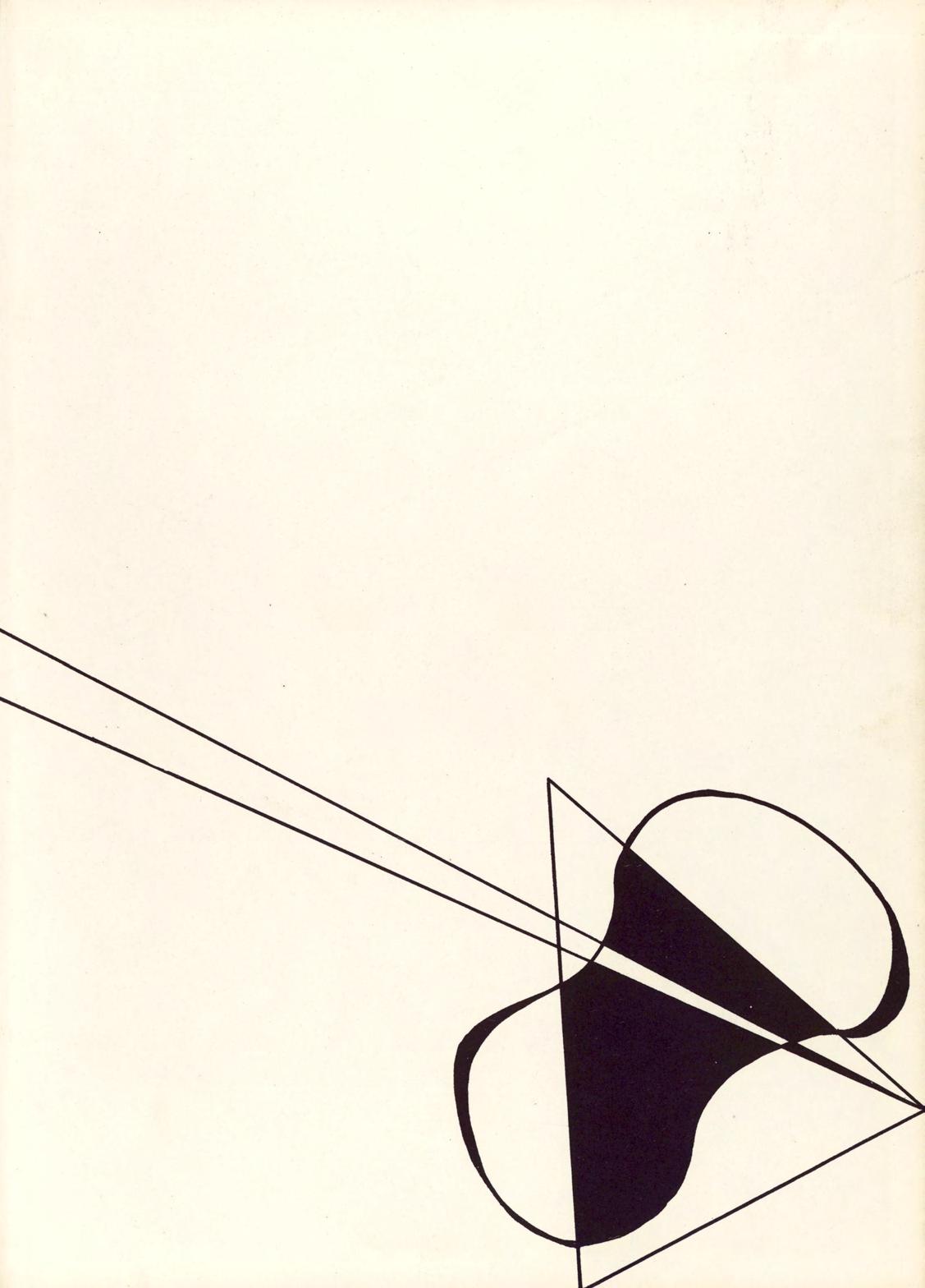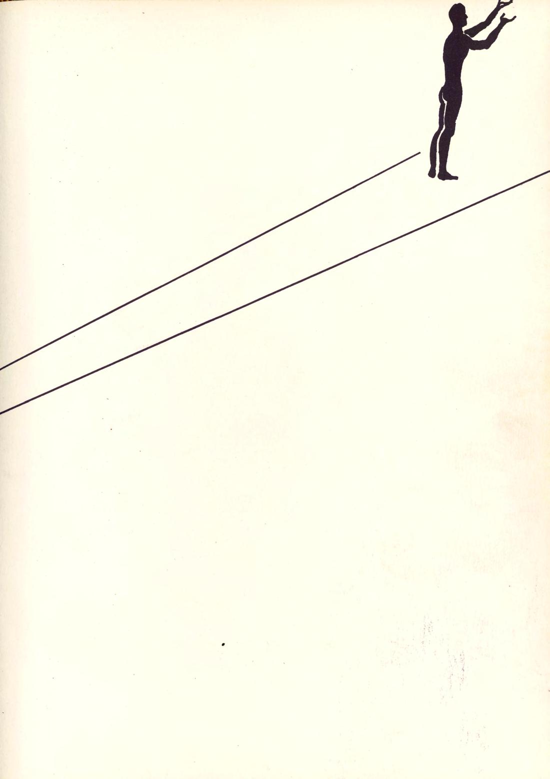 As a physical representation of the student in struggle, our classic figure is portrayed in struggle between the traditional, the white triangular plane, and the new free form line from which comes the inevitable promise of progress in education.