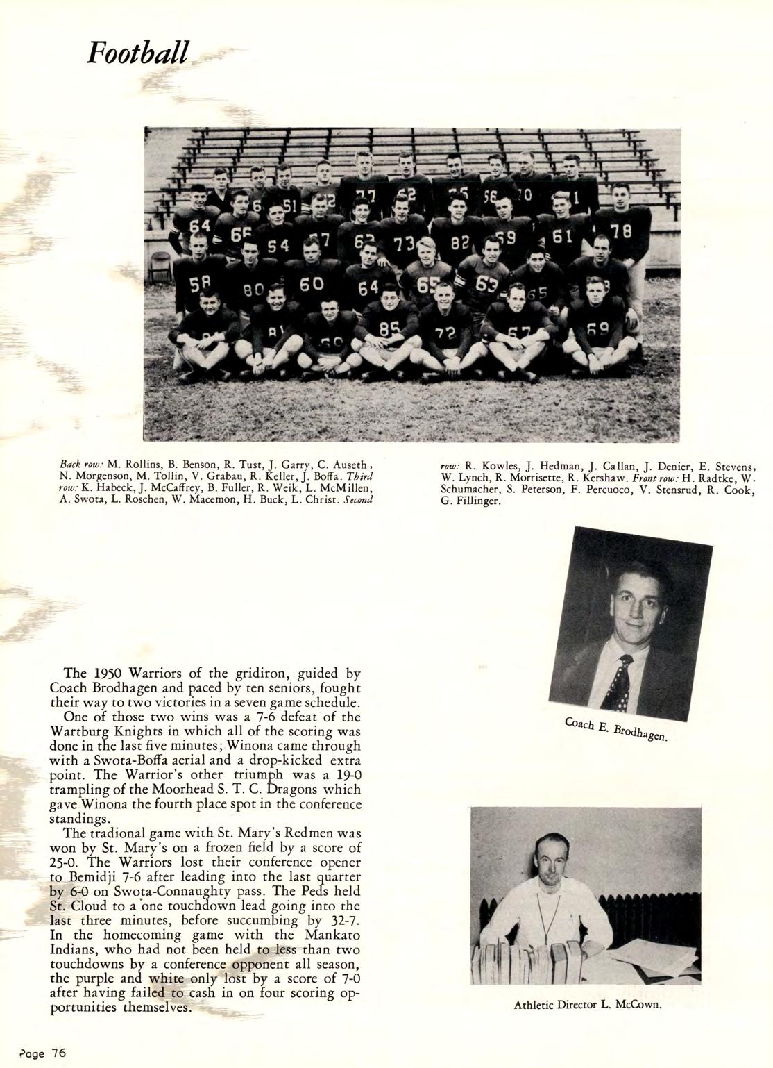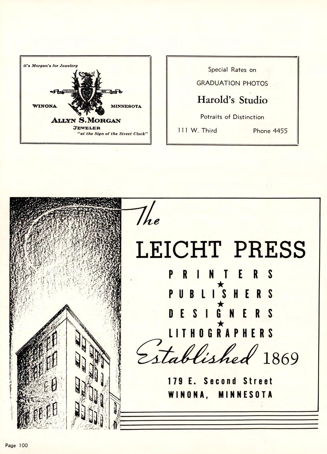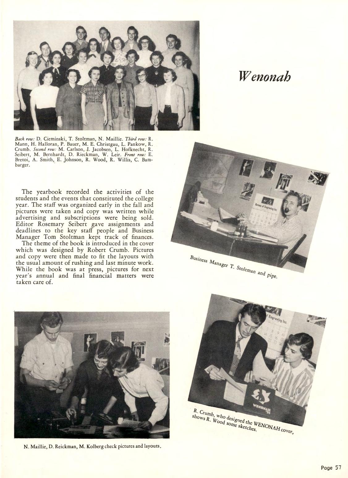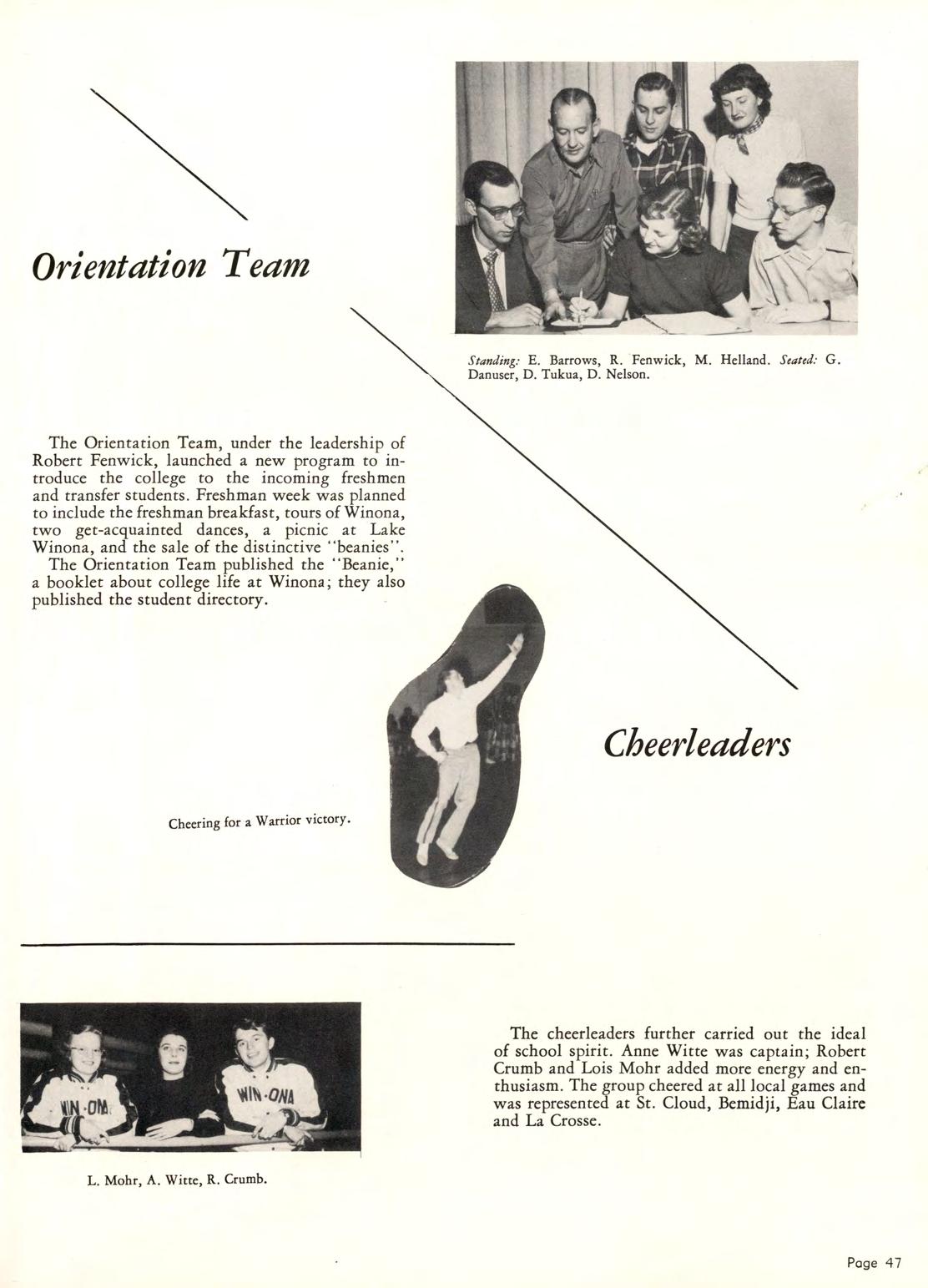 His reserved manner and ingenious way of finding the right answer to administrative problems have gone a long way in adding teamwork to the college. His friendliness with students and sympathy toward their point of view helps in making Winona a fine school.