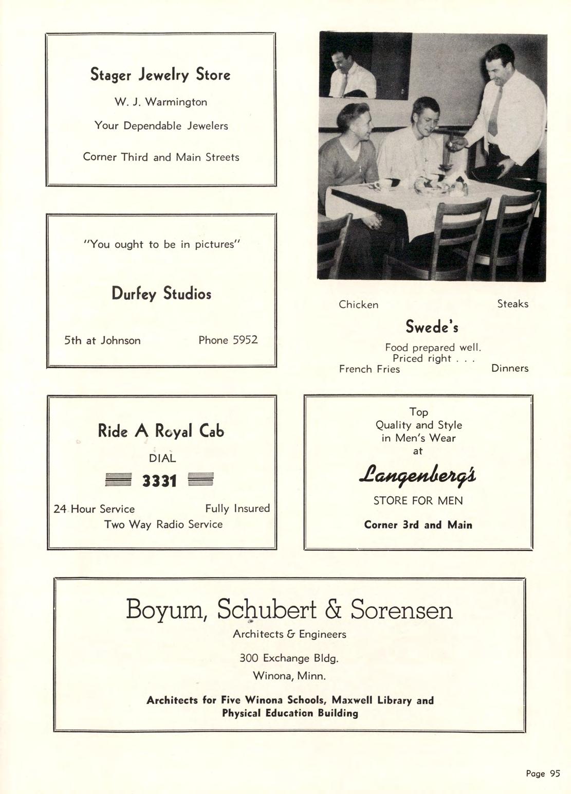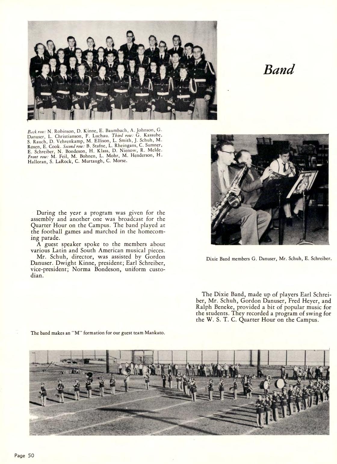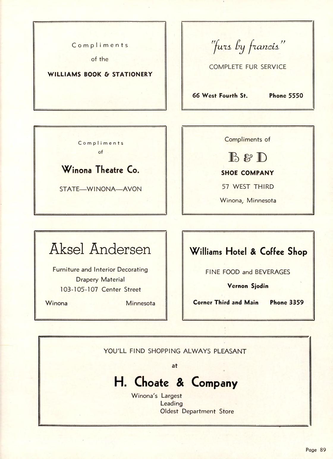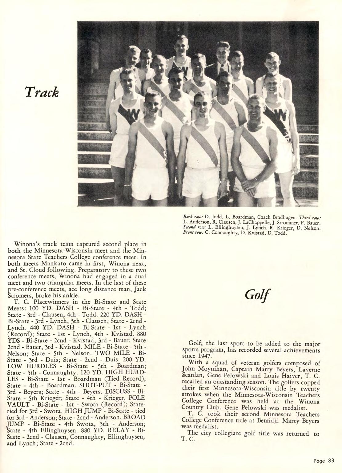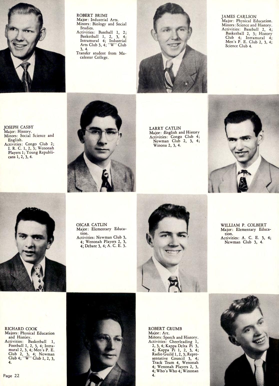 His reserved manner and ingenious way of finding the right answer to administrative problems have gone a long way in adding teamwork to the college. His friendliness with students and sympathy toward their point of view helps in making Winona a fine school.