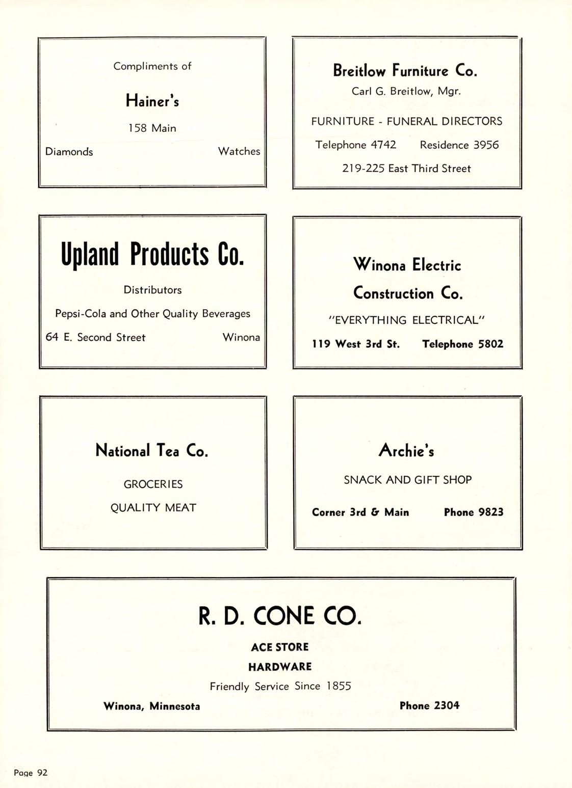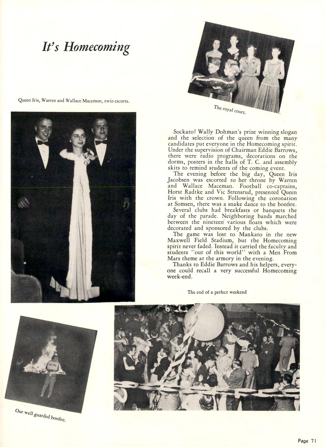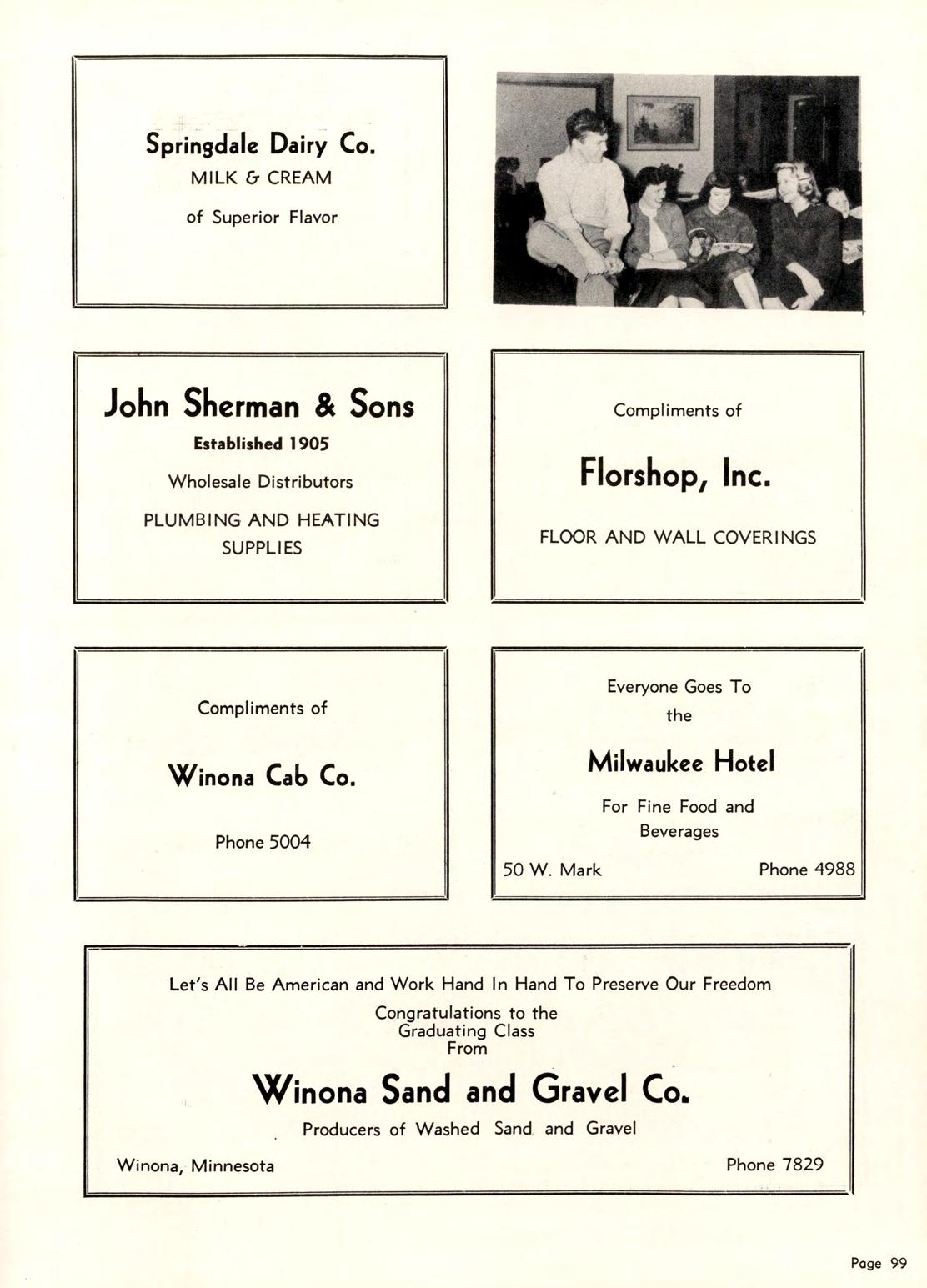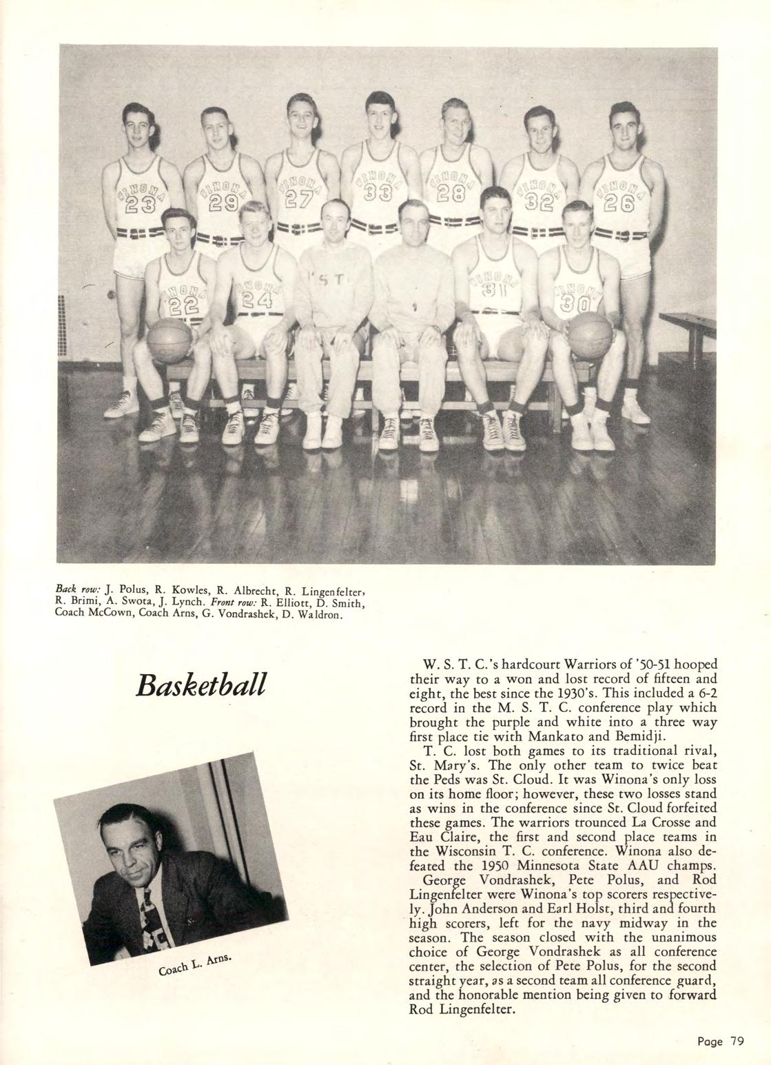 His reserved manner and ingenious way of finding the right answer to administrative problems have gone a long way in adding teamwork to the college. His friendliness with students and sympathy toward their point of view helps in making Winona a fine school.