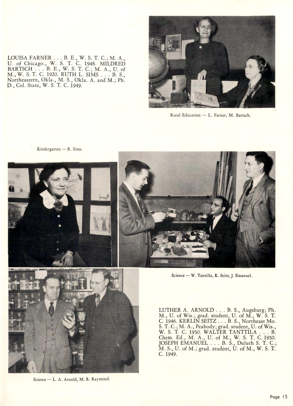 LUTHER A. ARNOLD B. S., Augsburg; Ph. M., U. of Wis.; grad, student, U. of M., W. S. T. C. 1946. KERLIN SEITZ B. S., Northeast Mo.