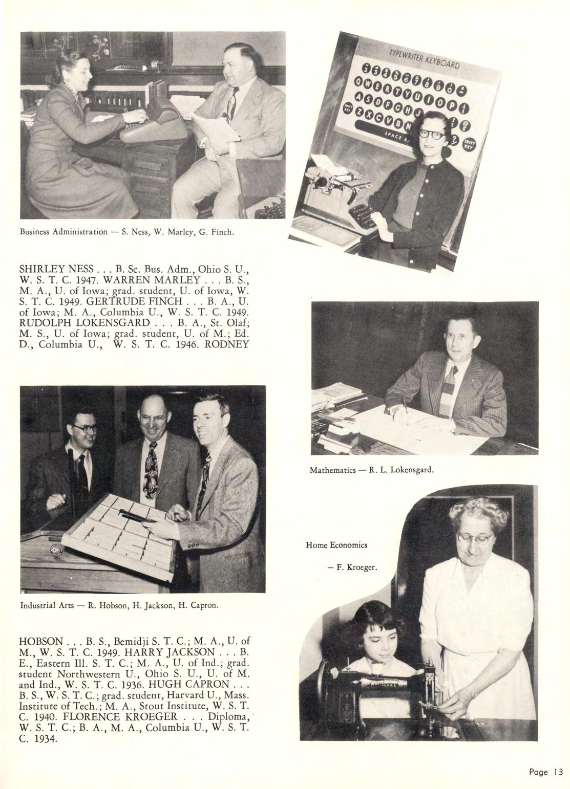 HOBSON B. S., Bemidji S. T. C.; M. A., U. of M., W. S. T. C. 1949. HARRY JACKSON B. E., Eastern Ill. S. T. C.; M. A., U. of Ind.; grad, student Northwestern U., Ohio S. U., U. of M. and Ind., W. S. T. C. 1936. HUGH CAPRON
