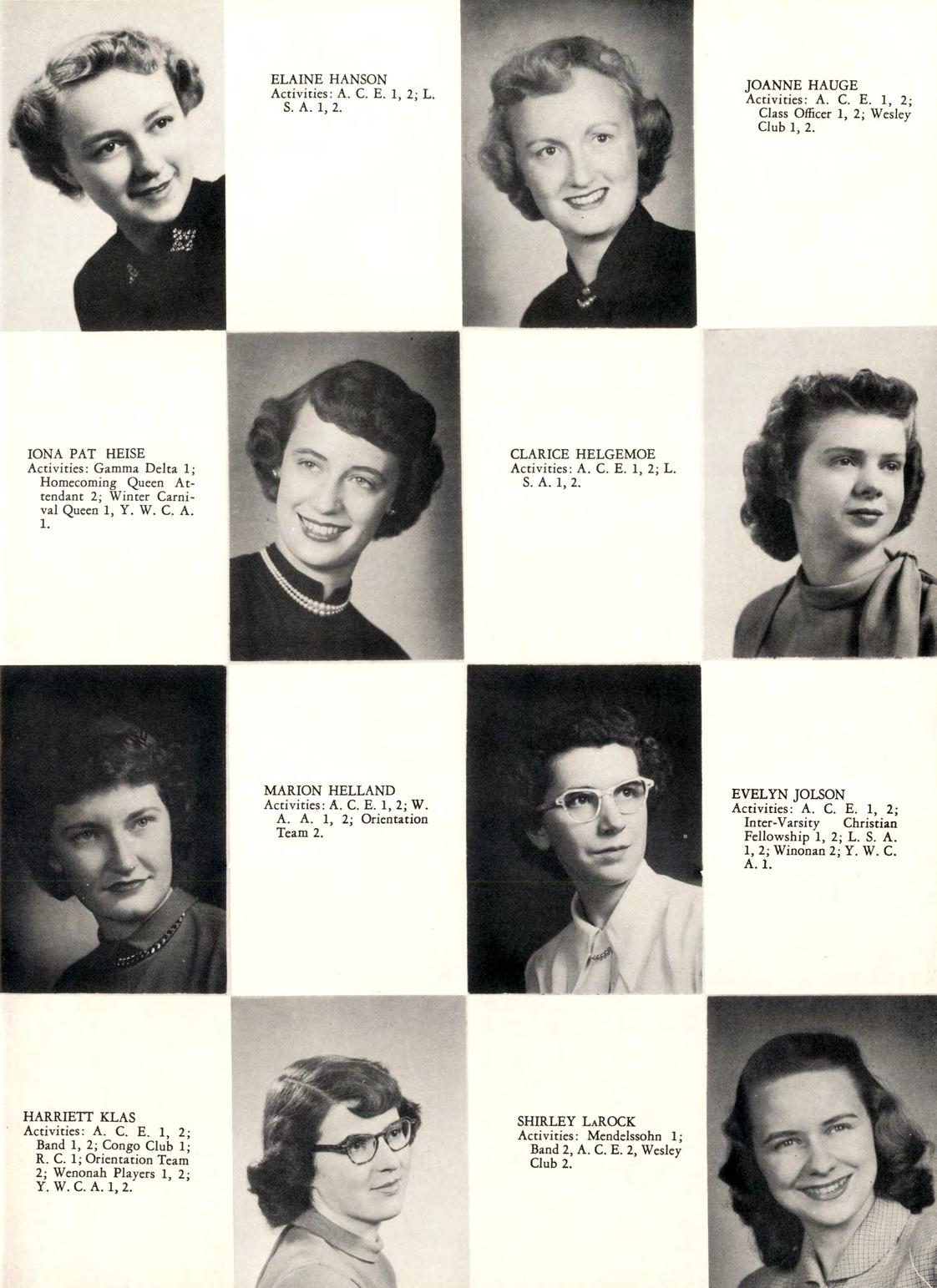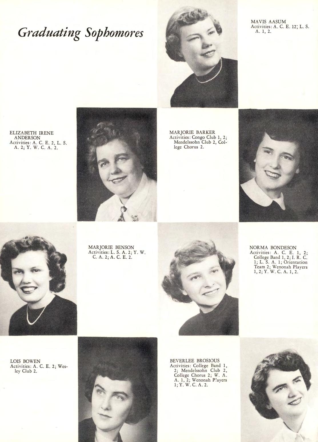 B. A., Iowa S. T. C.; M. A., Columbia U.; grad, student, U. of Col., Wash., M., So. Cal., W. S. T. C. 1949. MARION STRAND B. S., St. Cloud S. T. C.; grad. Student, U. of Wis., W. S. T. C. 1950.