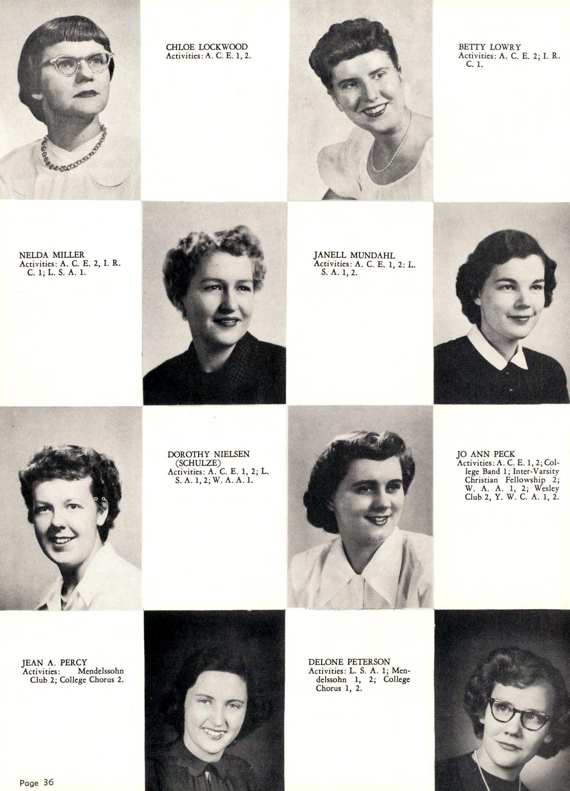 JEAN TALBOT B. A., U. of Wis.; grad, student, U. of Col., Wellesley; M. A., Ed. D., N. Y. U., W. S. T. C. 1925. CATHERINE PATTERSON B. A., Iowa S. T. C.; M. A., Columbia U., W. S. T. C. 1950. MARGARET BERVEN B.