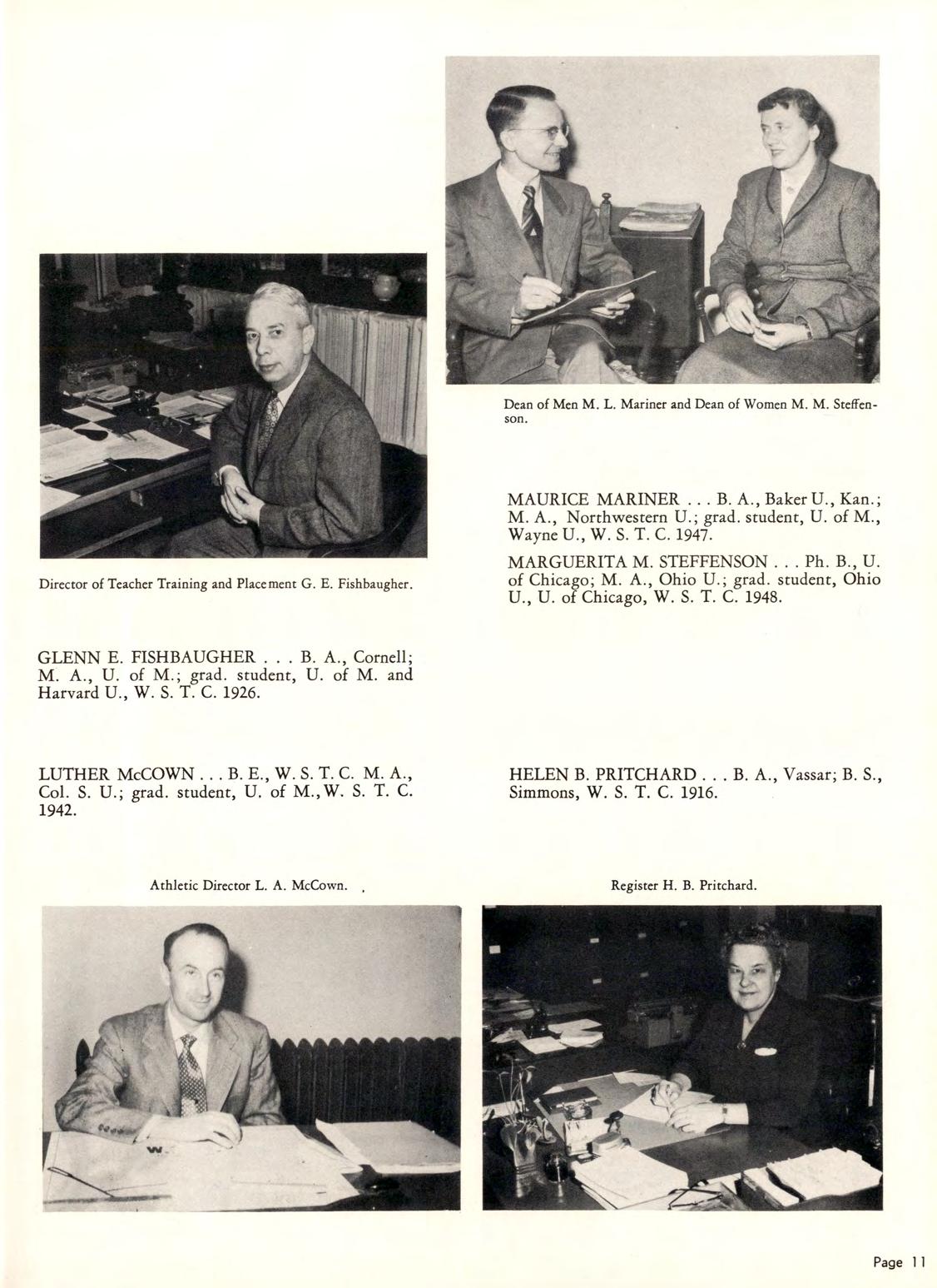 MARGUERITA M. STEFFENSON Ph. B., U. of Chicago; M. A., Ohio U.; grad, student, Ohio U., U. of Chicago, W. S. T. C. 1948.