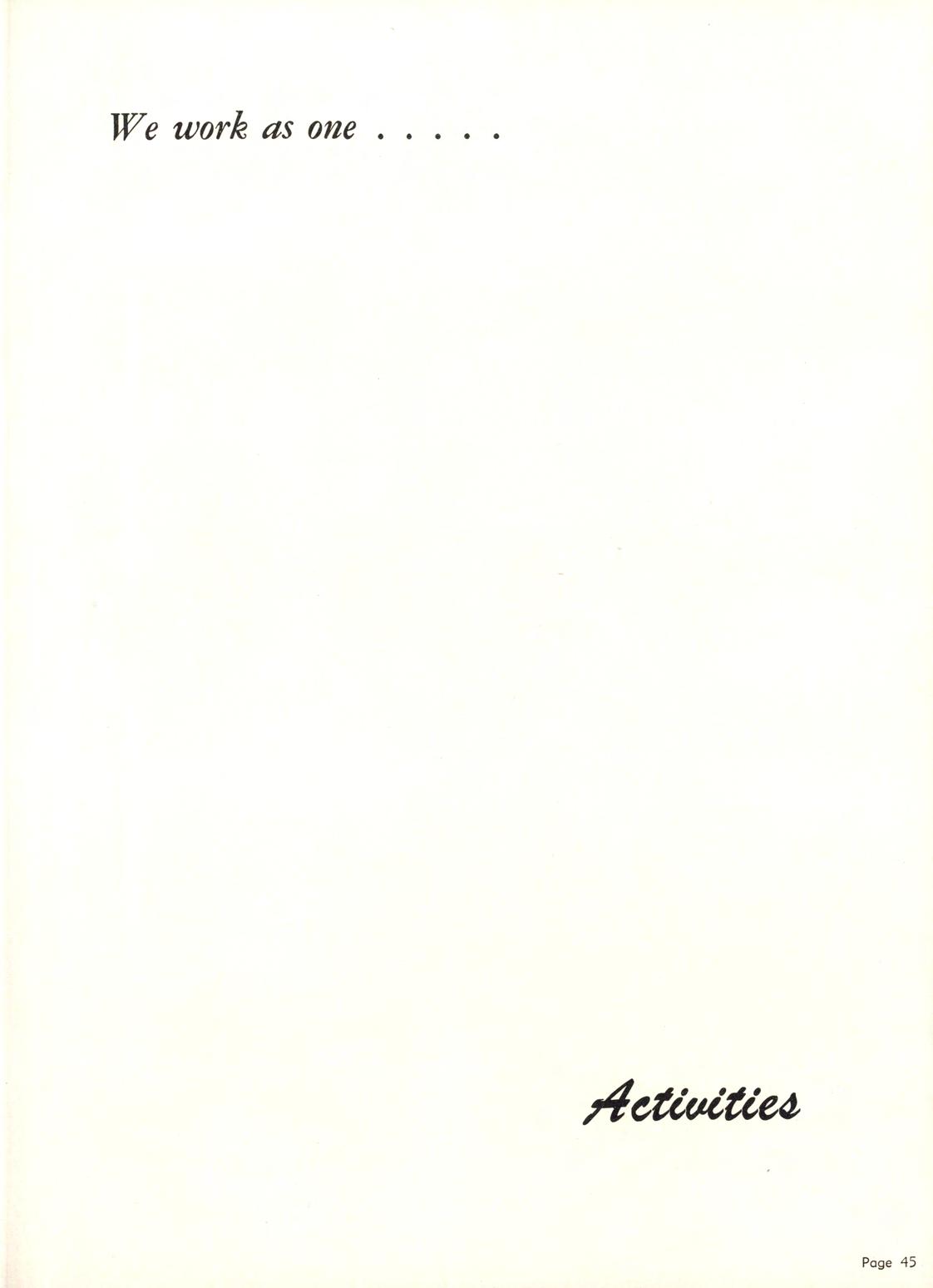 Students express themselves in the classroom, in the various activity groups and in the sports field. It is through these channels of expression and through the facilities of the campus buildings and the guidance of the faculty that the students develop the democratic and constructive attitude.