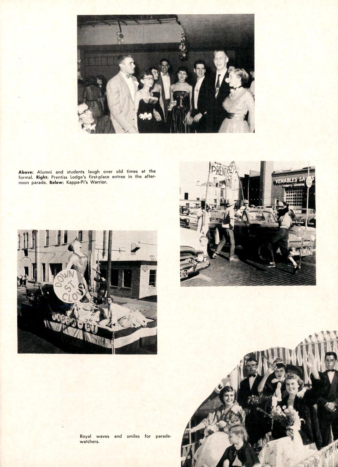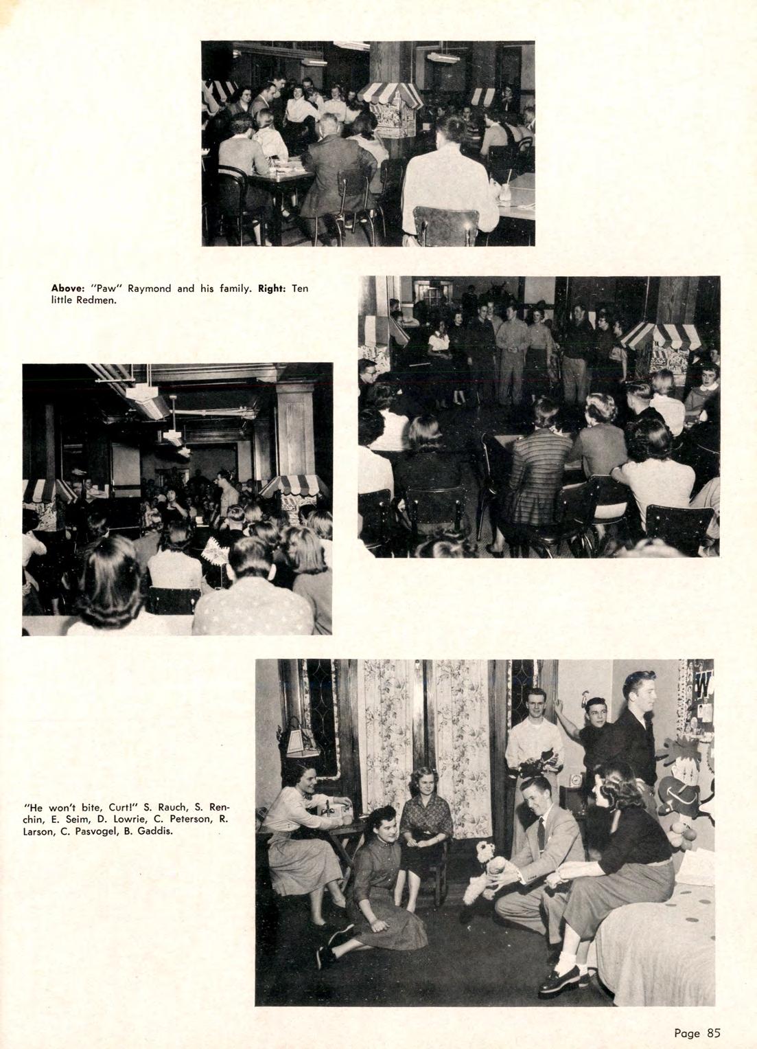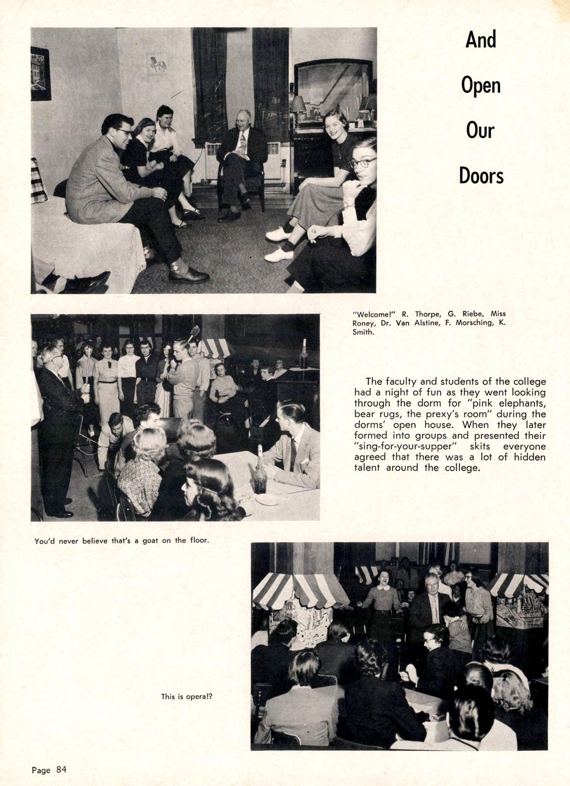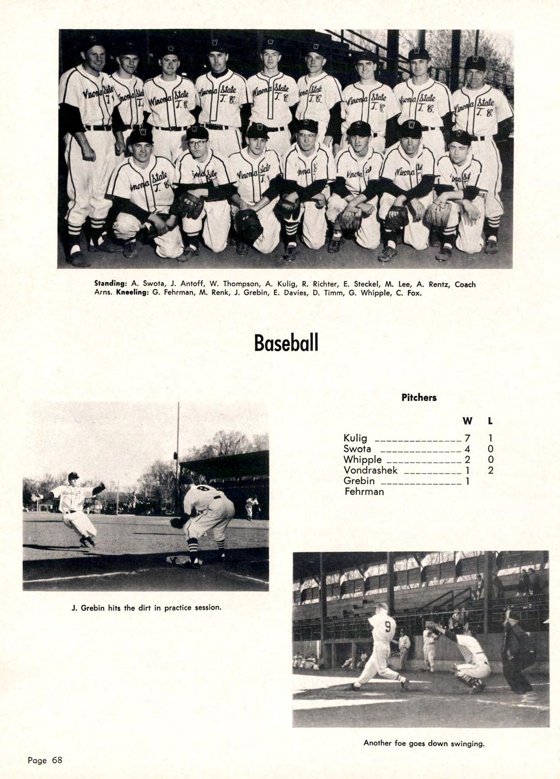 The physical education plant was dedicated during Homecoming and the inauguration of the large basketball court came in December with the Warriors beating Eau Claire. Moving-day for the physical education department followed Christmas vacation. However, the opportunities offered by Memorial Hall are not restricted to that department as its doors are open to all students of the campus and citizens of Winona and surrounding communities.