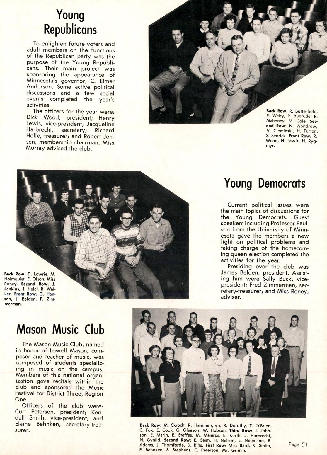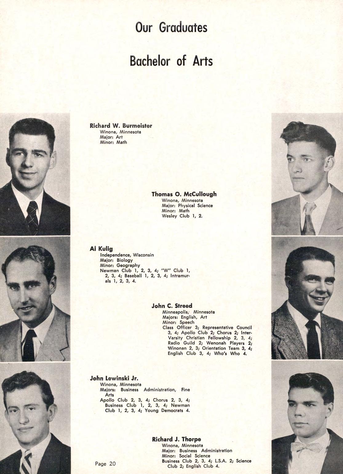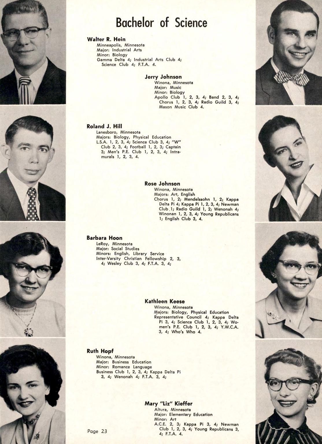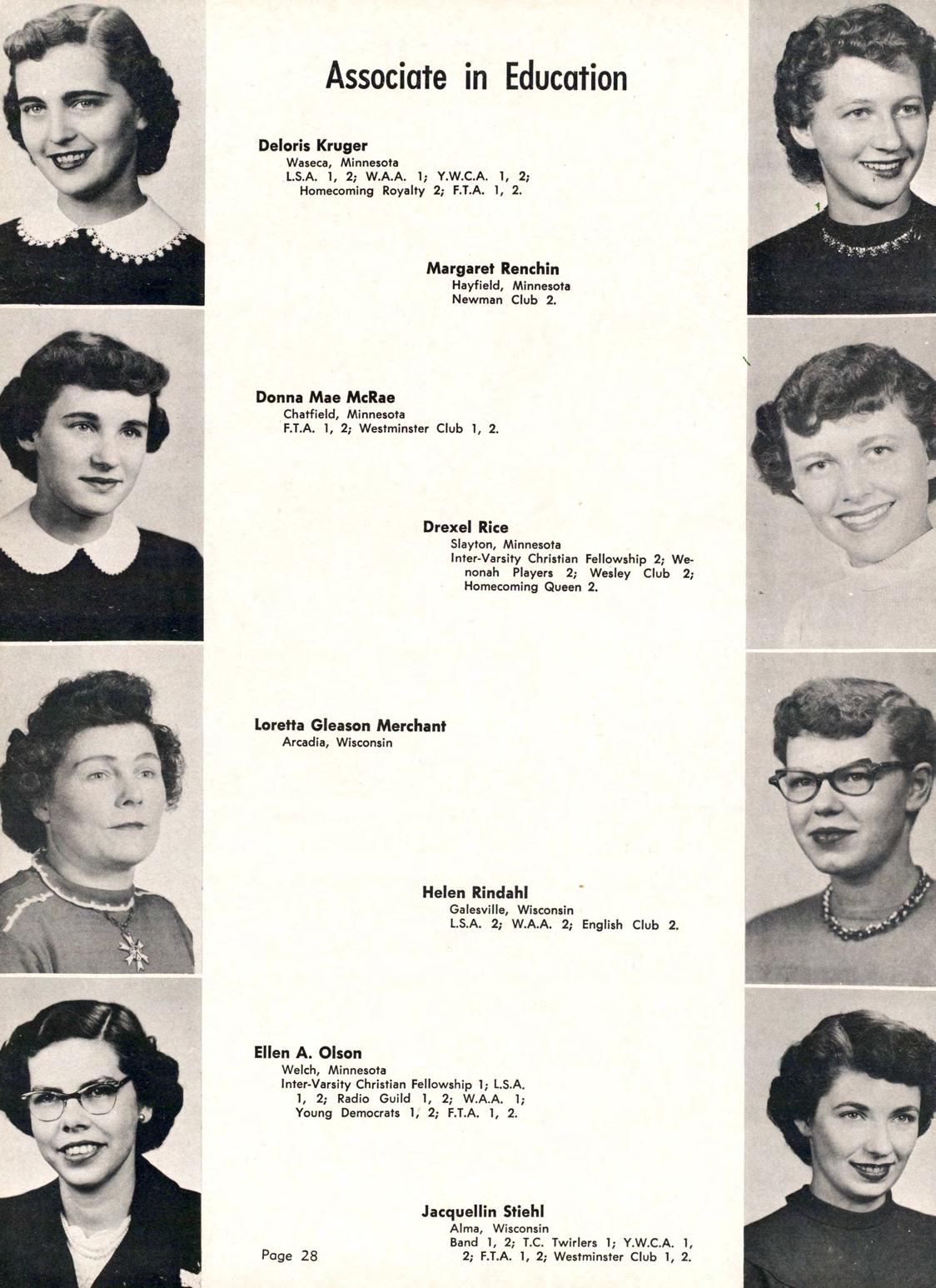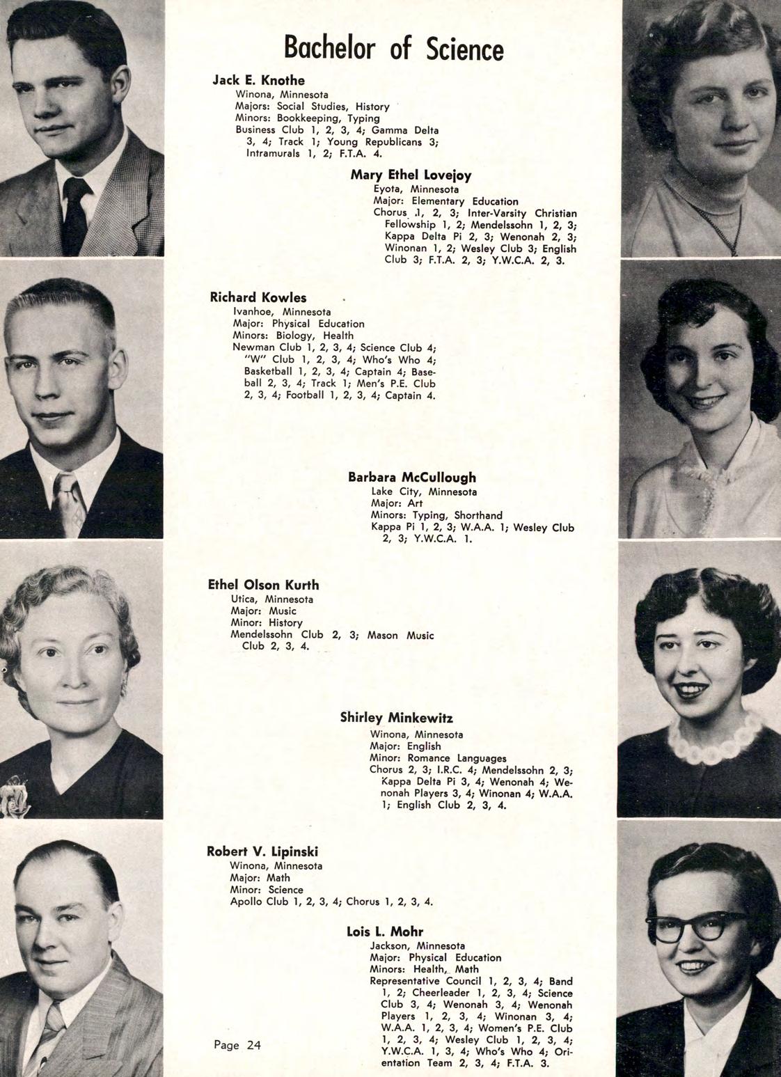 Minor: Speech Class Officer 3; Representative Council 3, 4; Apollo Club 2; Chorus 2; InterVarsity Christian Fellowship 2, 3, 4; Radio Guild 2; Wenonah Players 2; Winonan 2, 3; Orientation Team 3, 4; English Club 3, 4; Who's Who 4.