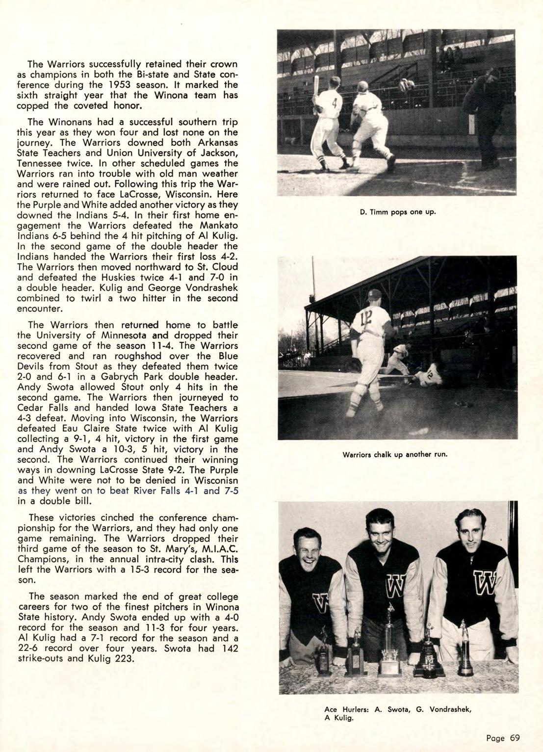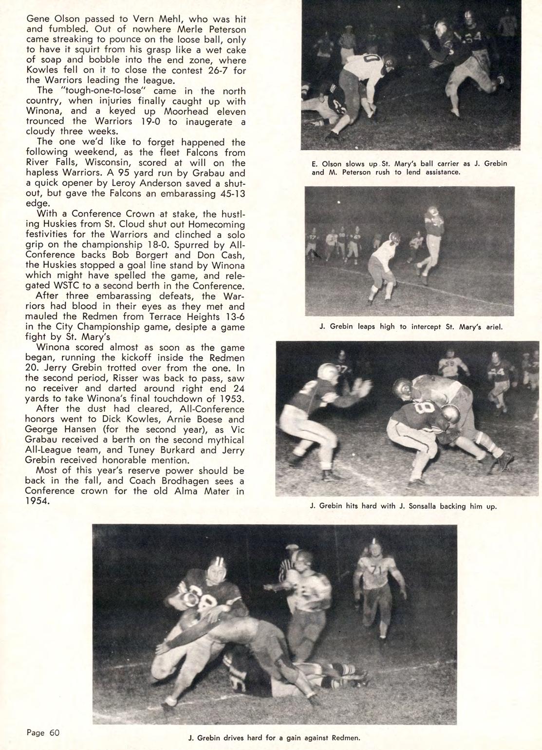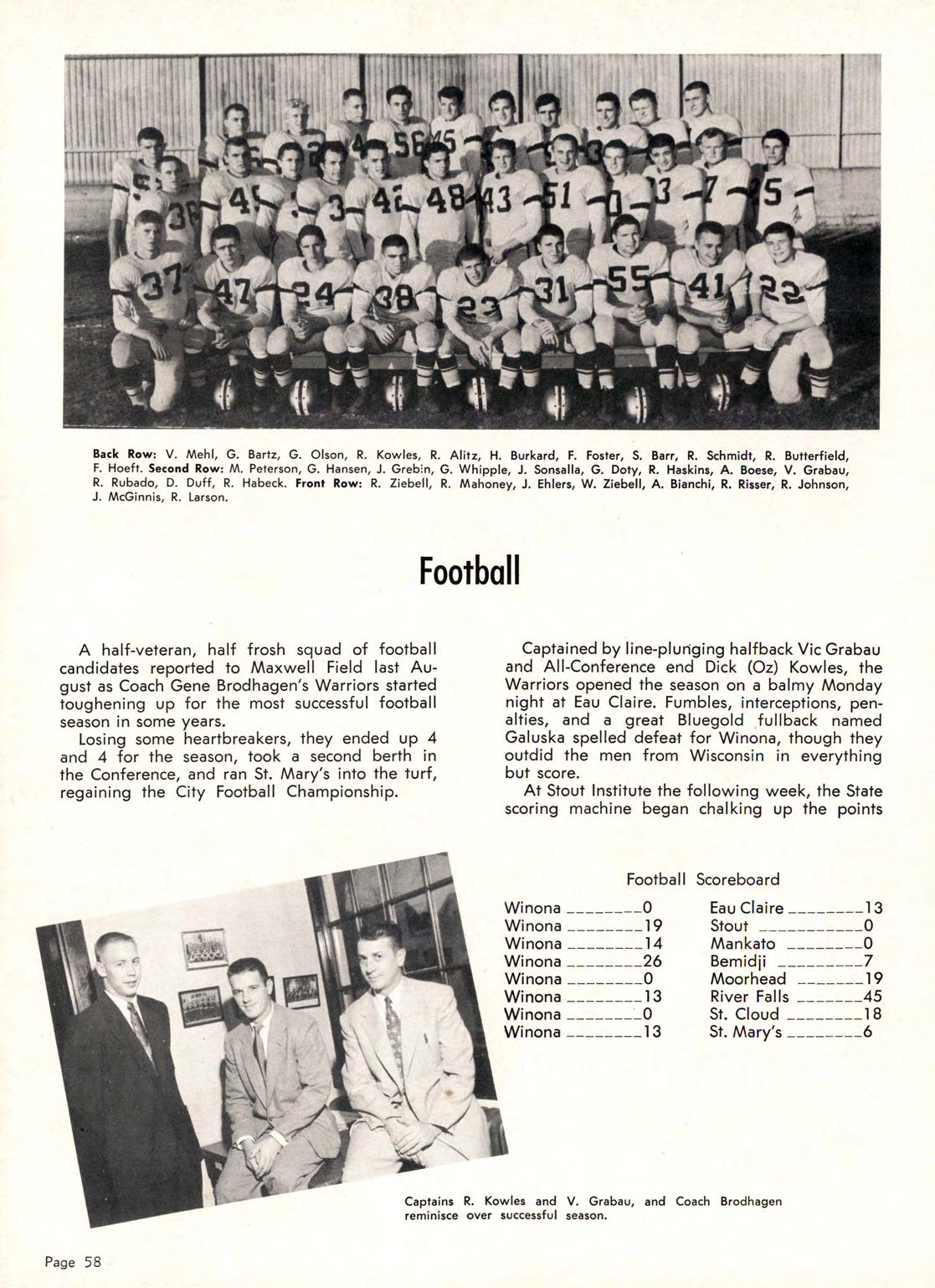 A Warrior of bygone days would tell us, "I never had it so good!" The alumni coming back for Homecoming said, "We never had it so good!" The visiting citizens of Winona and the visiting teams said, "You never had it so good!"