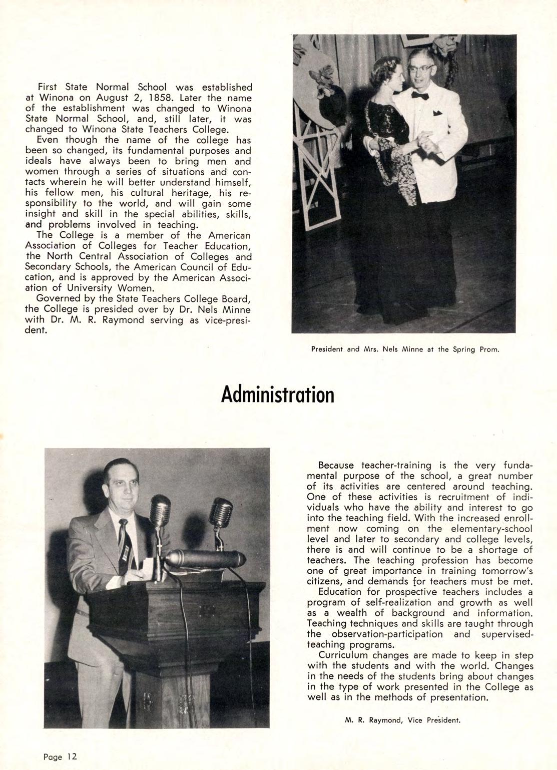 Governed by the State Teachers College Board, the College is presided over by Dr. Neis Minne with Dr. M. R. Raymond serving as vice-president.