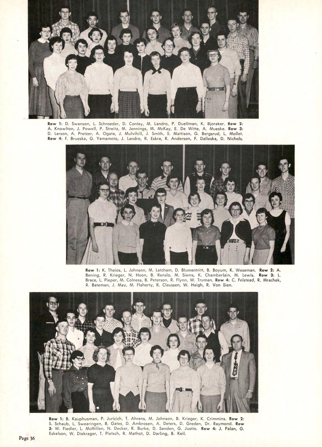 Senior officers; G. Hanson, vice prcsicienT; D. Bearson, secretary; J. Threinen, president; Dr. Ragar, adviser. George S. Acheff Bette Darlene Anderson Betty Jean Anderson Mrs. Karole Hanson AndersonWayne R. Anderson
