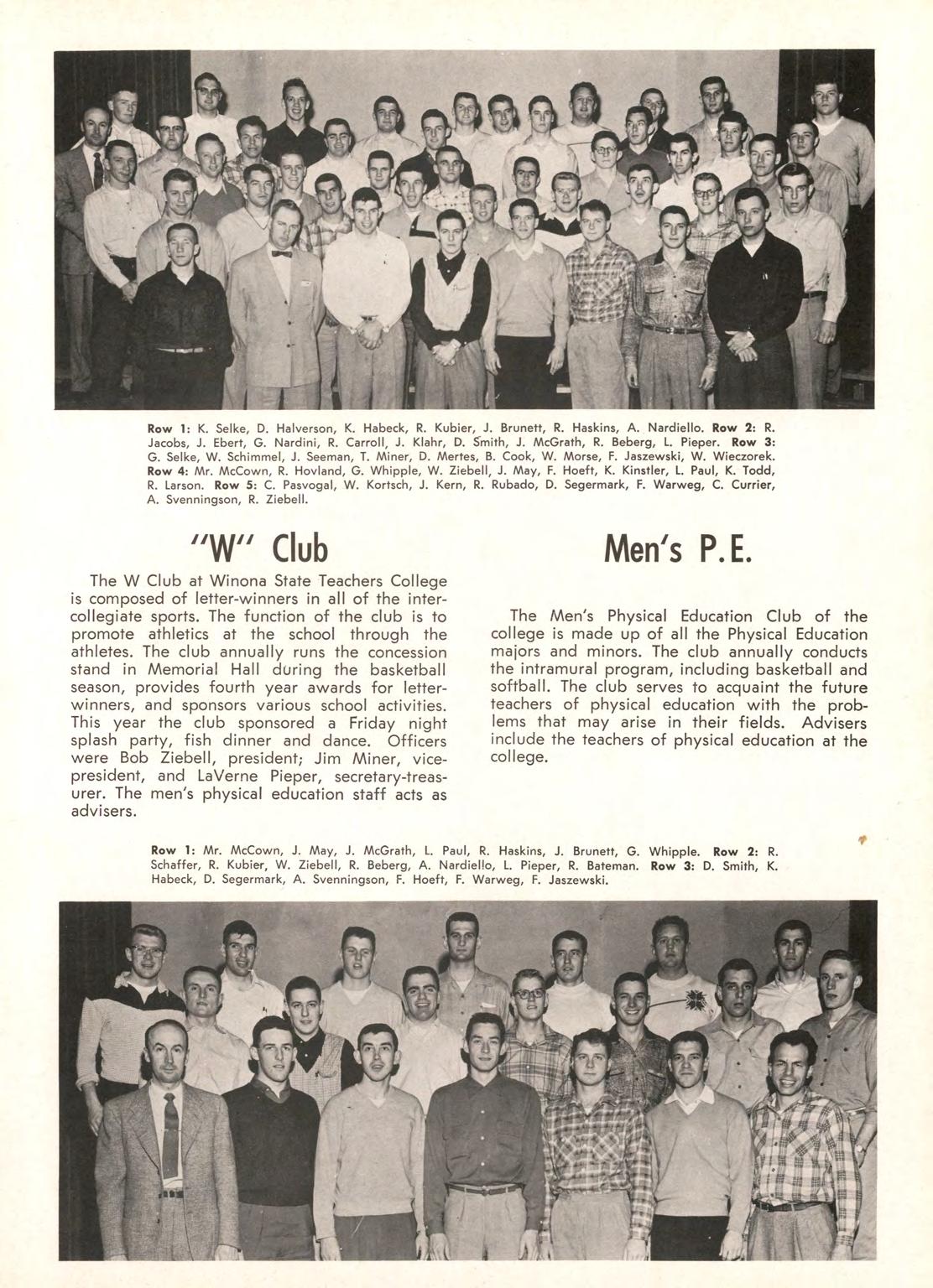 Adjustment seems to be the keynote of modern society, but adjustment infers conformity. Here we have learned that only by personal growth can we appreciate the depth of life and achieve or even work for a temperament at peace with our environment. Through our work at college and our associations here, we have been able to comprehend the dignity of man, social sympathy, and the art of living. The increased knowledge that college offers us paves the way to a profound wisdom and personal sensibility. We have recognized the importance of theadvancement of learning and the search for truth through our college life. We have become devoted to the instruction of youth and the welfare of the state. The pleasures of learning and of sharing what we have learned are realized here in Winona State Teachers College.