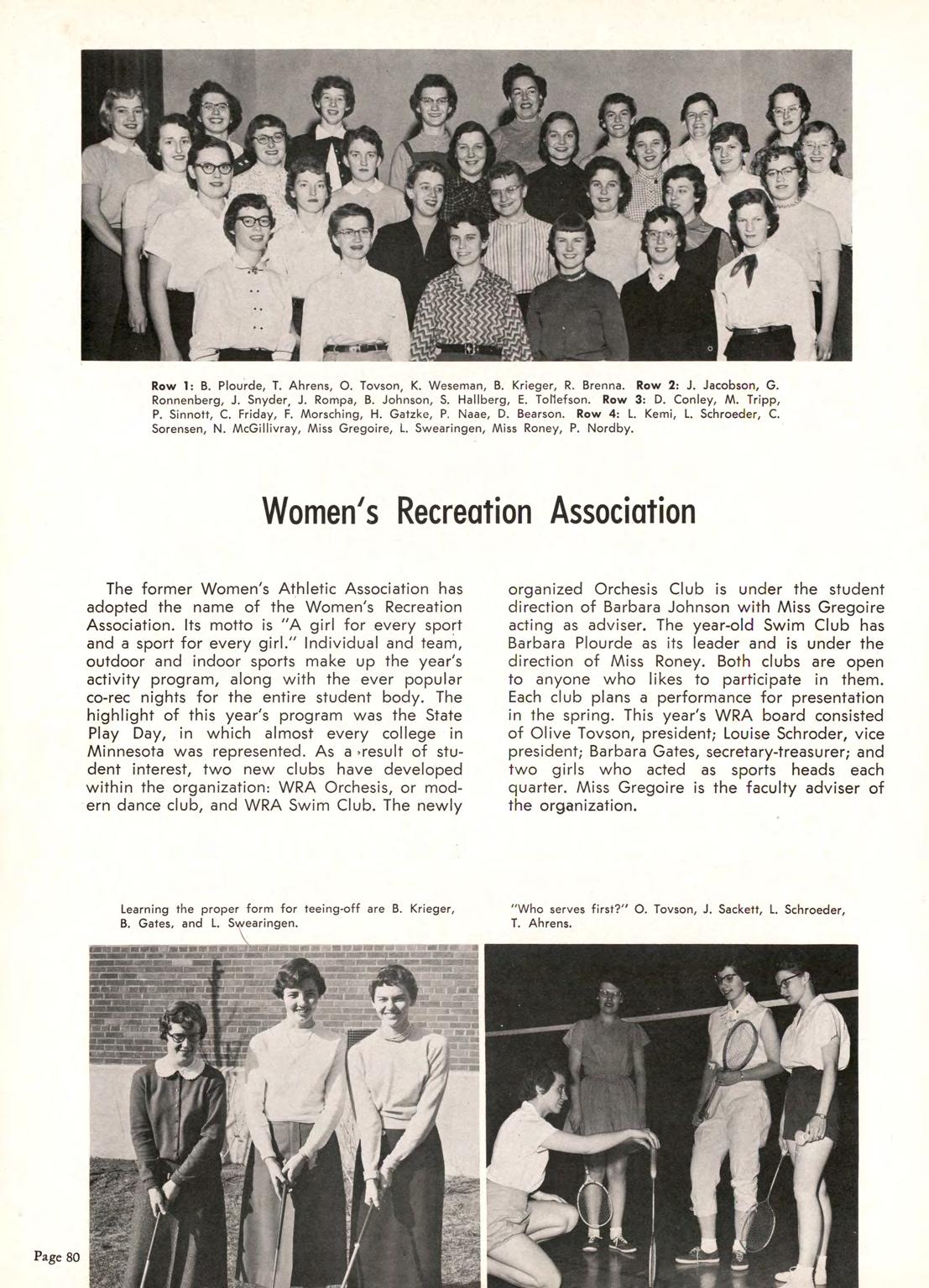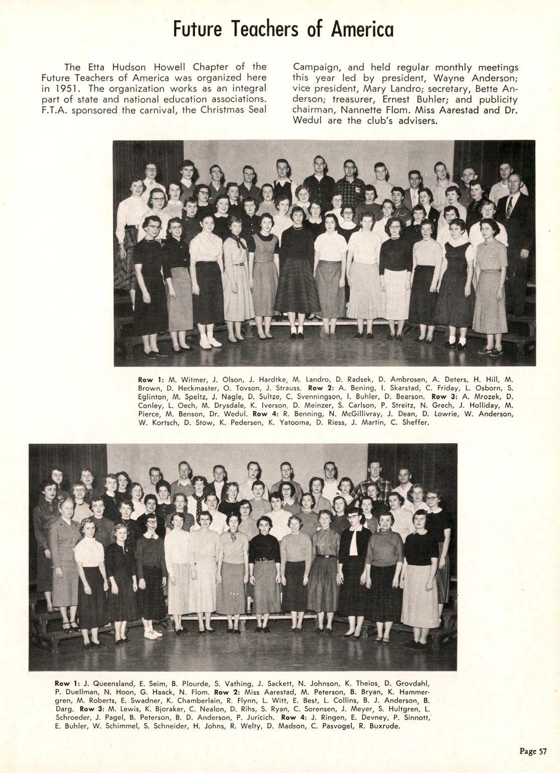Representative Council 4; Kappa Delta Pi 4; W.R.A. 1; Wesley Foundation 1, 2, 3, 4; Y.W.C.A. 1, 2, 3, 4; Young Republican's Club 4; F.T.A. 1, 2,3, 4.
