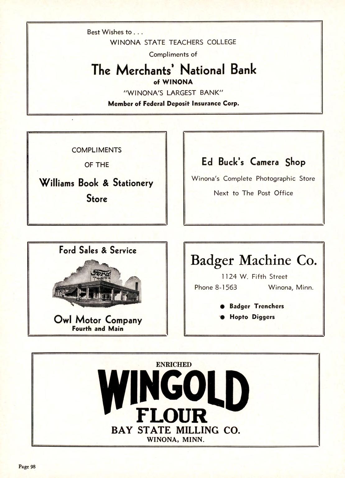 In Its 100th year of friendly, helpful banking service is happy to congratulate the Winona StateTeachers College students on their yearbook THE WENONAH.