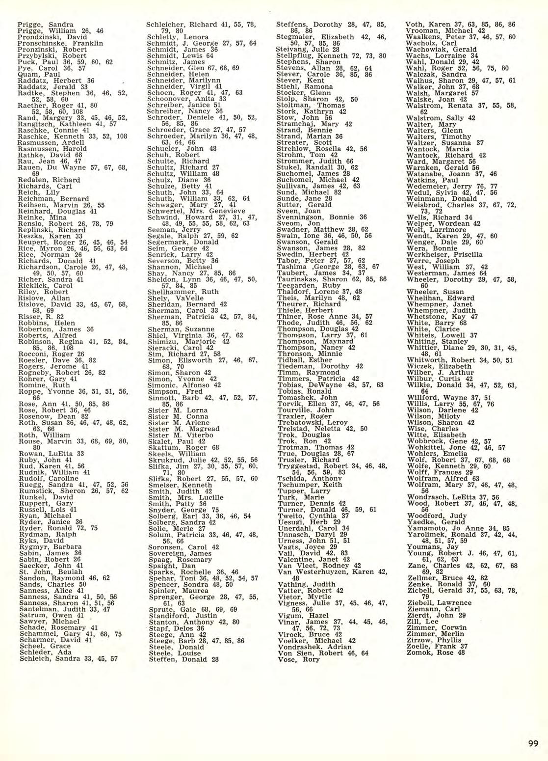 Row 1: M. Kreisel, J. Watanabe, S. Hartle, T. Olson, S. Flanagan, L. Sheldon, A. Peterson, L. Kock, A. Hew, J. Muller. Row 2: M. Wolfram, L. Brummund, B. Gerlach, C. Gordon, P. Holliday, E. Torvick, C. Happel, D. Magnus, I. Swain, B. Bladholm, W. Hellickson, S. Roth, P. Solum. Row 3: B. Young, J. Boyum, N. Keller, D. Turner, D. Harmon, R. Groenwold, W. Prigge, P. Waalkens, C. Accola, D. Johnson, B. Tryggestad, S. Radtke. Row 4: R. Ballinger, R. Larson, R. Rose, D. Gilbertson, C. Borchard, H. Burtness, R. Von Sien, E. Simon, I. Plitzuweit, M. Rice, E. Solberg, L. Lorch, R. Duncan.