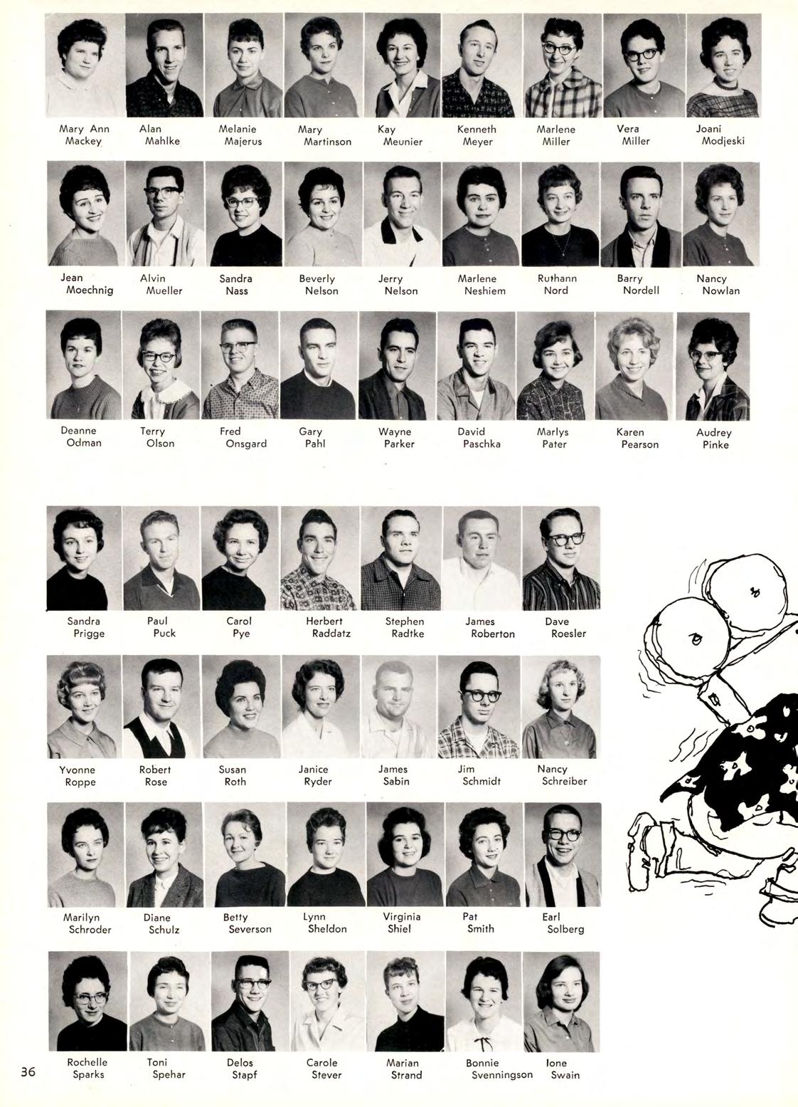 Happel, R. Esson, L. Bergsgaard, S. Waihus, S. Hartle, A. Peterson, P. Holliday, C. Gordon, L. Kerrigan, W. Hellickson, S. Duff. Row 4: M. Kreisel, H. Mark, D. Steffens, J. Oldorf, J. Filings on, M. Majerus, J. Lammo, J. Horton, P. Bristow, B. Chapek, J. McLellan, S. Nass, L. Kock. Row 5: S. Ruegg, S. Ott, J. Mulfinger, B. Sinnott, P. Pottratz, L. Brummund, E. Torvick, A. Hew, K. Meunier, B. Jax, L. Bernard, M. Issendorf, M. Bothun. Row 6: L. Sheldon, C. Botcher, J. Coolidge, J. Moechnig, C. Goltz, K. Pearson, P. Solum, C. Nihart, J. Vigness, J. Vinar, E. Daugherty, D. Whetstone, D. Wheeler. Row 7: R. Cleveland, S. Lang, N. Frisby, J. Lindner, H. Neumann, L. Aase, R. Ojakangas, J. Fluegel, F. Klein, I. Plitzuweit, J. Blahnik, R. Schoen. Row 8: S. Wedul, H. Schwind, D. Jick, W. Ferguson, A. Hennessy, D. Wilkie, R. Ballinger, A. Majerus, G. Schroeder, B. Gerlach. Standing: M. Martinson, M. Wolfram, E. Imm, B. Young, S. Roth, Miss Aarestad, H. Burtness, C. Carstensen, G. Grob, M. Schroeder, T. Olson, J. Nardinger, J. Santelman, J. Hagen, G. Murtinger.