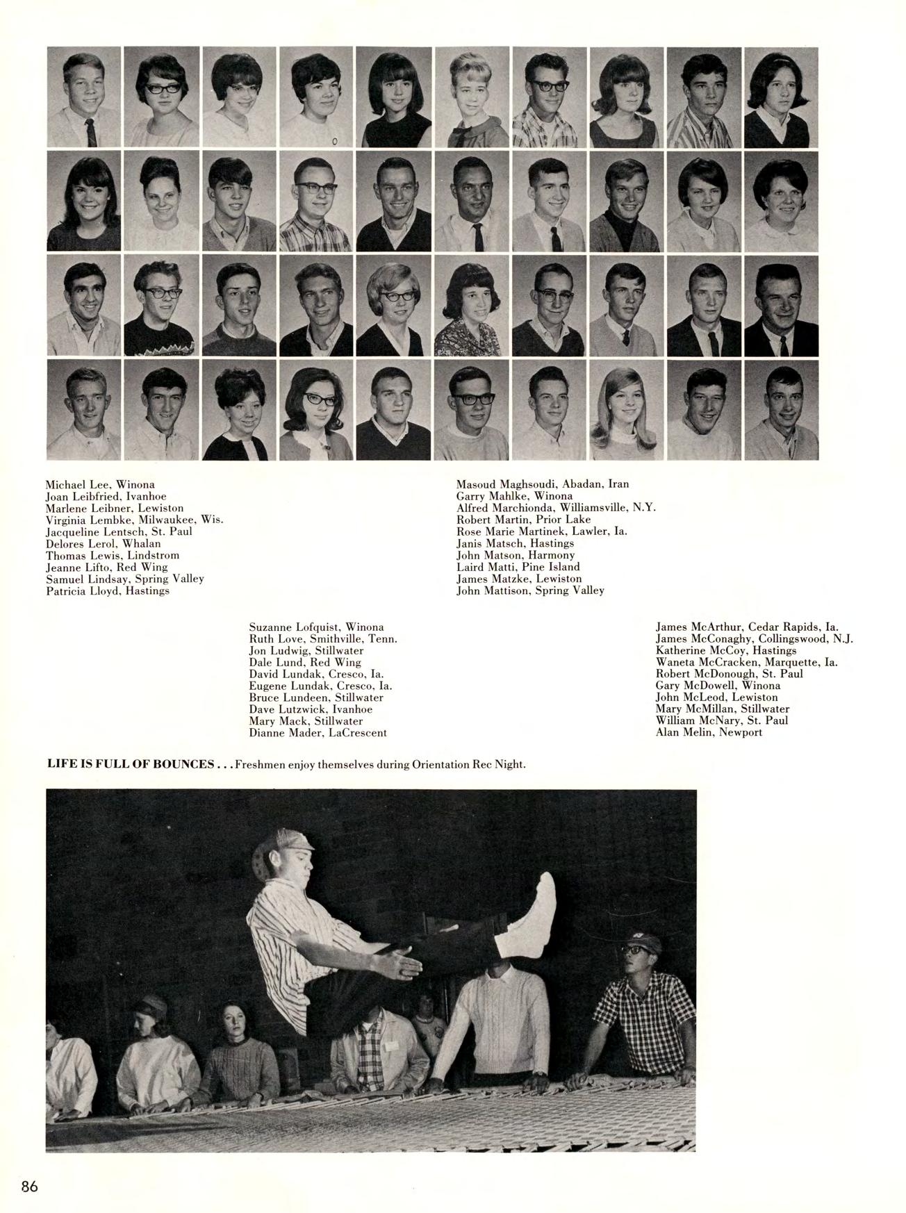 And so another yeanjends at Winona State College. From the most troublesome.,çourses, the many hours of study, the weekly gatherings at sports eve'nfs, dances, and club meetings, to the capdid dorm life and the daily commuting —we hope the WEN.ONAH has touched |tjpPq^some of the events we all^want to remember.