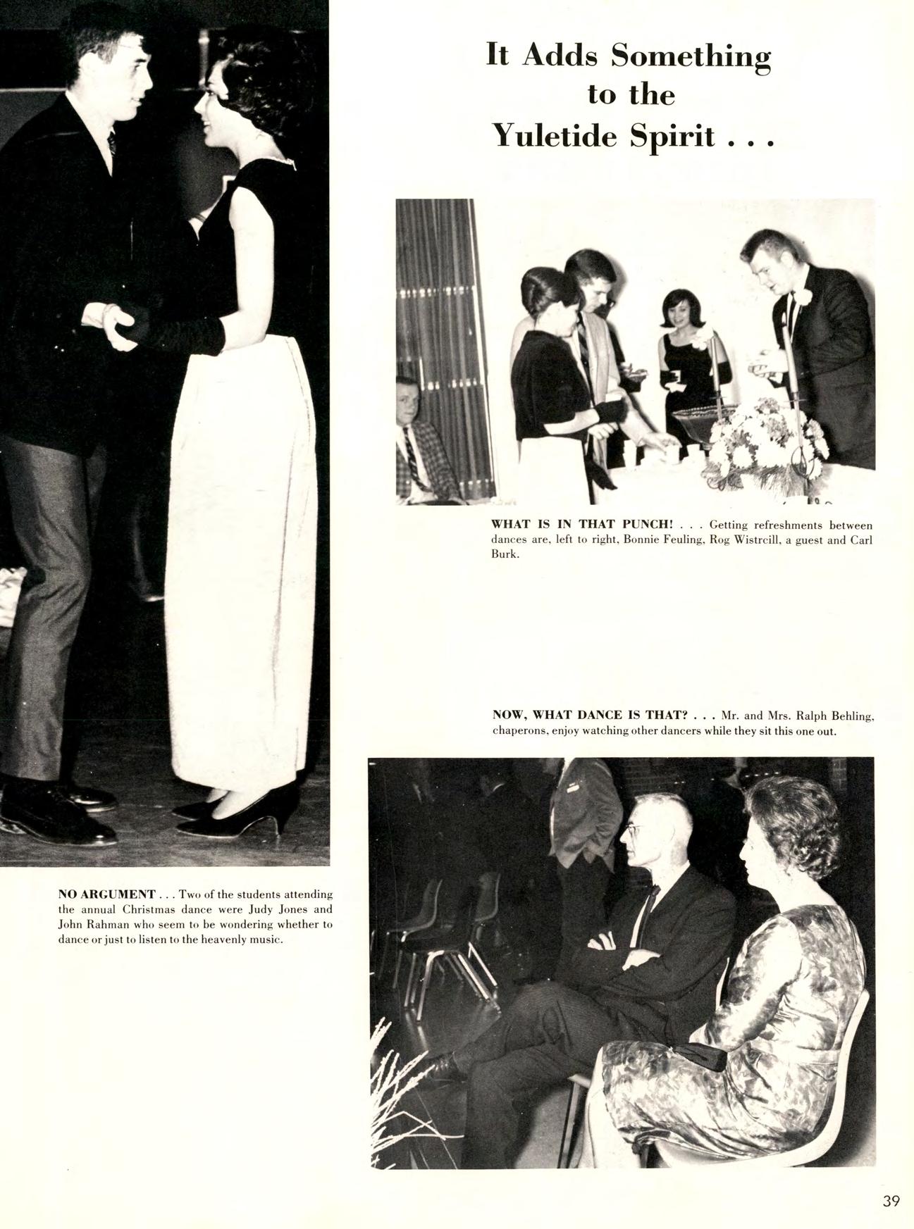 INO ARGUMENT Two of the students attending the annual Christmas dance were Judy Jones and John Rahman who seem to be wondering whether to dance or just to listen to the heavenly music.