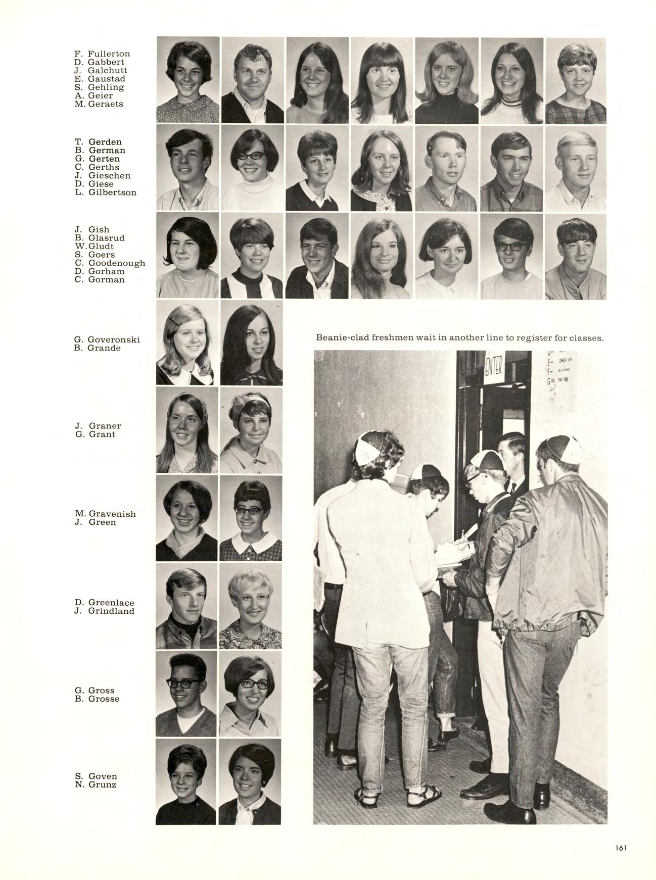 LEFT: With this beanie, I thee Jan Weist distributed the beanies that turned 859 young men and women into 859 lowly freshmen. BELOW: One last consultation with a concerned Dad before becoming immersed in college life.