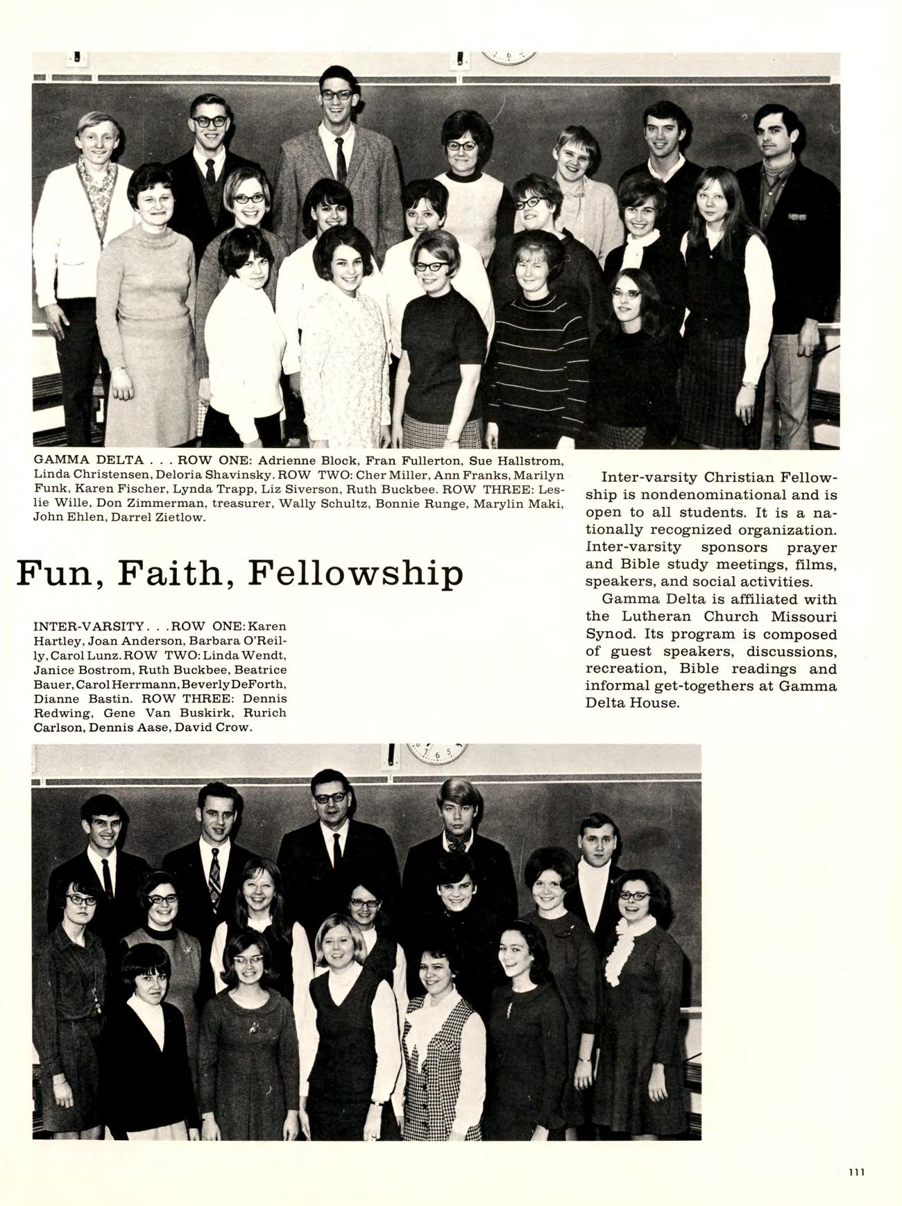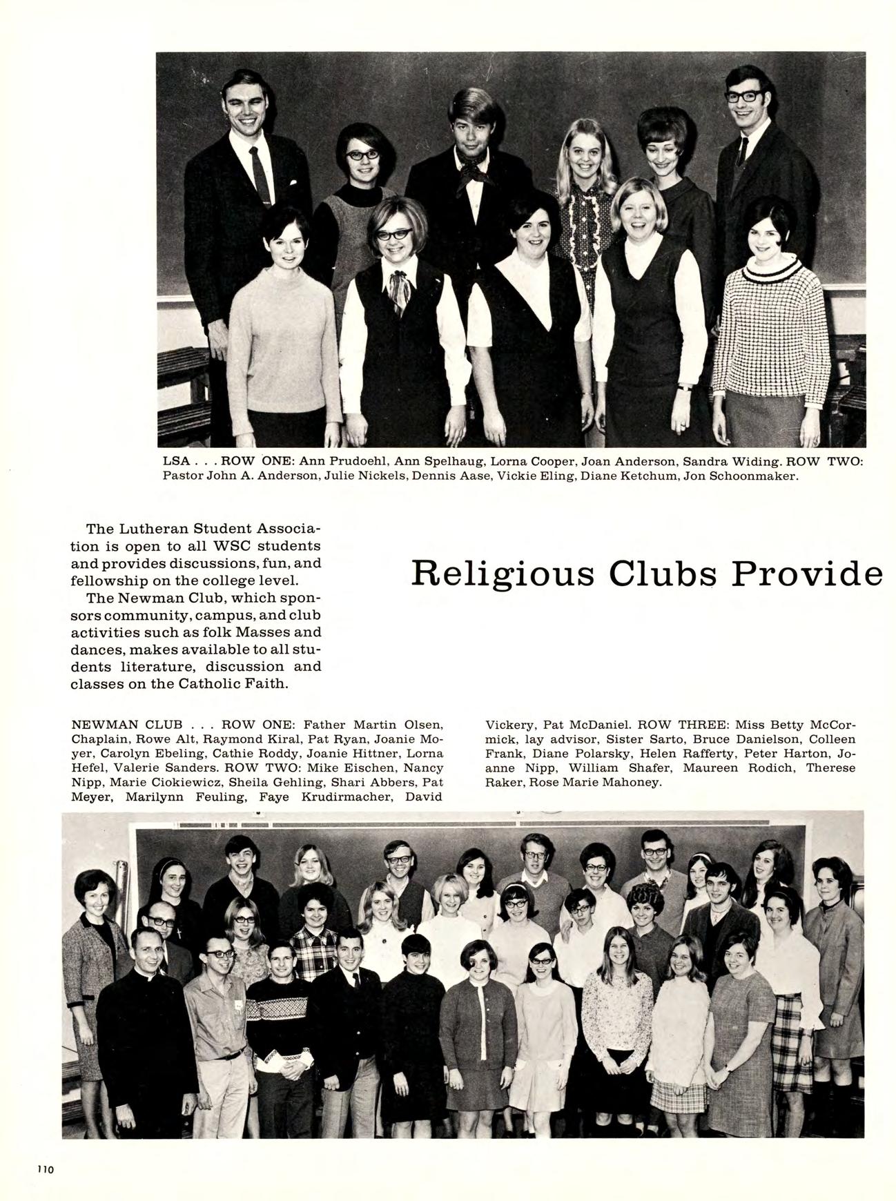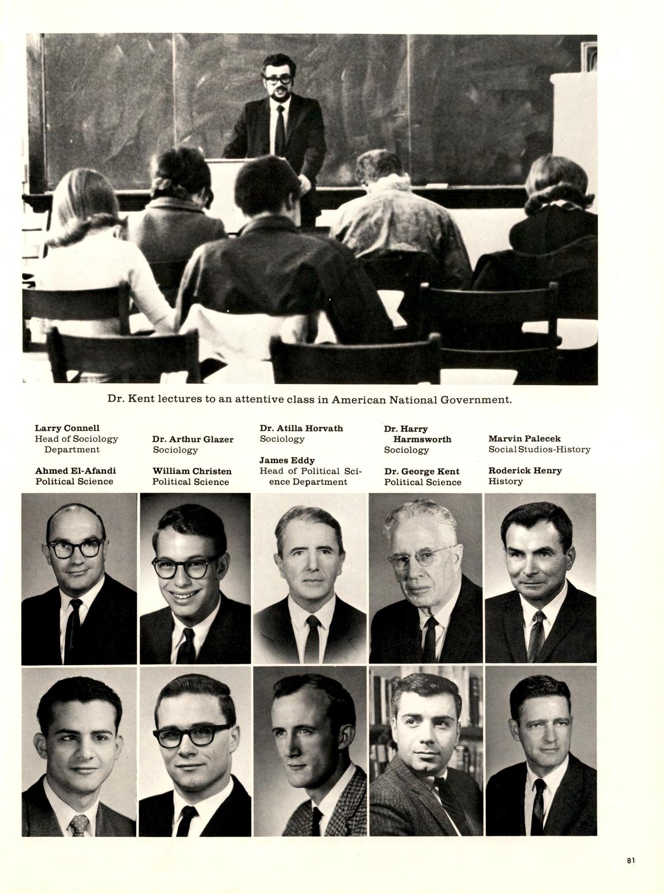 Art shows included an Art Festival, which was a display and sale of student work, and later a faculty art show, while lecturers ineluded Mr. Hull who, among other things, participated in “Fireside Chats” at Newman Center.