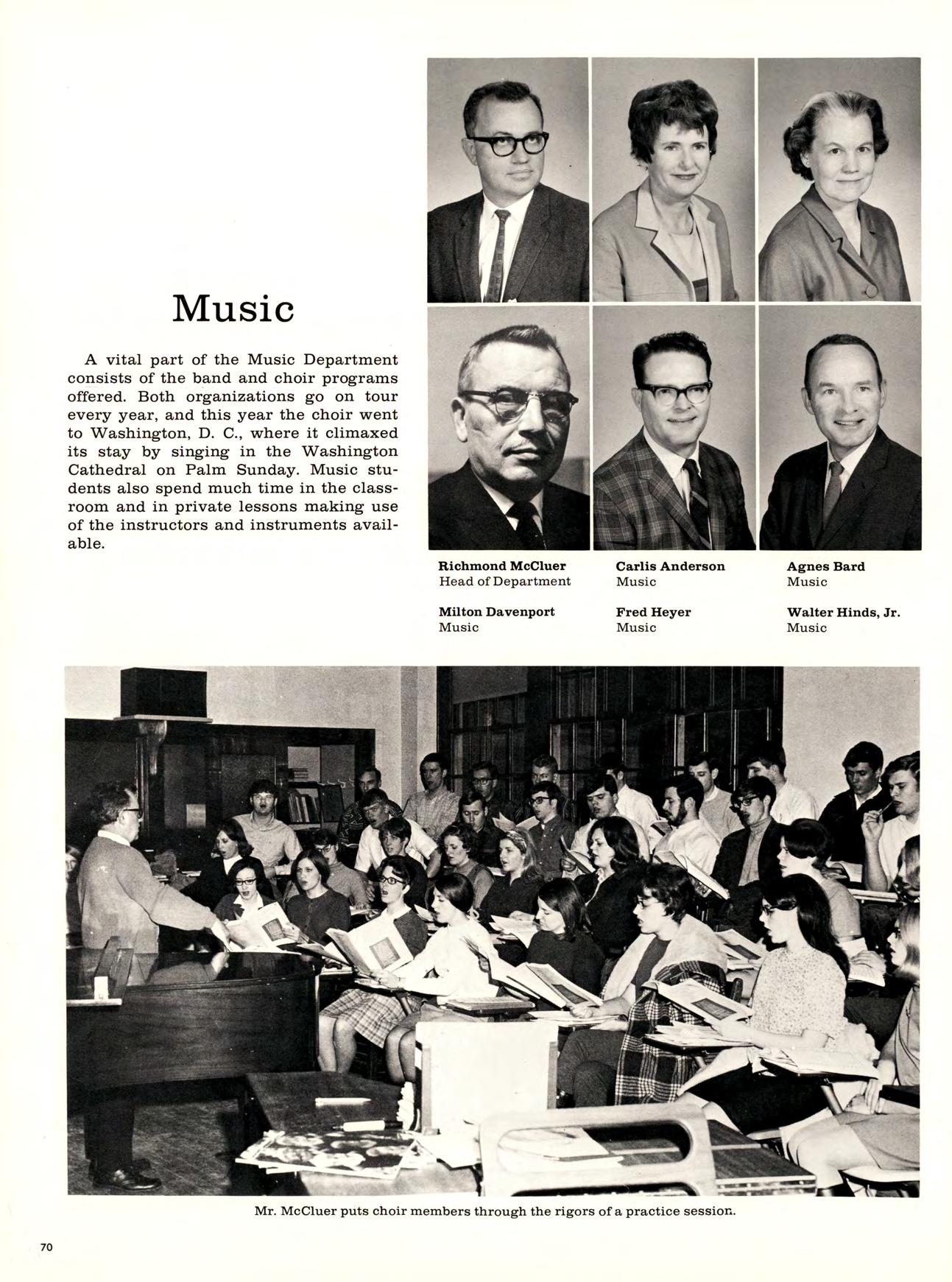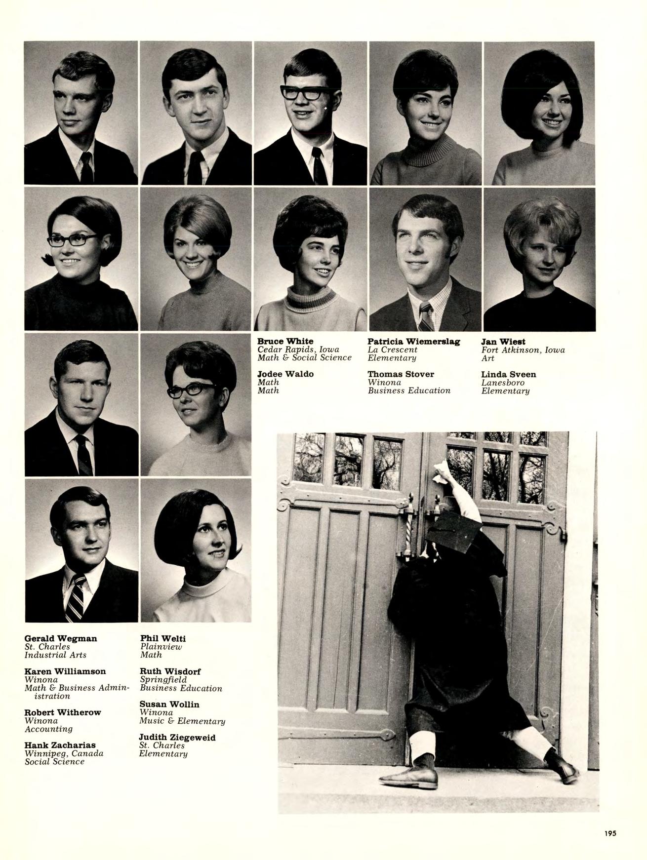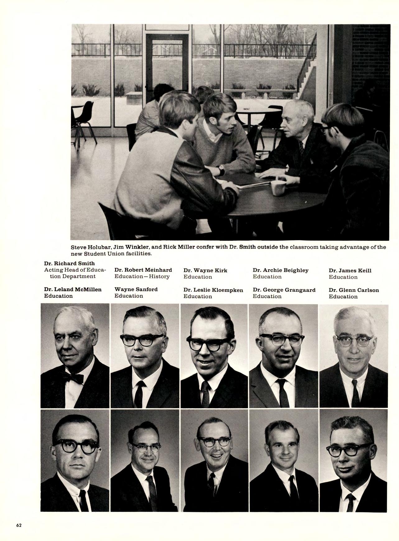 Every student getting a teaching degree takes courses in education. The final goal of the series of classes is student teaching which this year was for the first time offered on a pass-fail basis instead of the regular grading. More college supervisors for student teachers and more classroom teachers were added to the faculty of the Education Department this year along with a full-time office secretary.